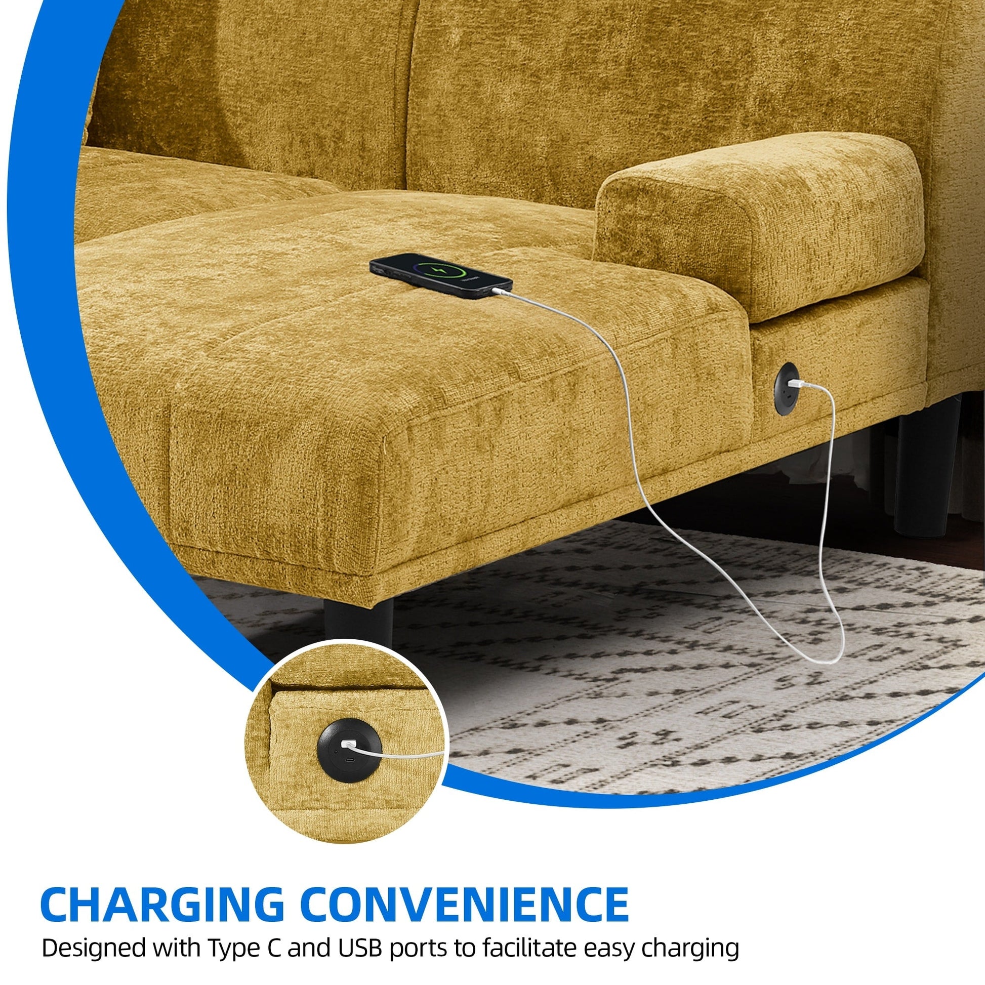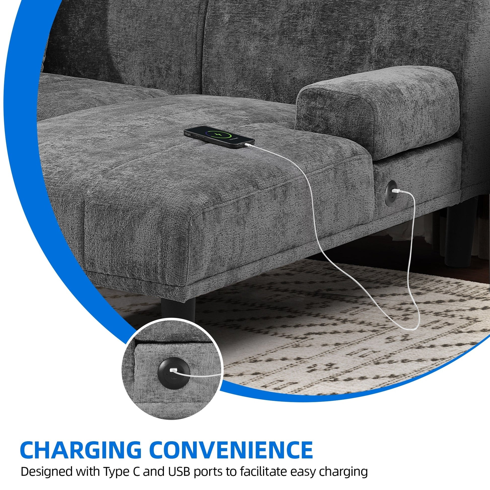 - USB & Type C Ports:The armrest of the sectional couch is equipped with a USB and type c charging ports which is convenient for phone and tablet anytime. Solving the problem of charging anxiety.
