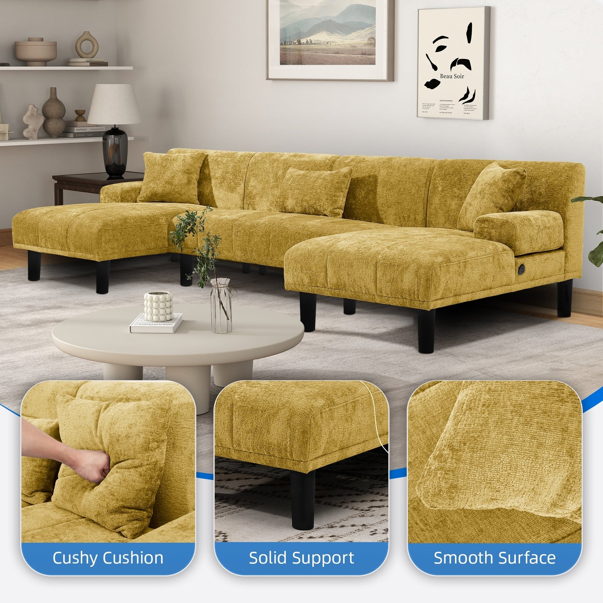 Sectional Couches for Living Room, U Shaped Sofa Chenille Modern Modular Couch with USB & Type C Charging Ports Double Chaise and Comfy Upholstered