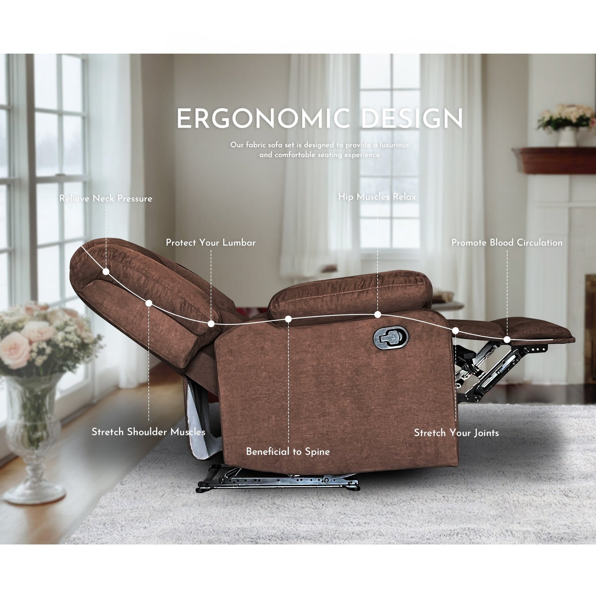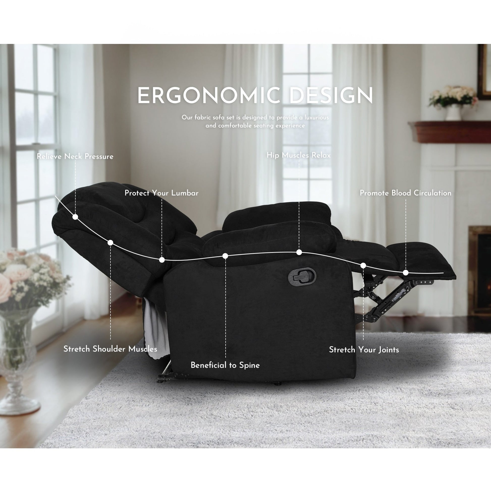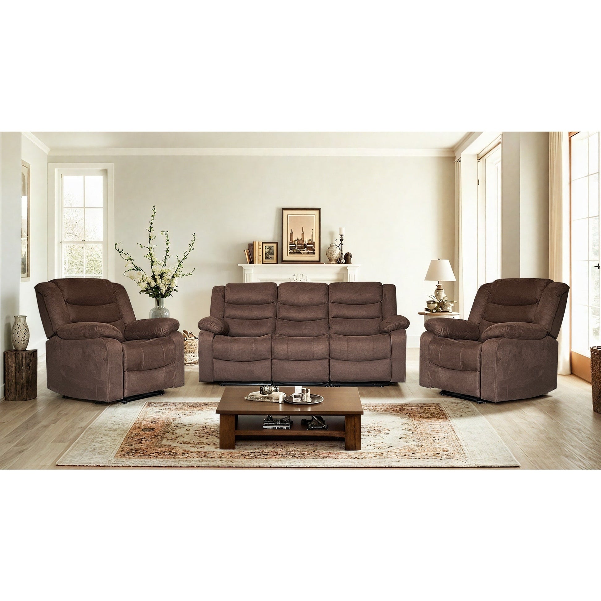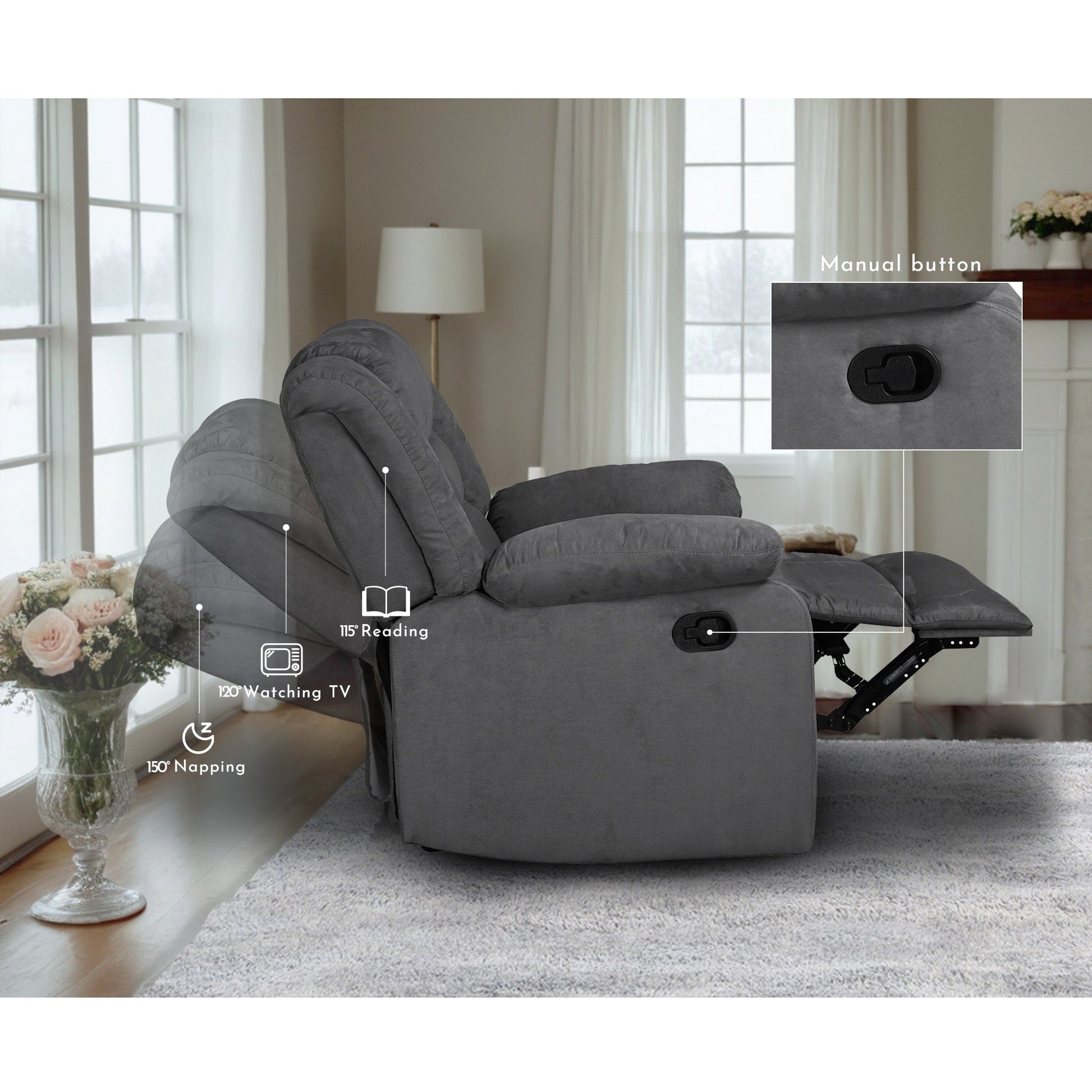Experience the ultimate indulgence with our manual recliner sofa set, offering exceptional value. This sleek design allows you to unwind and adjust your position for premium relaxation. Crafted with luxurious suede upholstery, the sofa features cozy high-performance cushions filled with supportive innerspring foam. The distinctive stitching adds a touch of elegance to create a space you won't want to leave anytime soon.