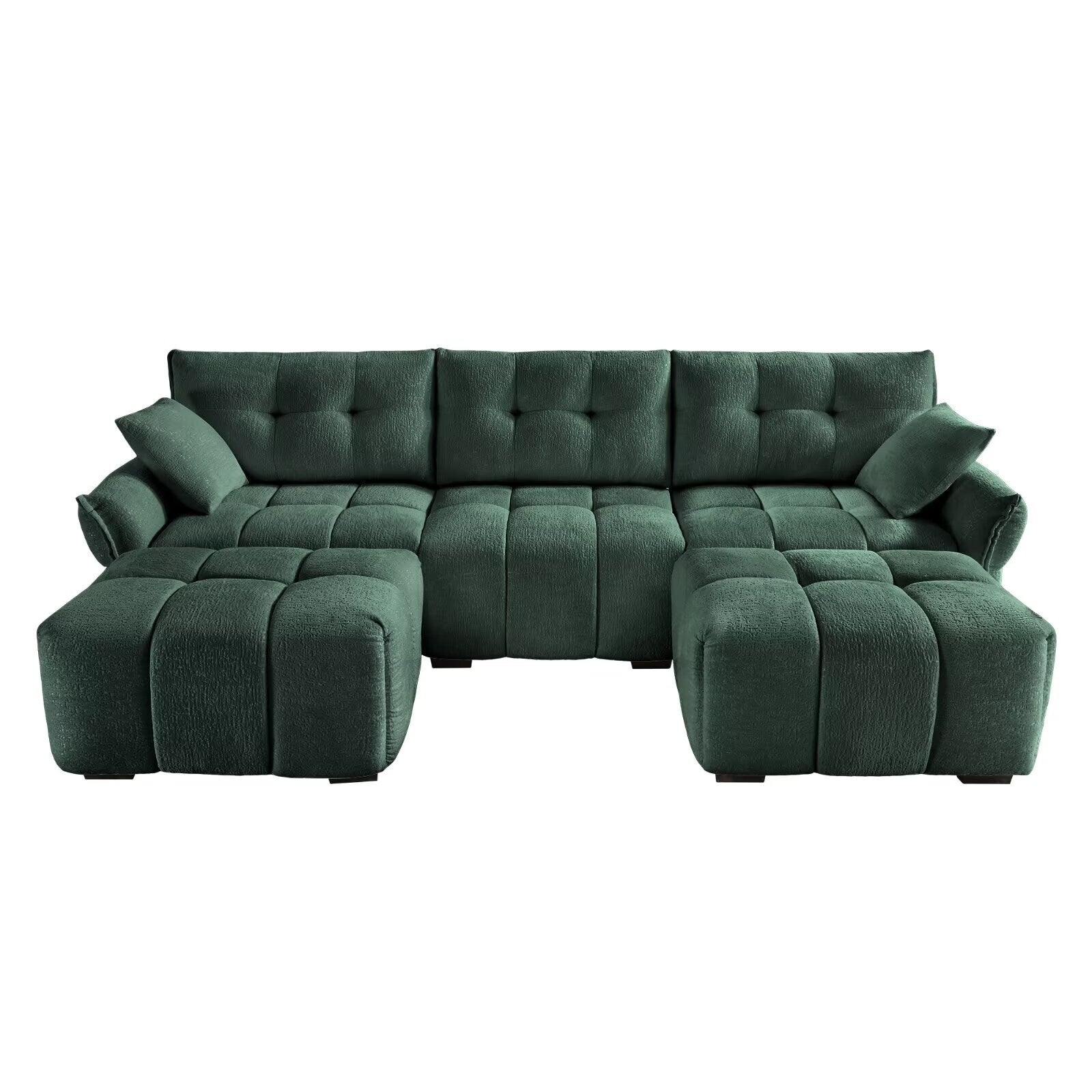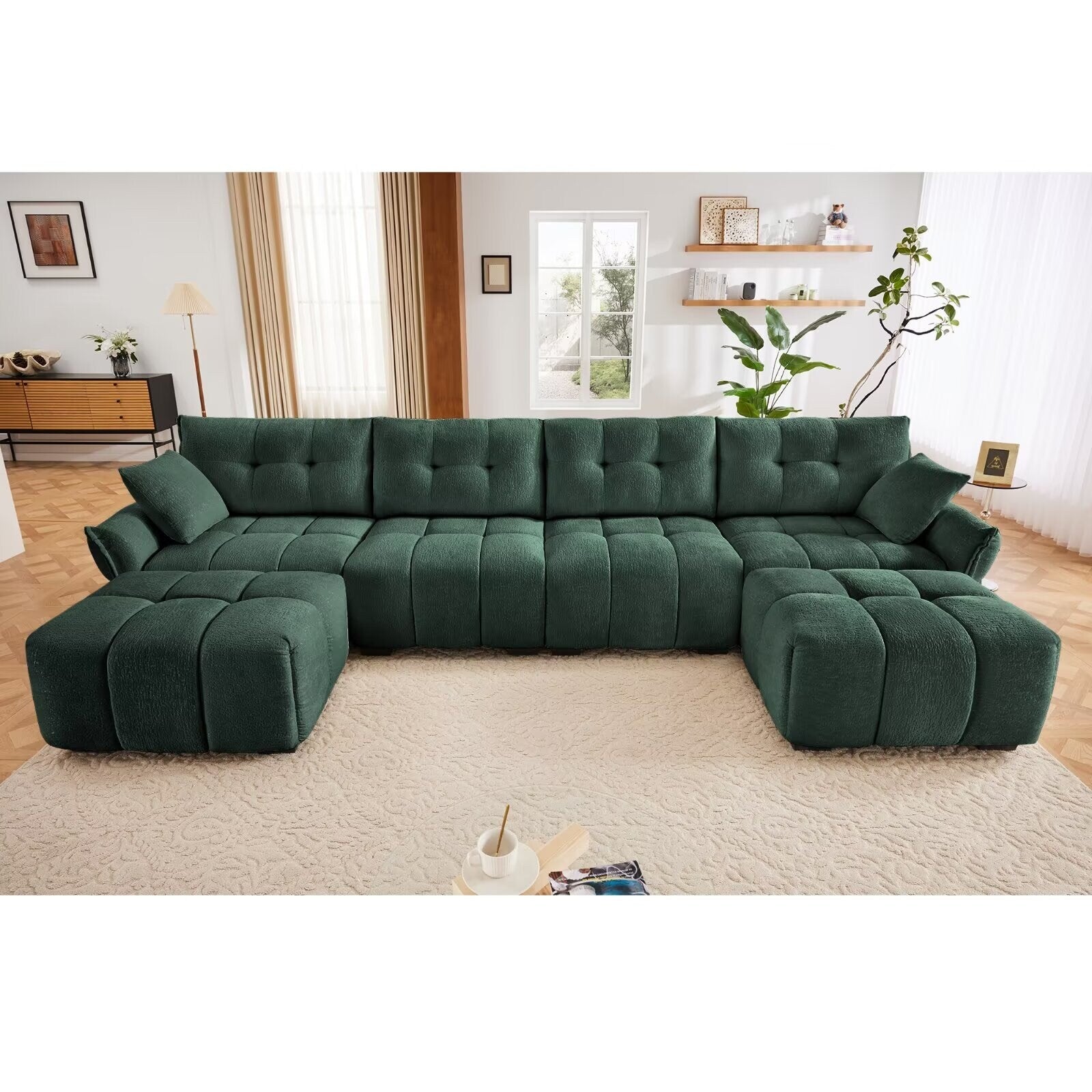 Chenille Fabric-:The sofa is upholstered in premium, dense chenille fabric. This fabric not only offers an incredibly soft touch but also exudes an air of elegance. The unique texture of the chenille material ensures a sumptuous seating experience all year round. In addition to its luxurious feel, the high - quality chenille fabric is highly durable, resistant to wear and tear, making this sofa a long : lasting addition to your home. The fully - compressed, high - resilient sponge - filling