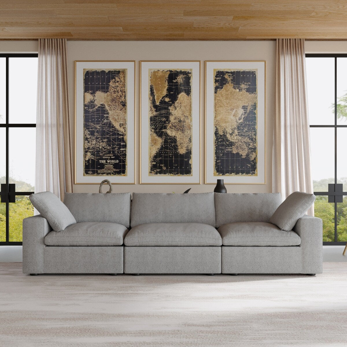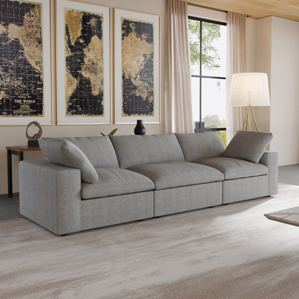 [Size Information] Overall Size: 120.45'L x 40.15'W x 23.23'H. Sectional couch for living room. Comfy cloud couch with cushion covers removable. A comfortable sofa in the living room to enjoy leisure time with family and friends.