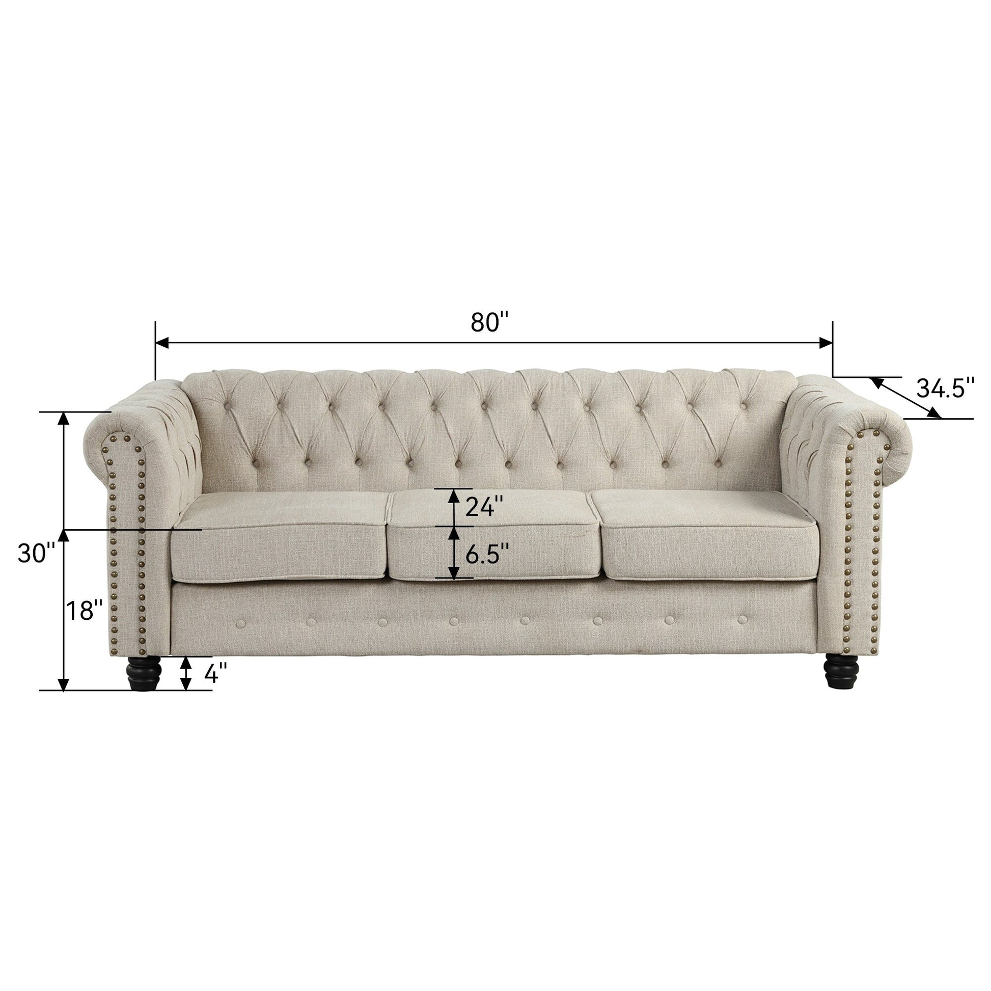 Morden Fort Linen Chesterfield Sofa with Button Tufted, Nailhead and Solid Wood Legs for Living Room