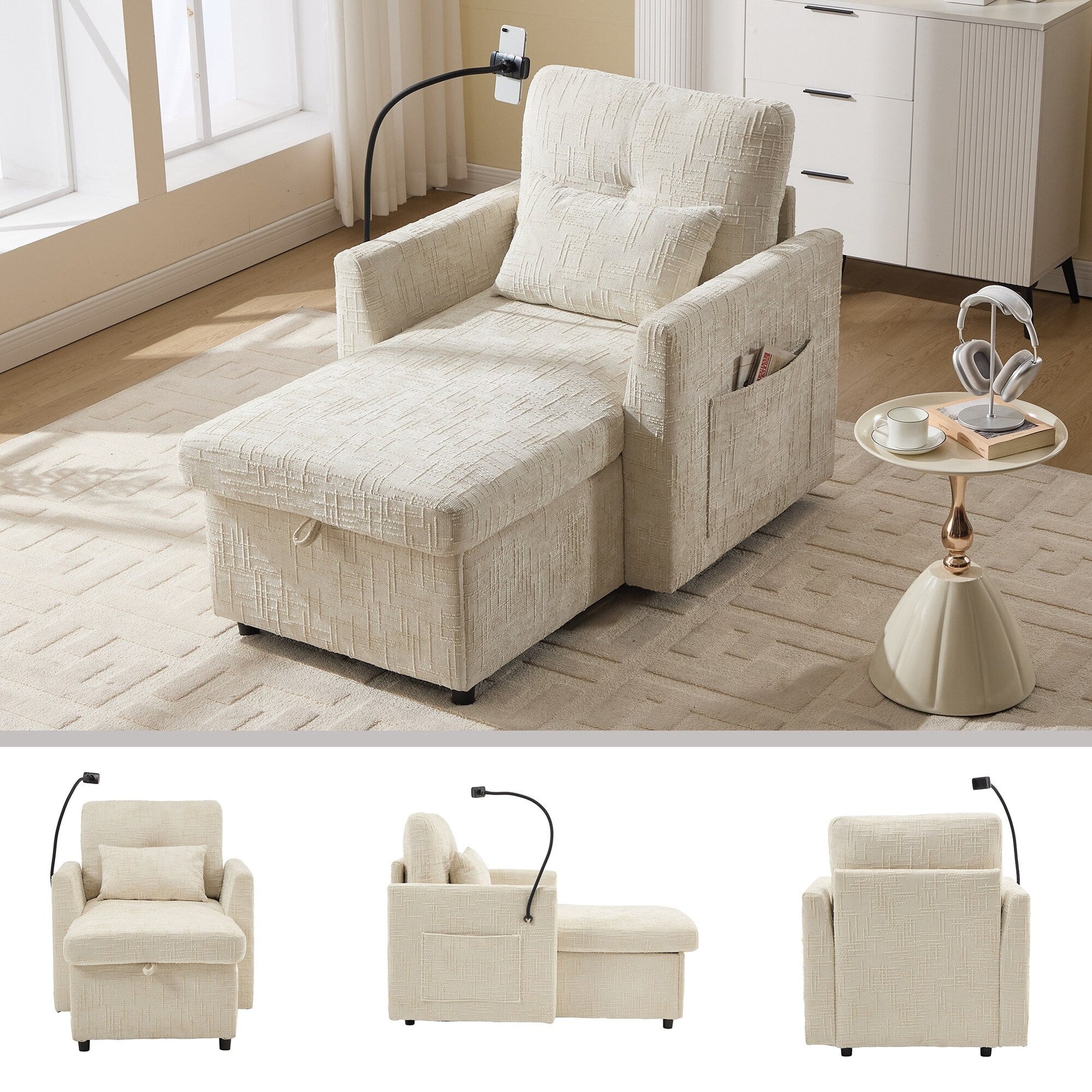 Multifunctional Lazy Person Sofa Recliner,Storage Backrest With Cell Phone Bracket Chenille Single Leisure Chair