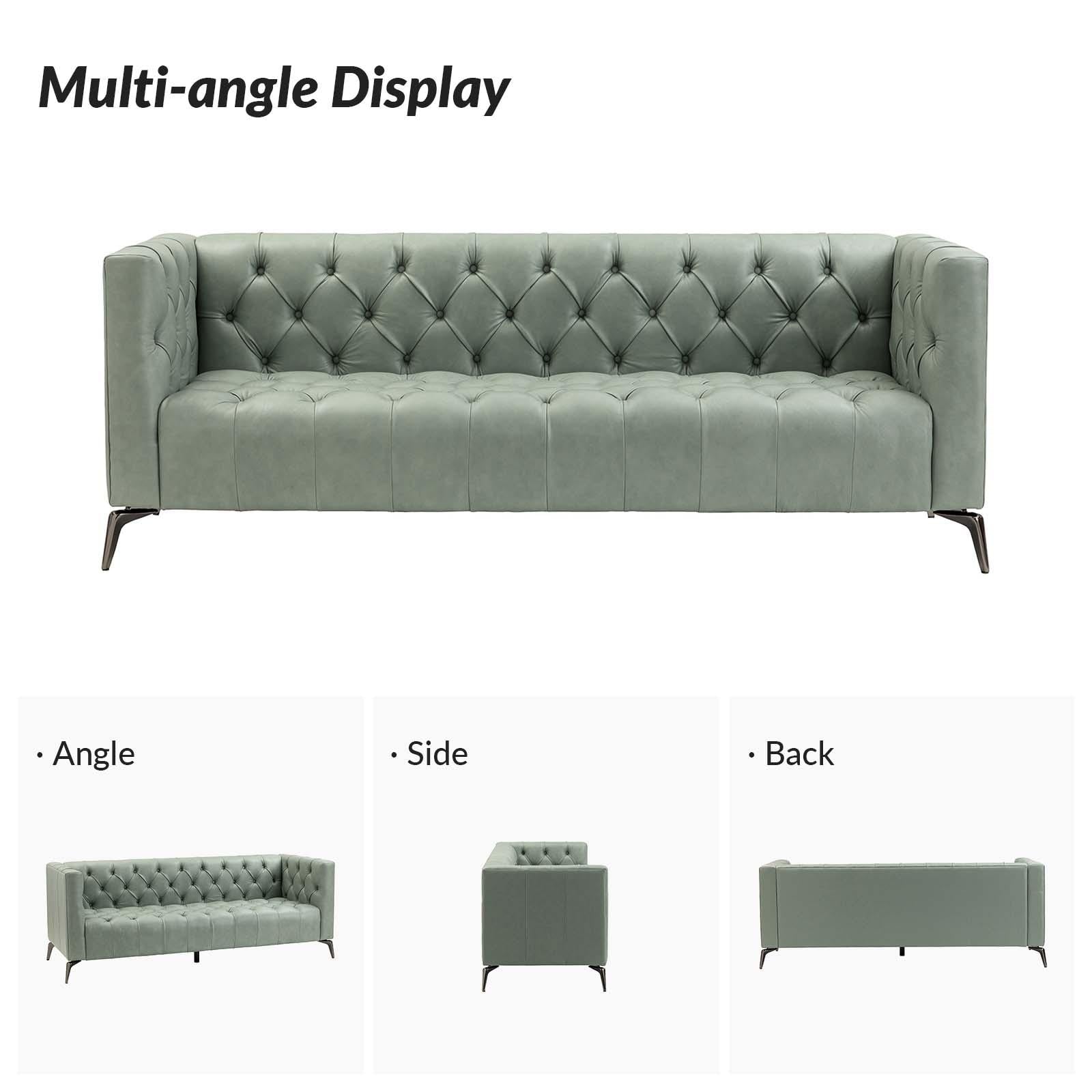 - Quality Material: This sofa is wrapped in genuine leather and vegan leather, most of the body contact part of the material is genuine leather, and the rest is vegan leather.