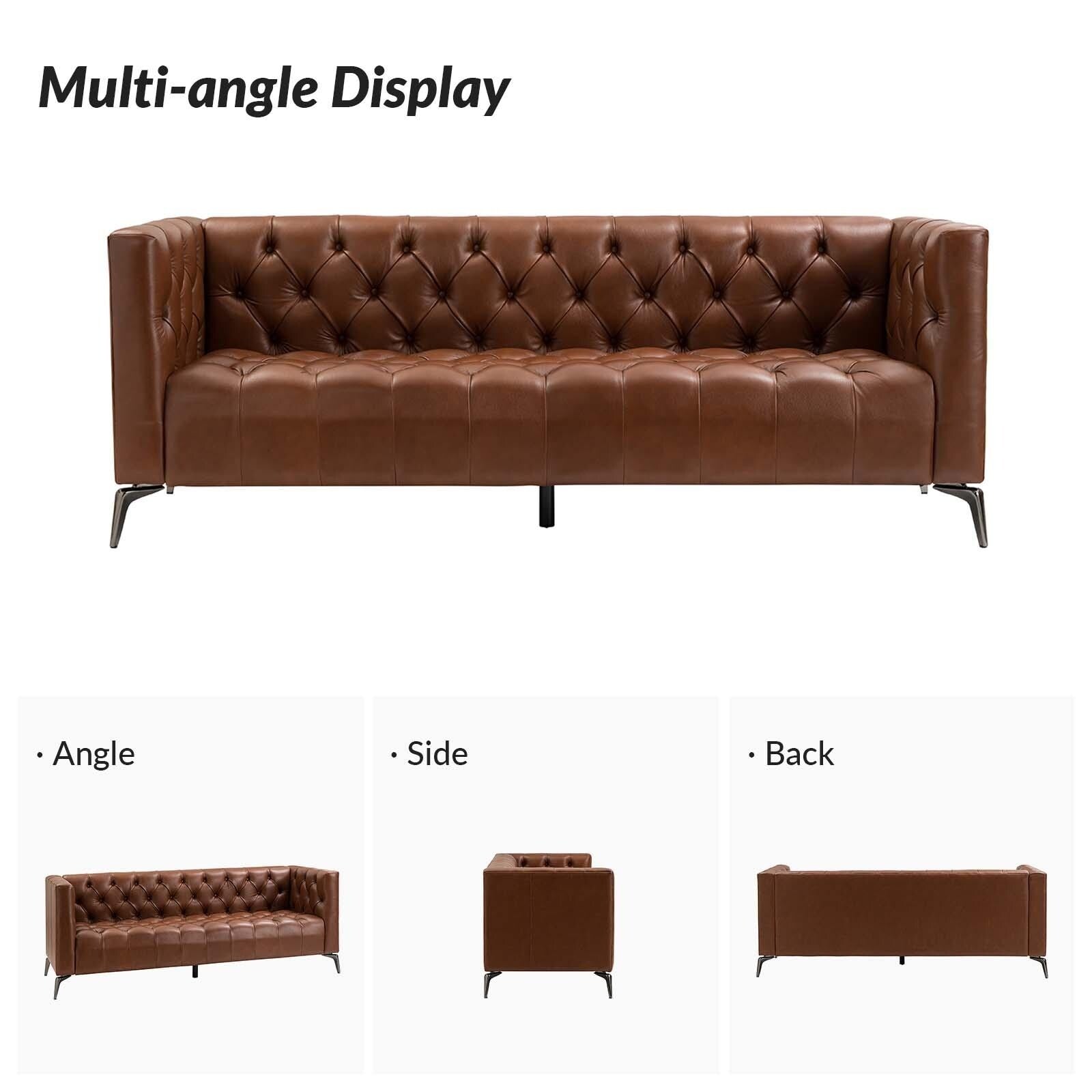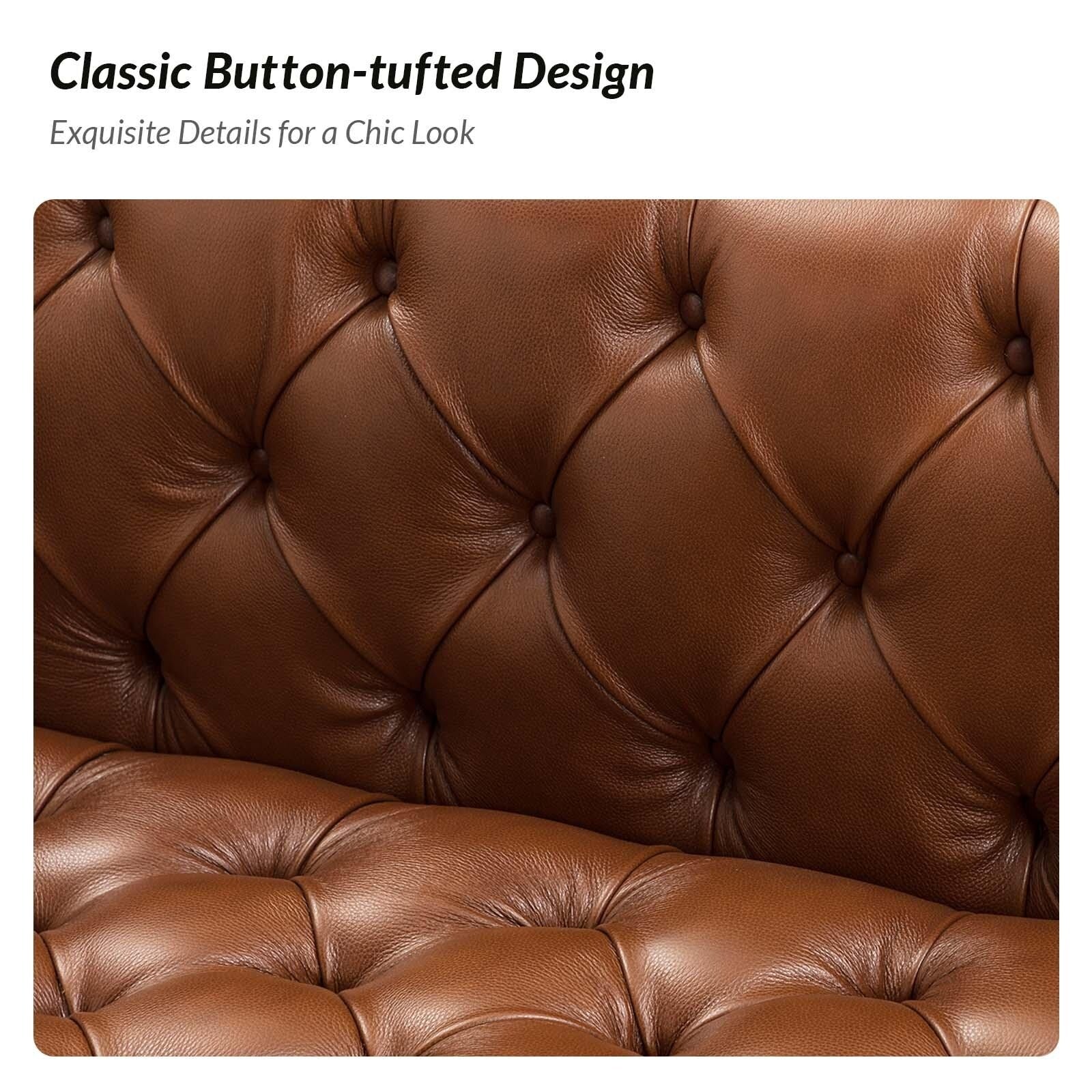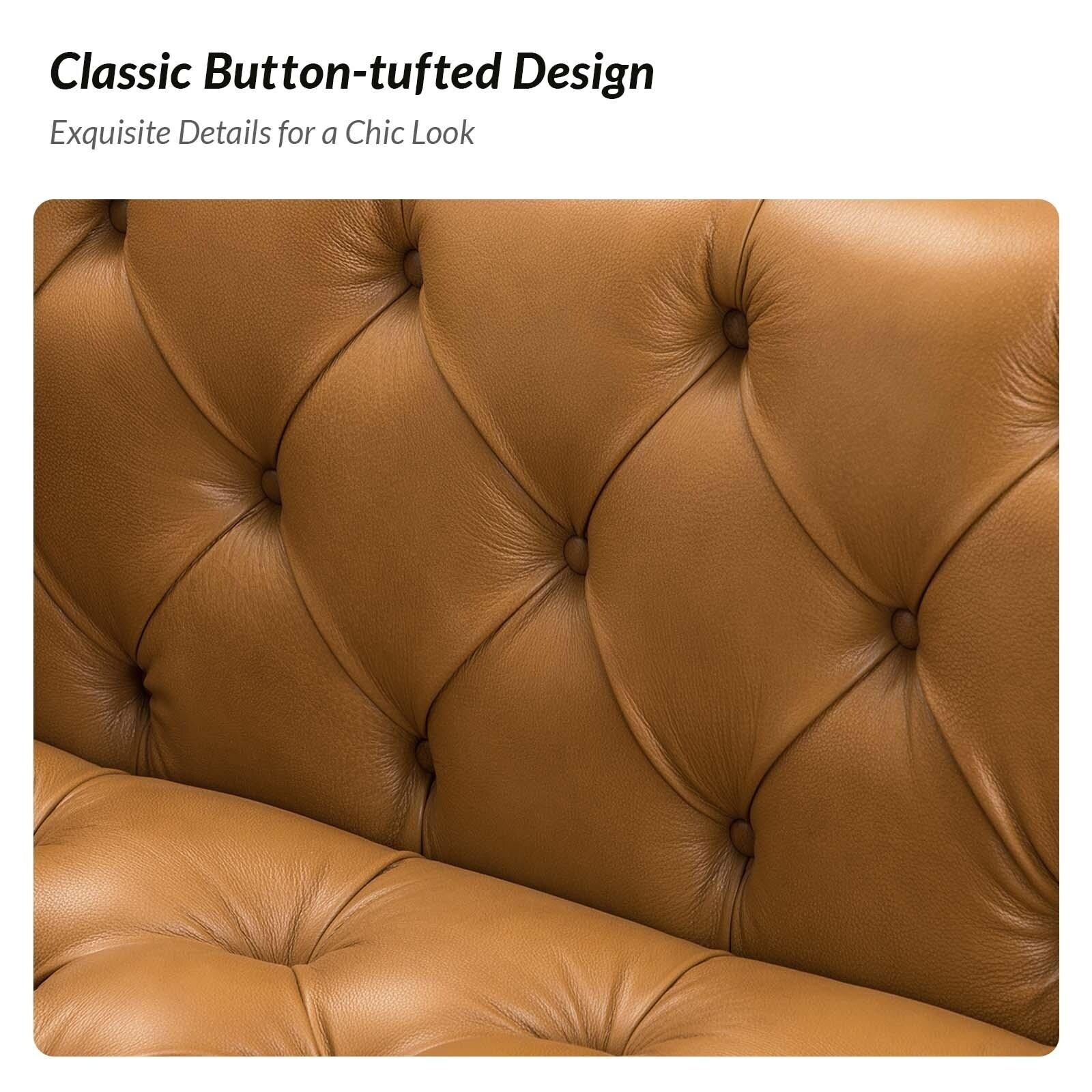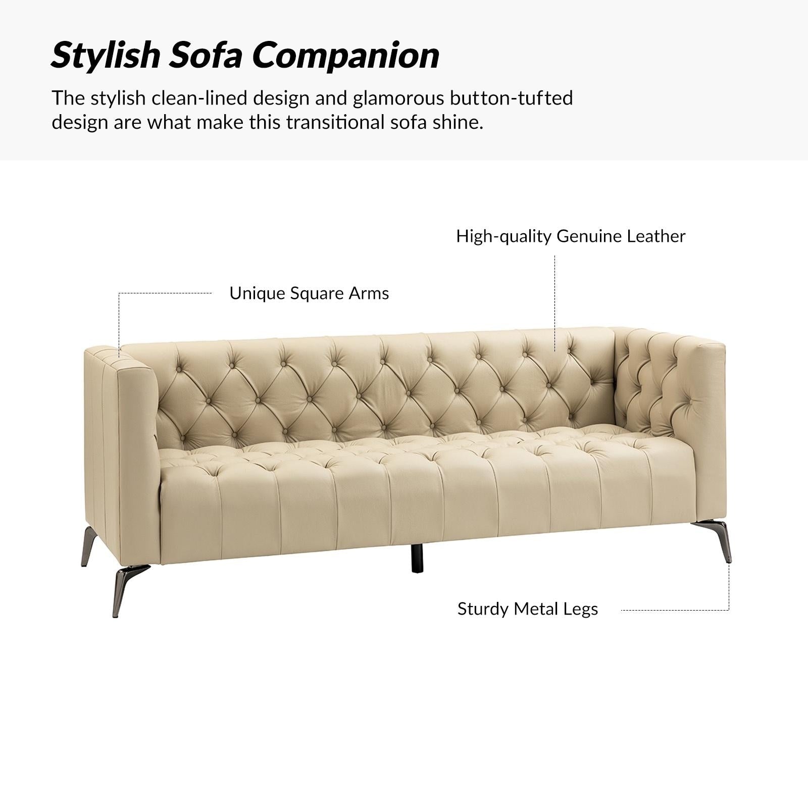 Nestor Transitional Genuine Leather Sofa with Metal Legs and Tufted Back