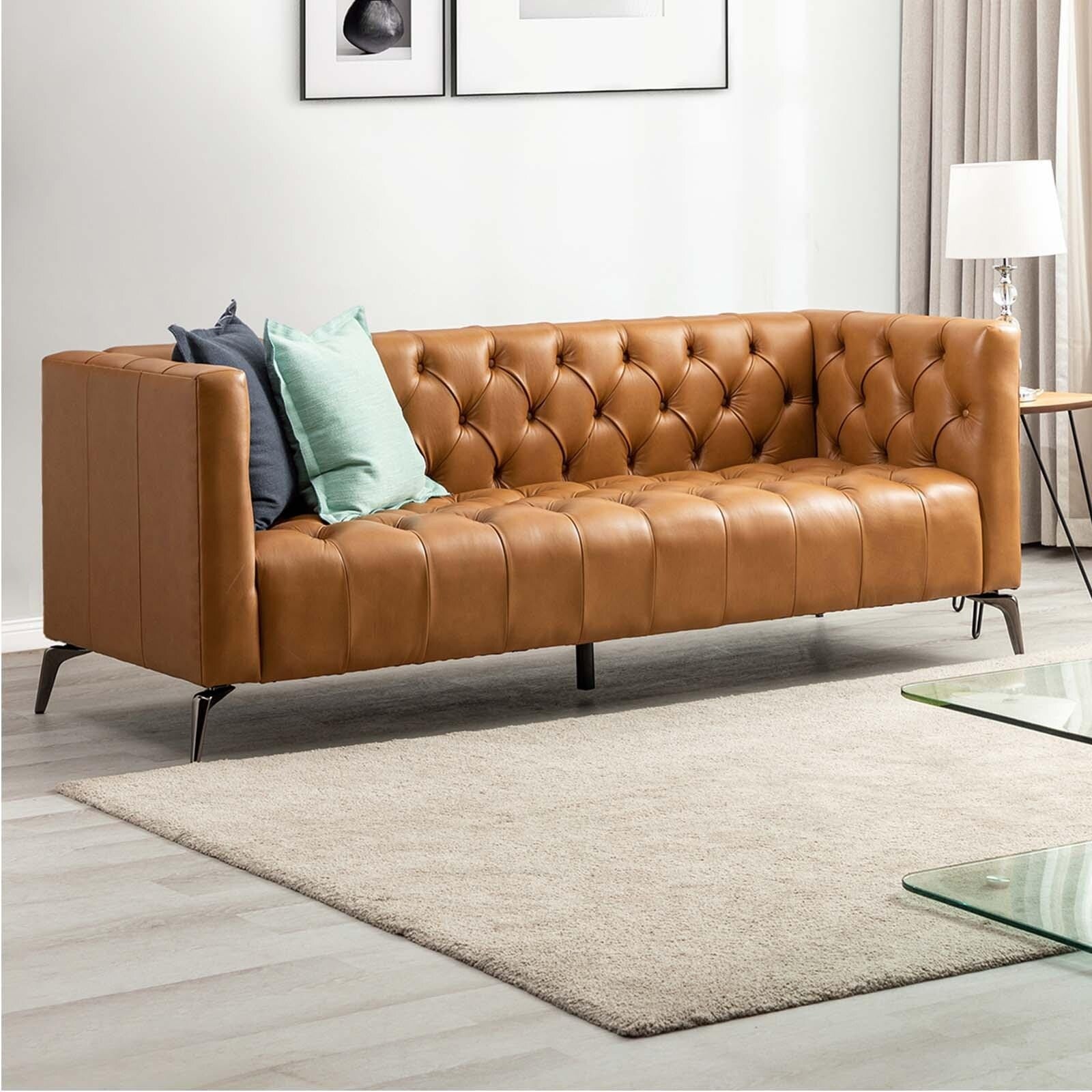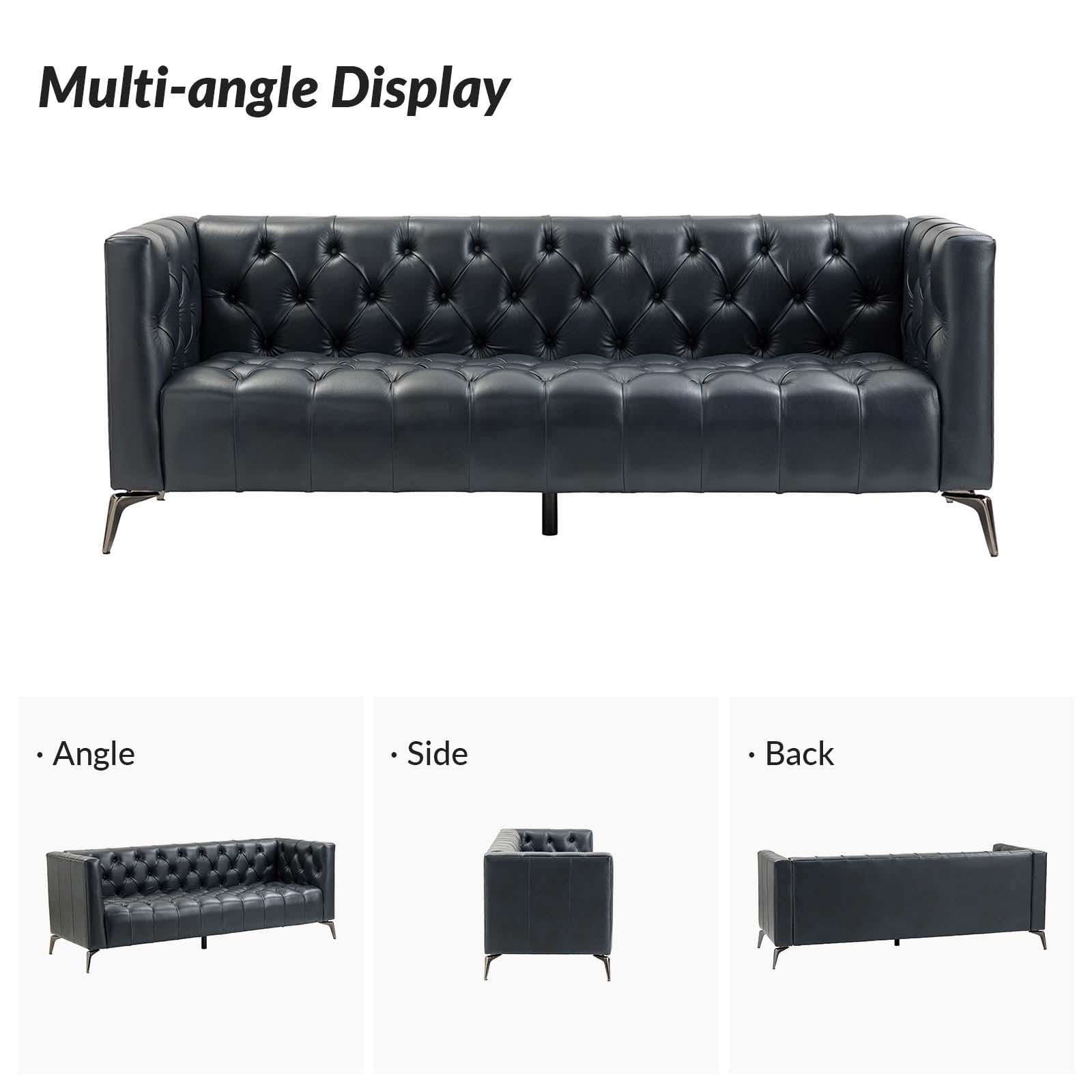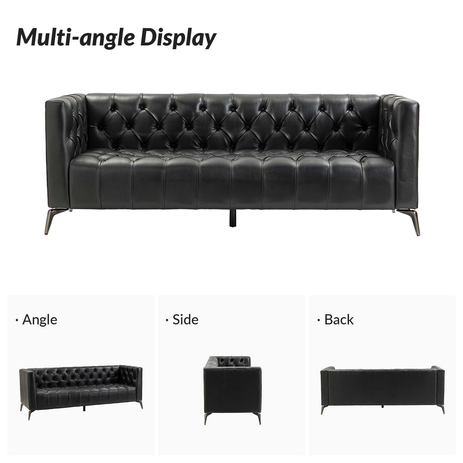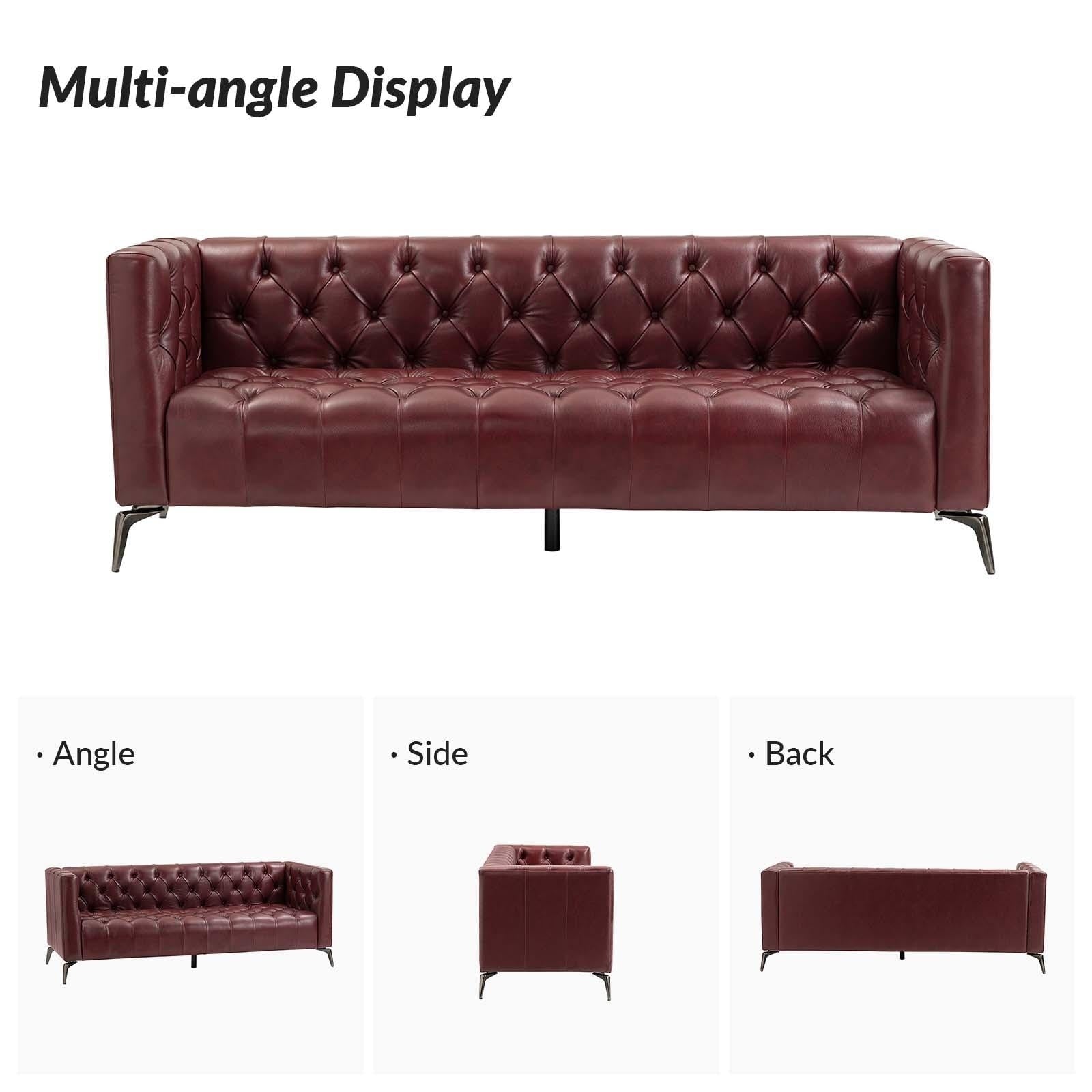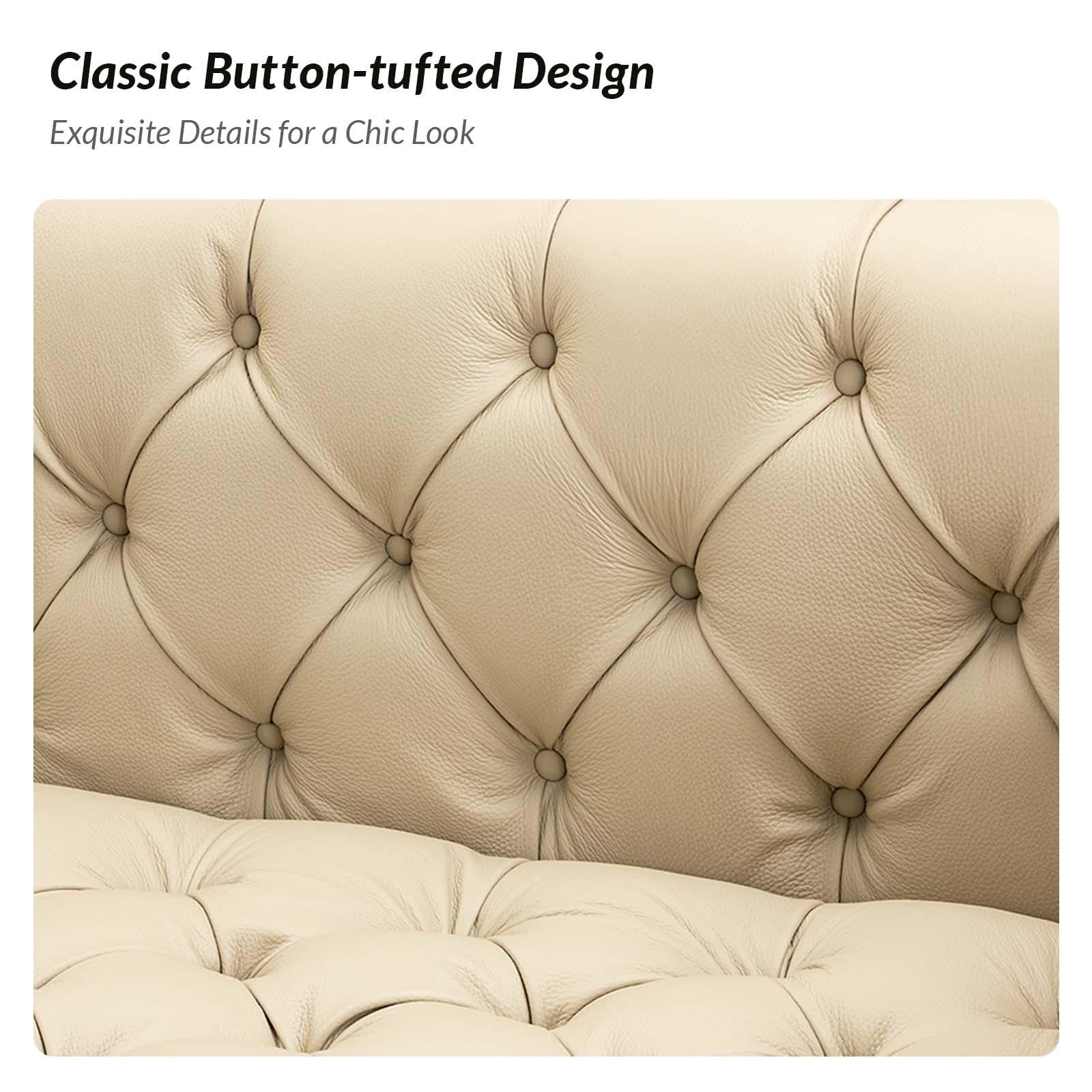 Nestor Transitional Genuine Leather Sofa with Metal Legs and Tufted Back