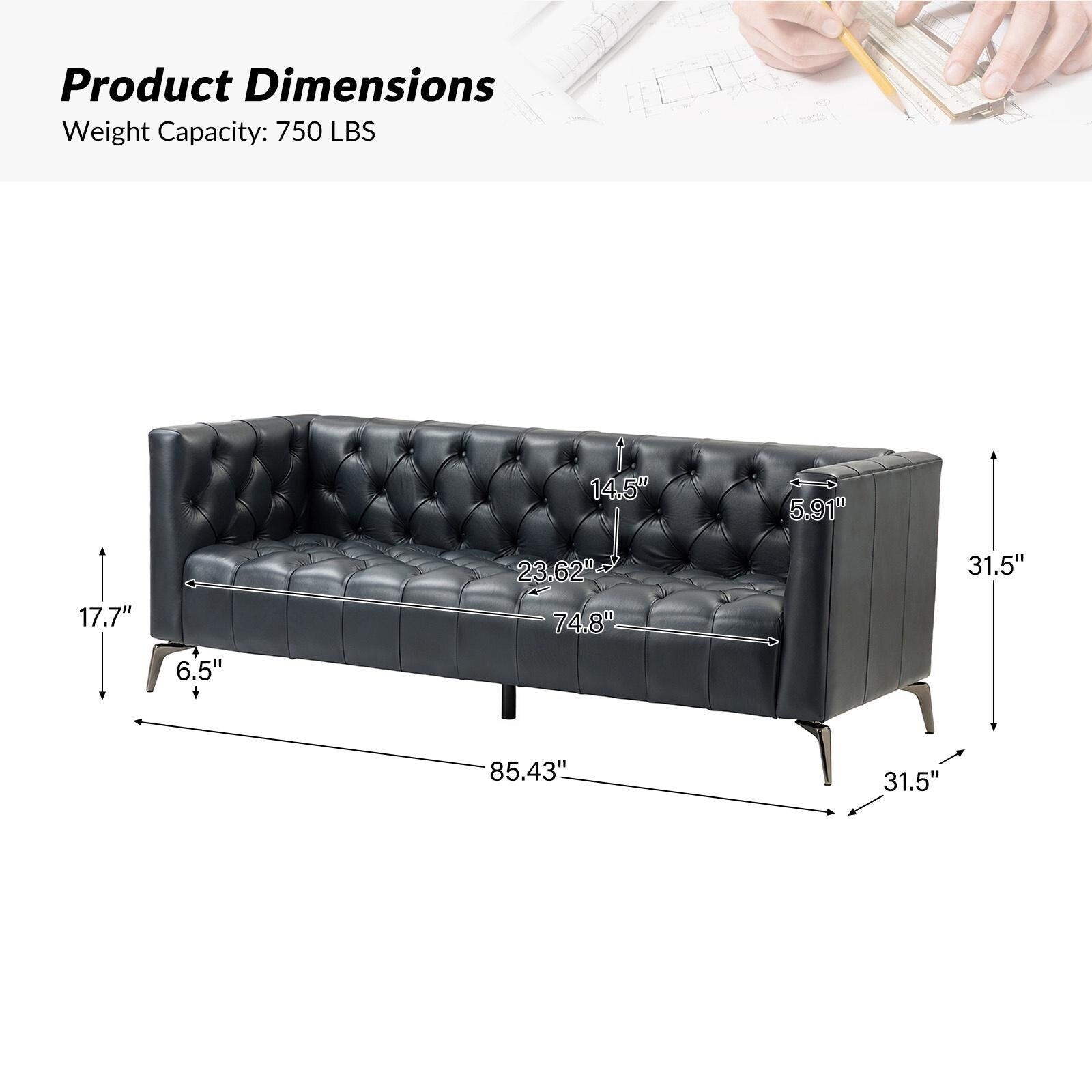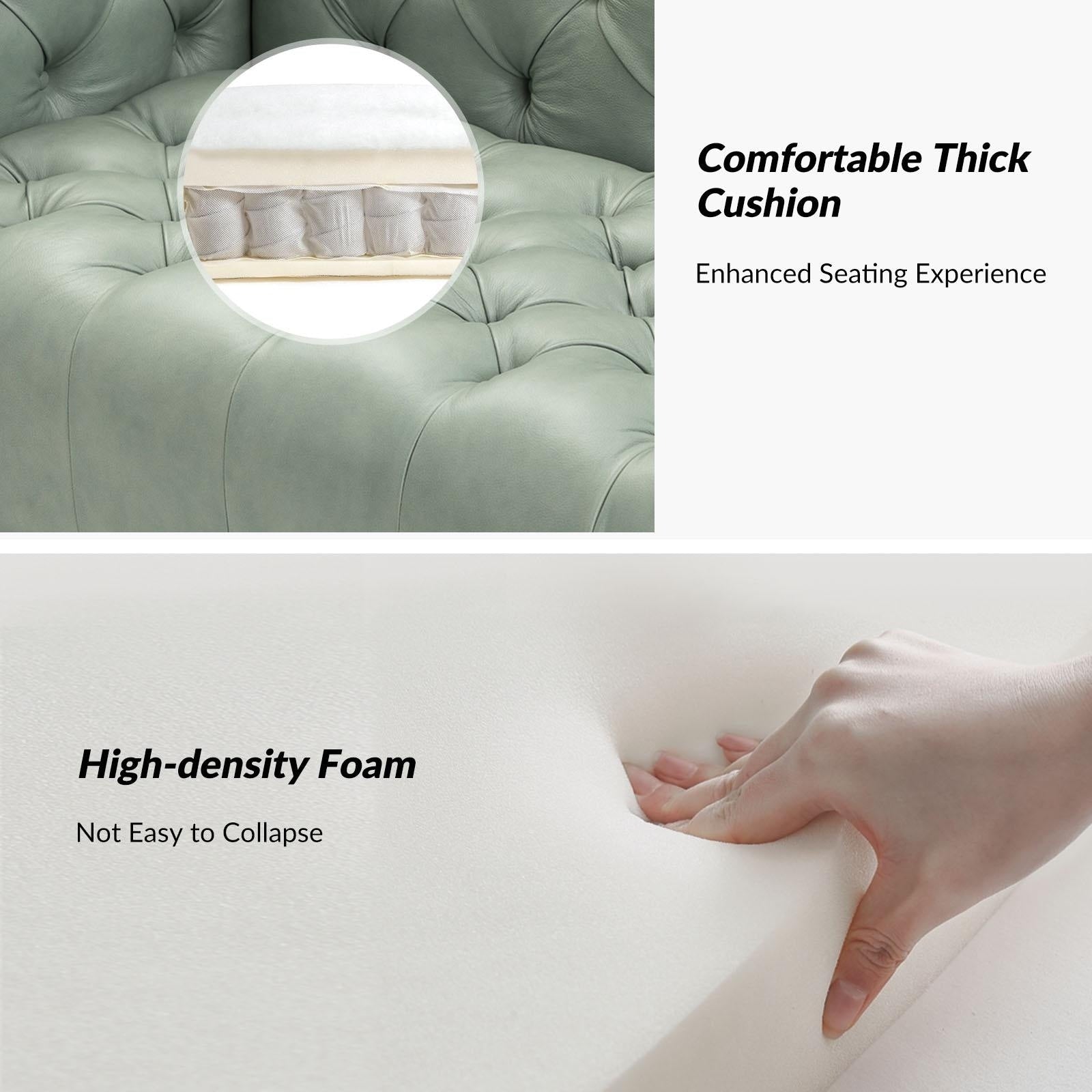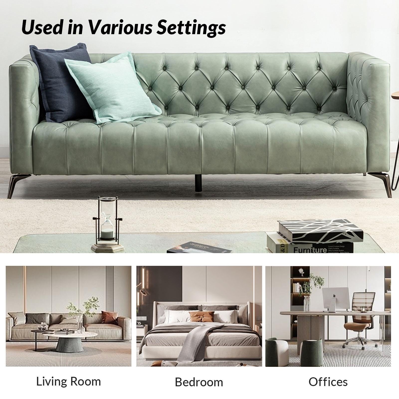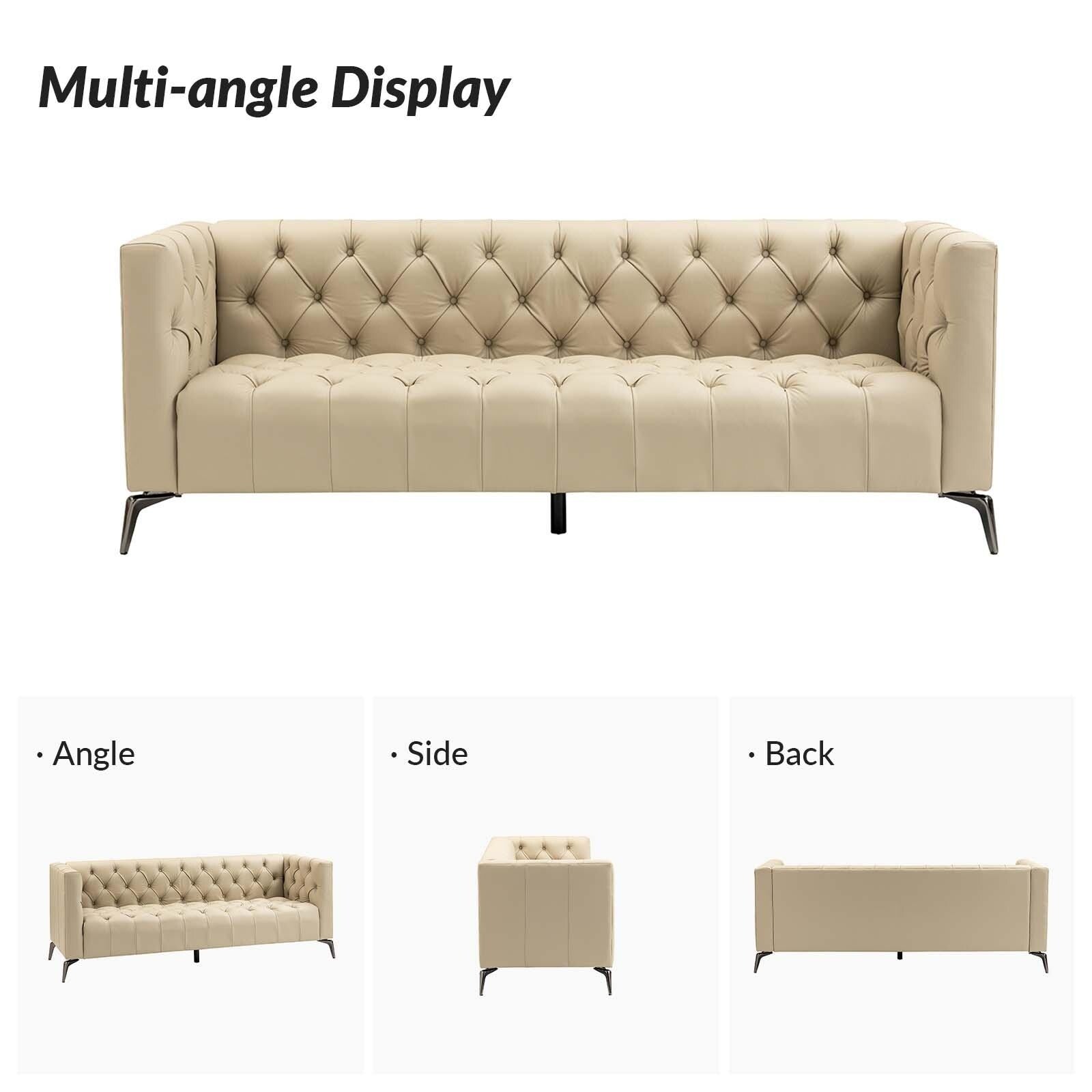 For stylish sophistication and understated elegance, look no further than this sofa which will be your best choice. Featuring thoughtful details and meticulous craftsmanship, this sofa is made of solid and manufactured wood frames for improved stability and durability. Its button-tufted design and unique square arms provide a tasteful accent to any room. The seat cushion is filled with thick foam and S-springs for ultimate comfort and to make you forget about being tired after a long day at work. This sofa is a combination of comfort and great looks that is more versatile.