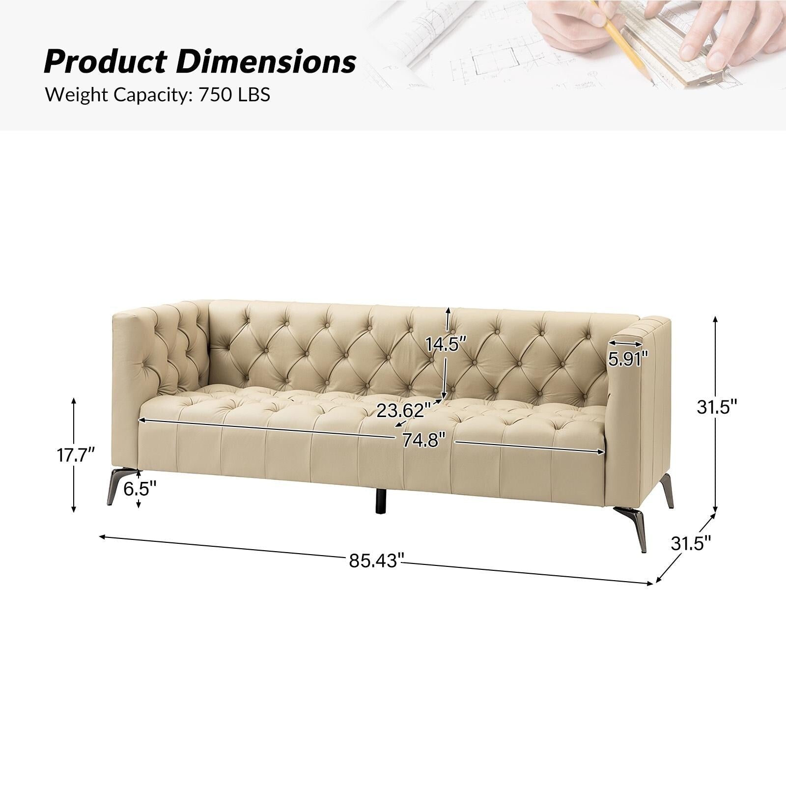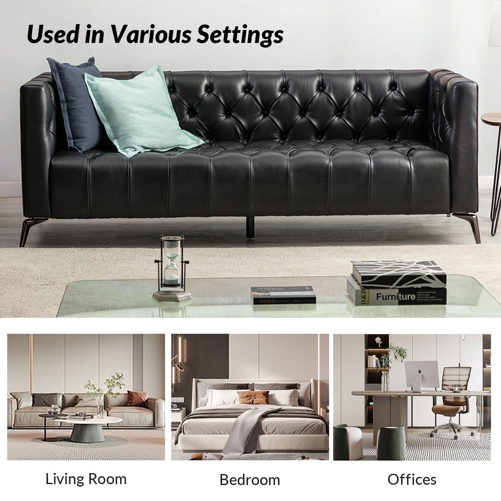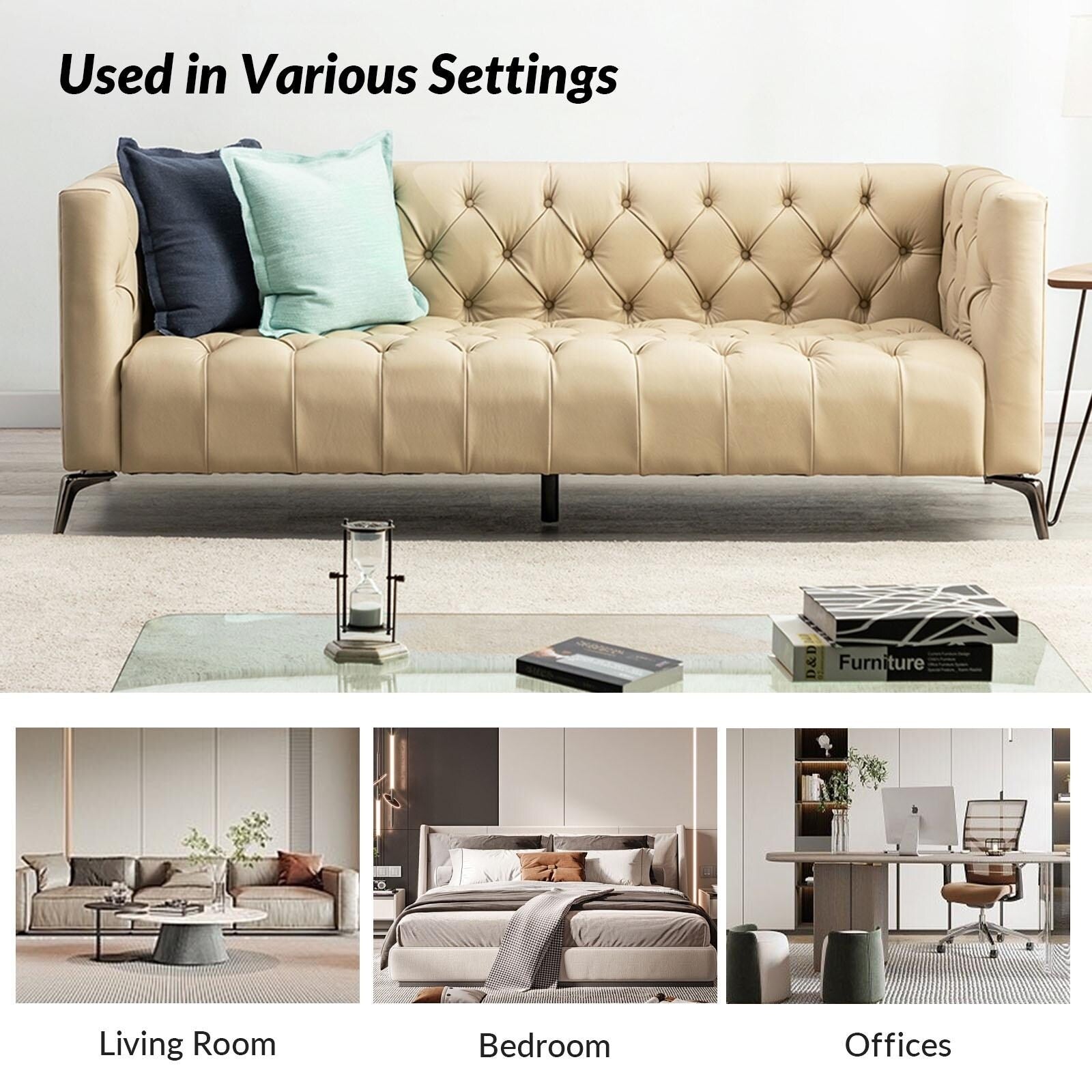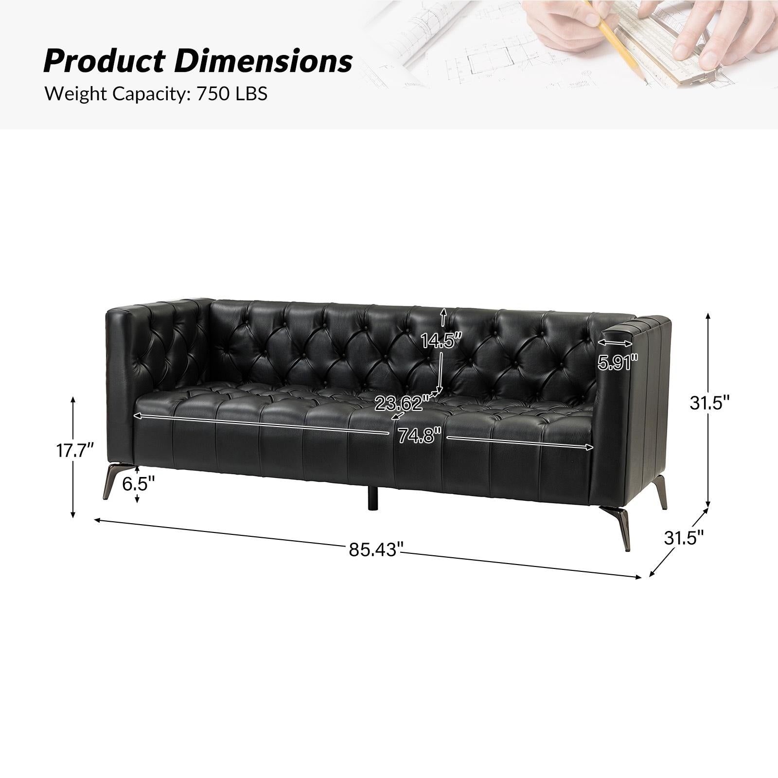 For stylish sophistication and understated elegance, look no further than this sofa which will be your best choice. Featuring thoughtful details and meticulous craftsmanship, this sofa is made of solid and manufactured wood frames for improved stability and durability. Its button-tufted design and unique square arms provide a tasteful accent to any room. The seat cushion is filled with thick foam and S-springs for ultimate comfort and to make you forget about being tired after a long day at work. This sofa is a combination of comfort and great looks that is more versatile.