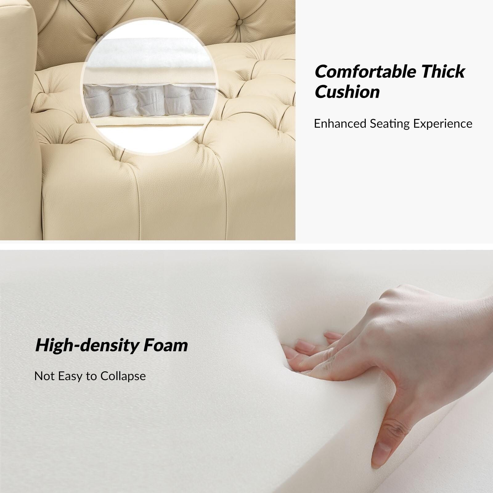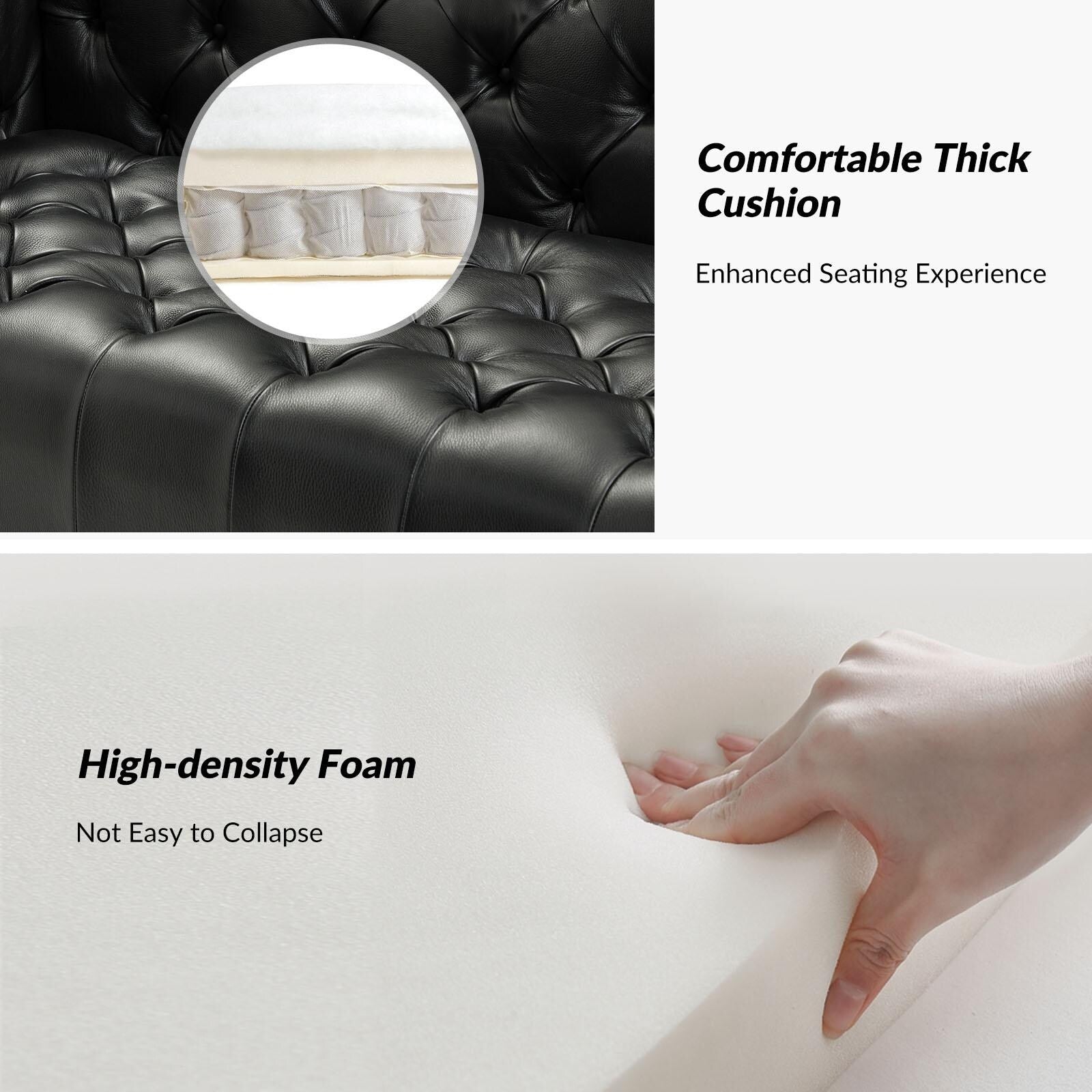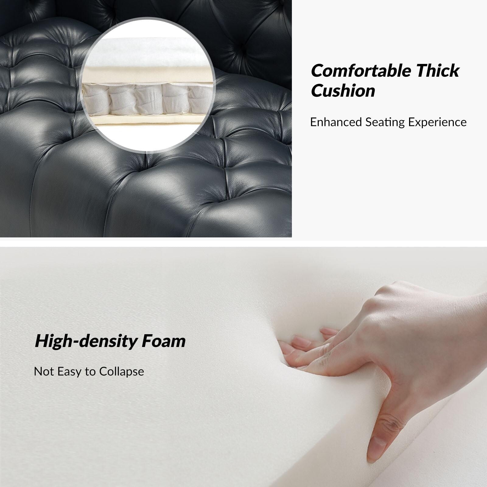 - Superior Support: The well-padded seat cushions, built-in S-spring and skin-friendly leather of this sofa ensure a high level of seating comfort and visual enjoyment.