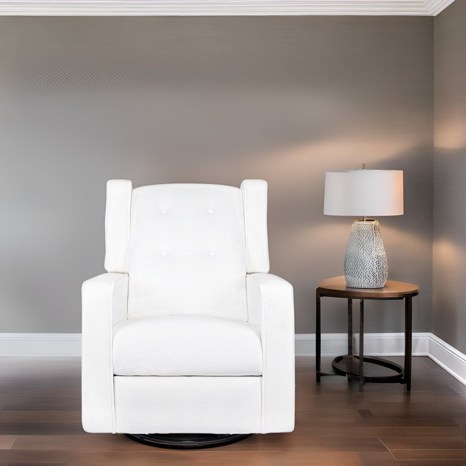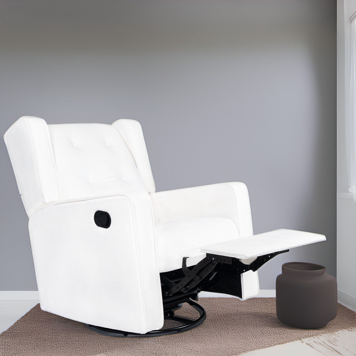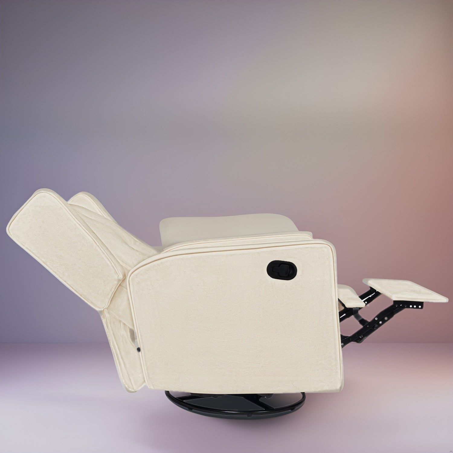 ERGONOMIC TIMELESS DESIGN: This Breastfeeding Chair / Maternity Chair / Swivel Glider Rocker Recliner. The design of this swivel rocker has a square silhouette along with track arms and button tufted on the backrest. The Glider is made of top quality microfiber fabric, which feels very soft and plush. The Nursing Chair is a perfect pick for nurseries and living areas alike, Enjoy your leisure time and fully relax your body and mood with this comfortable glider recliner nursery chair.