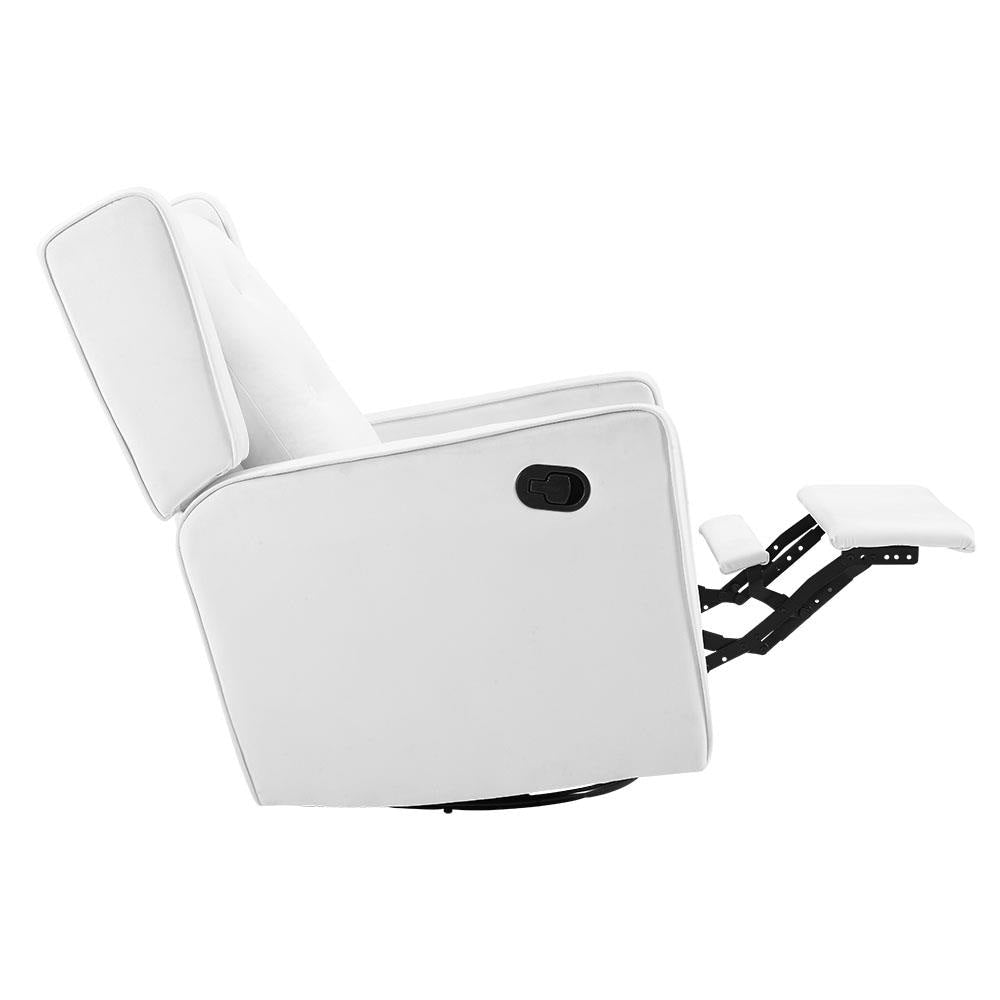Introducing our premium Nursery Glider, designed to provide the utmost comfort and style for both parents and babies. Experience the joy of bonding and relaxation with our thoughtfully crafted Breastfeeding Chair / Maternity Chair. ?It supports up to 250 lbs. The footrest automatically raises when reclined. Standing at 42' high, it offers a cushion dimension of 22' W x 21' D. Requires 10' wall clearance. The base measures 22'. Enjoy effortless footrest action when reclining.?