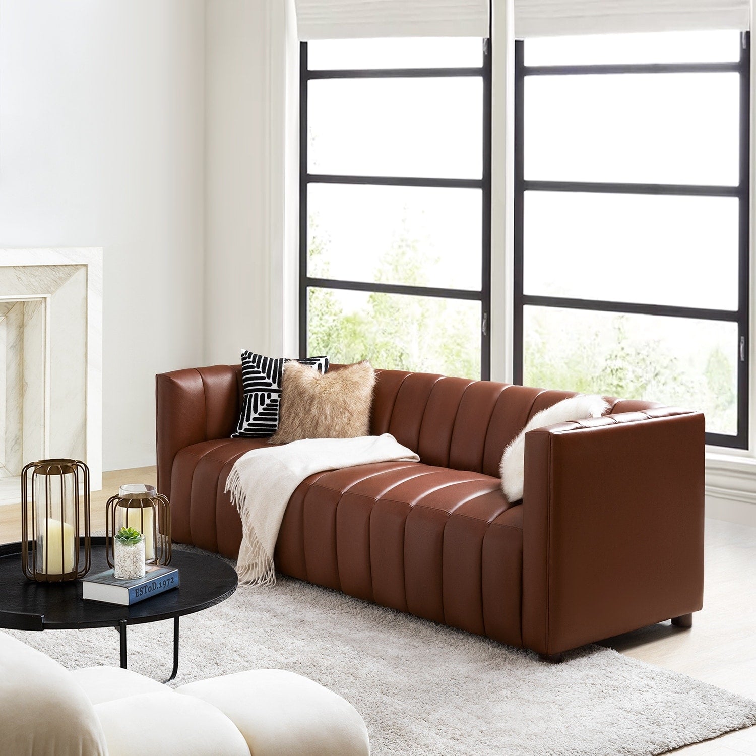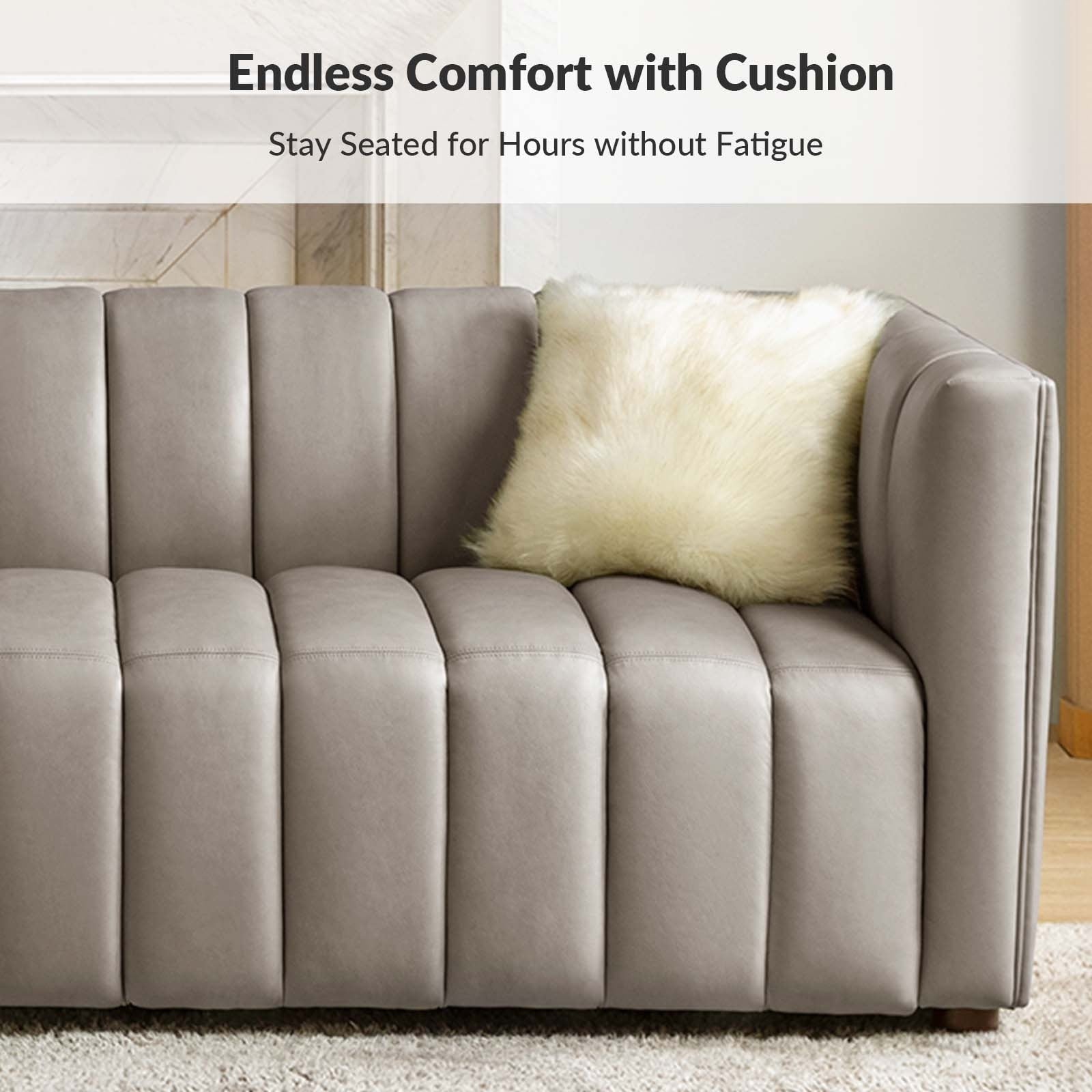 Olinto Modern 83-Inch Genuine Leather Curved Couch Sofa with Channel Back by HULALA HOME