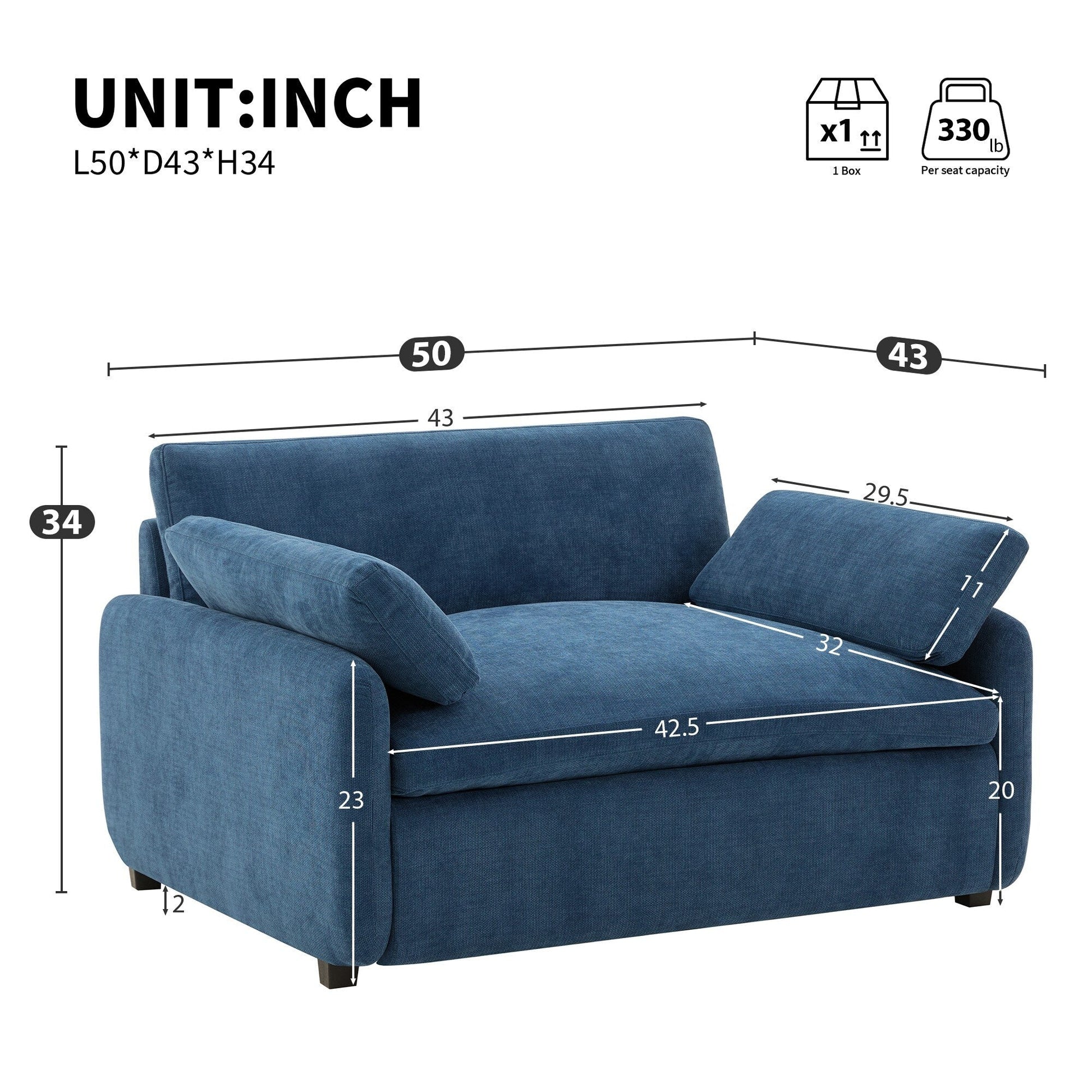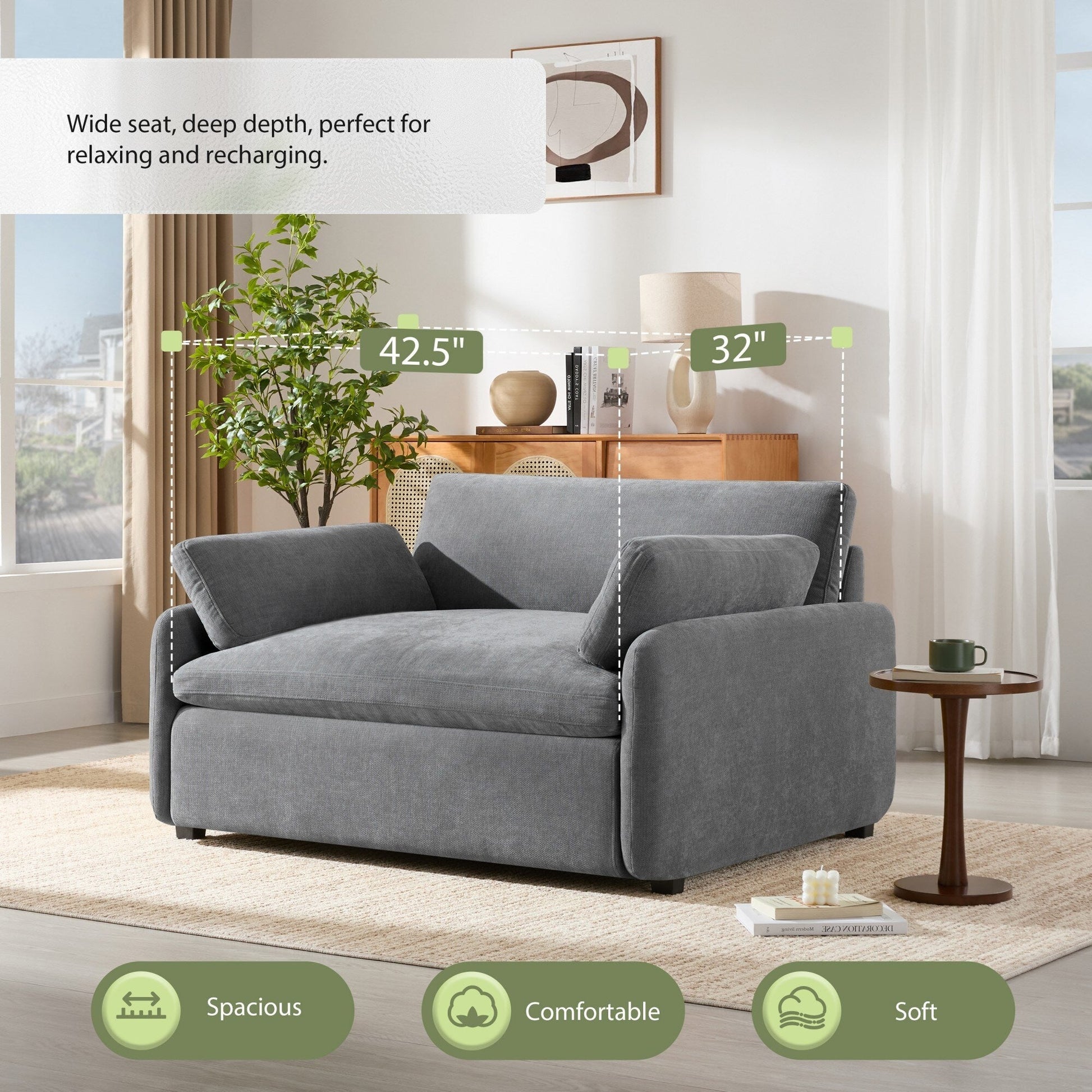 - [Extra-Wide and Deep Seat] Designed with a 42.5-inch wide seat and 32-inch deep seating area, this chair provides ample space to stretch out and relax, making it perfect for lounging or curling up with a book.