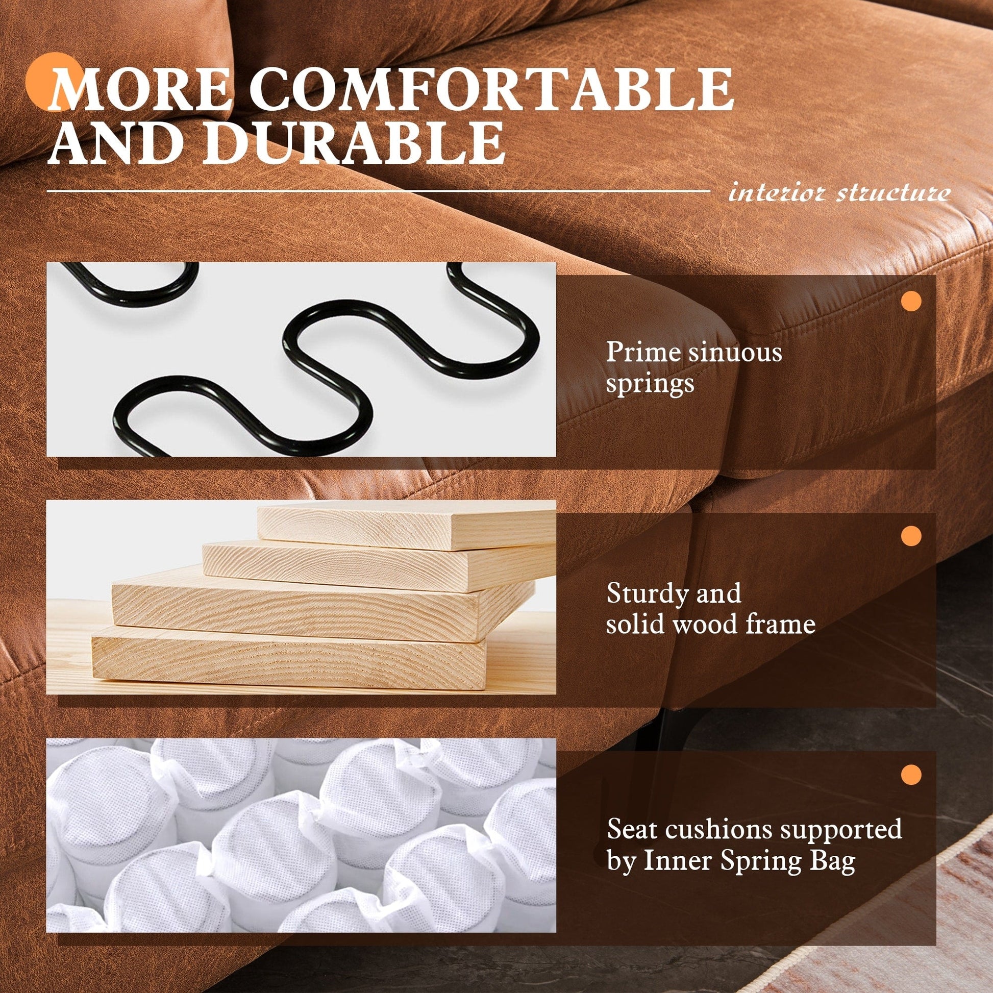 Add a touch of luxury to your living room with the OVIOS Mid-Century Suede Leather Chaise Sofa. Its textured suede fabric offers a comfortable and enjoyable feeling while its high-density sponge ensures a comfortable sitting experience. The seat cushion is compact and plump, enhancing your happiness when lounging. The sturdy metal legs look neat and provide strong bearing capacity for your safety. The flexible high-quality spring coils make the sofa stable, durable, and with a longer operating life. Enjoy superior comfort with this light luxury chaise sofa.