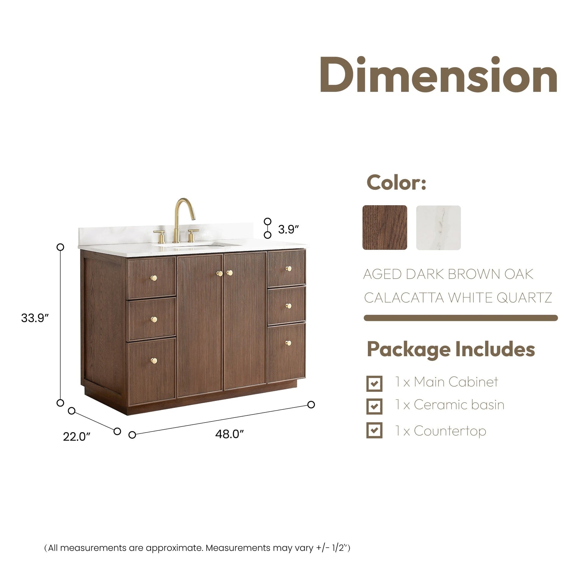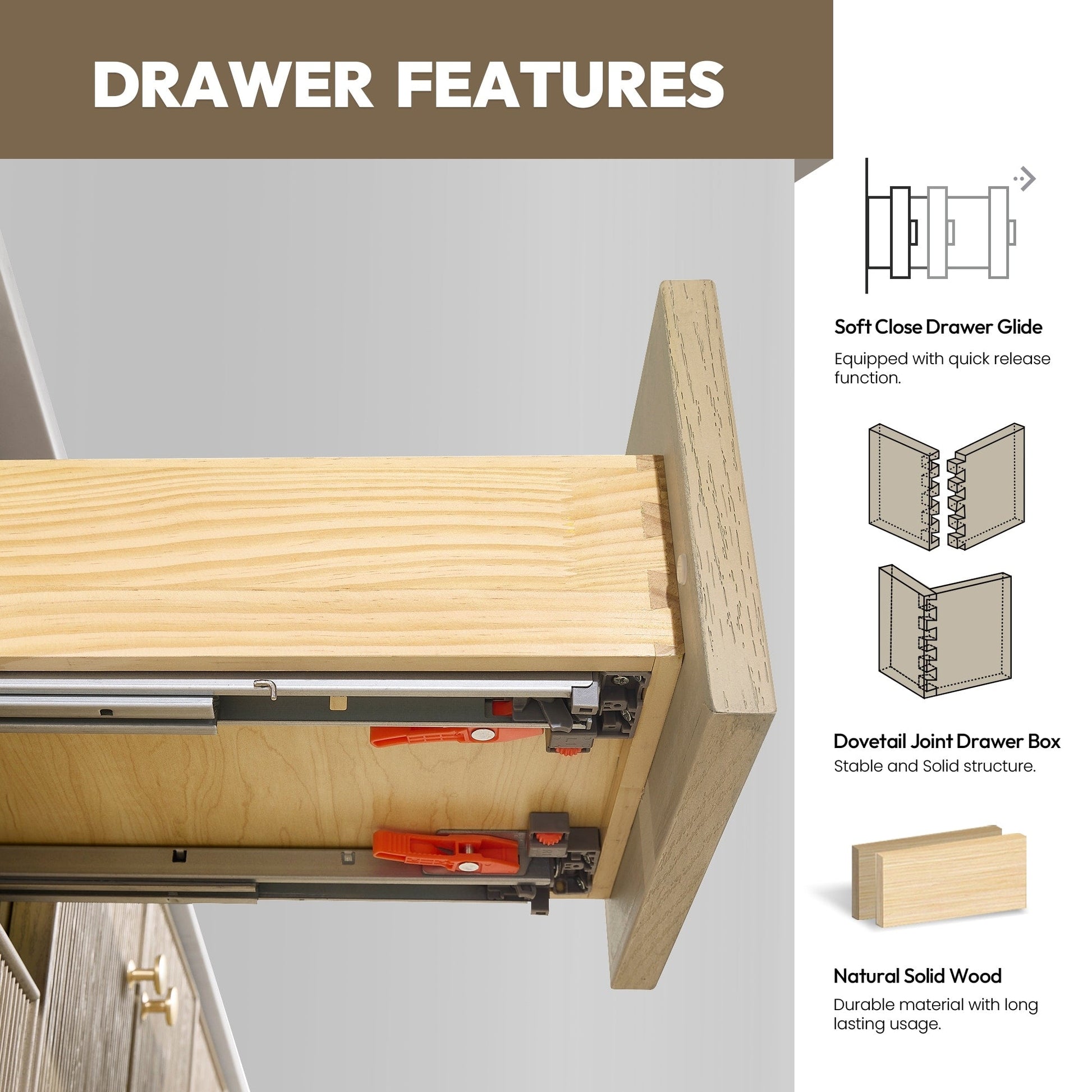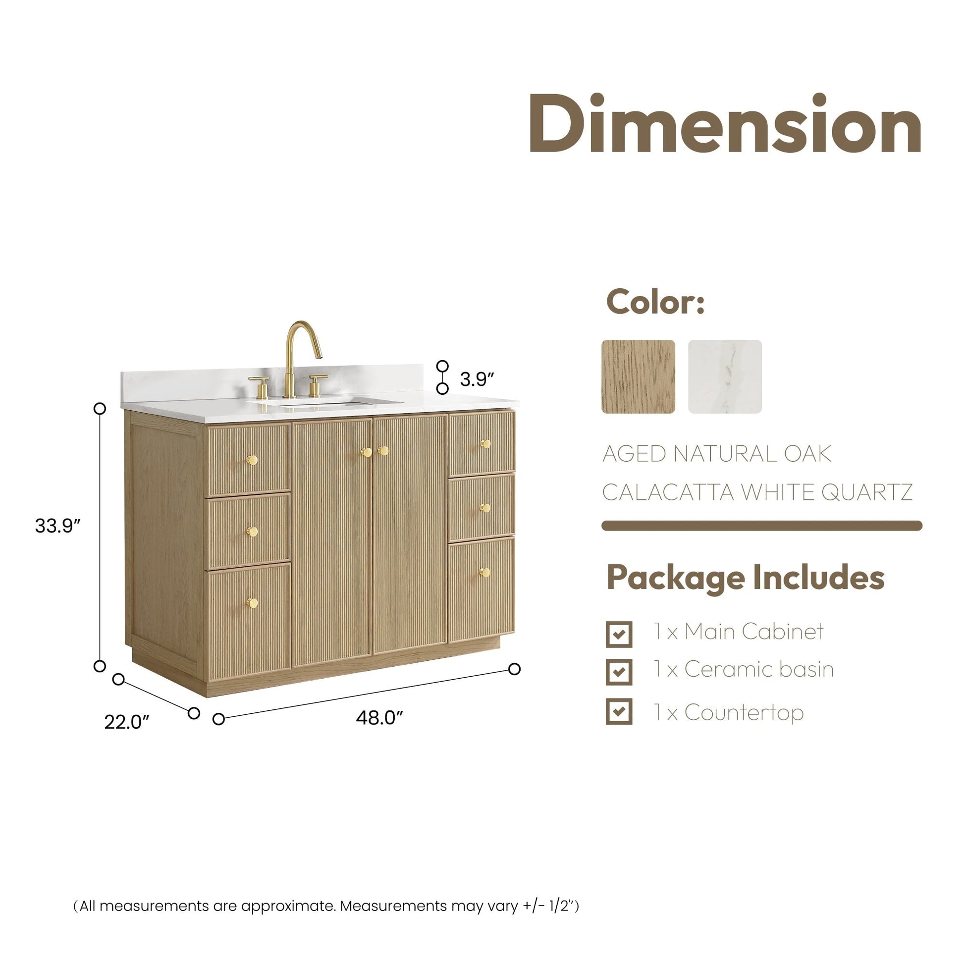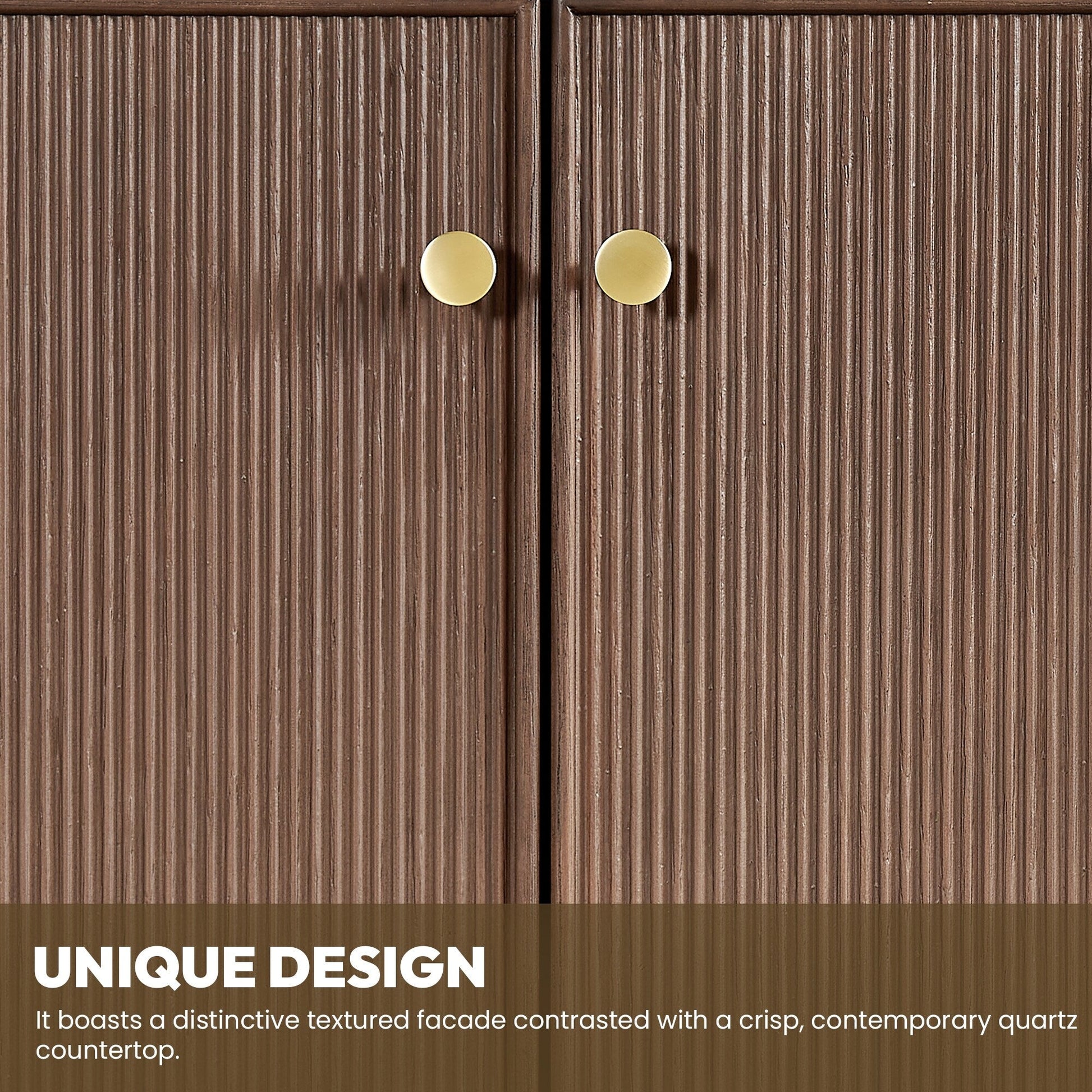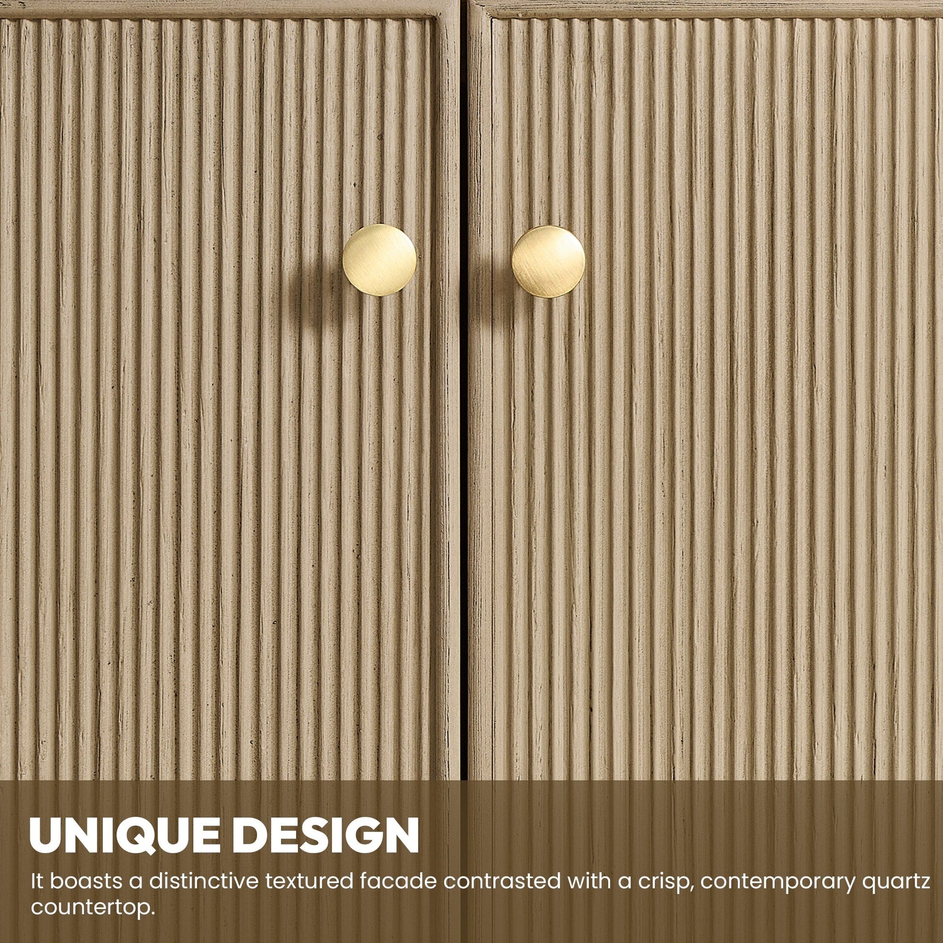 · Modern Top: 0.8'-thick, quartz stone top with backsplash. The countertop is scratch-resistant, wear-resistant, and easy to clean.