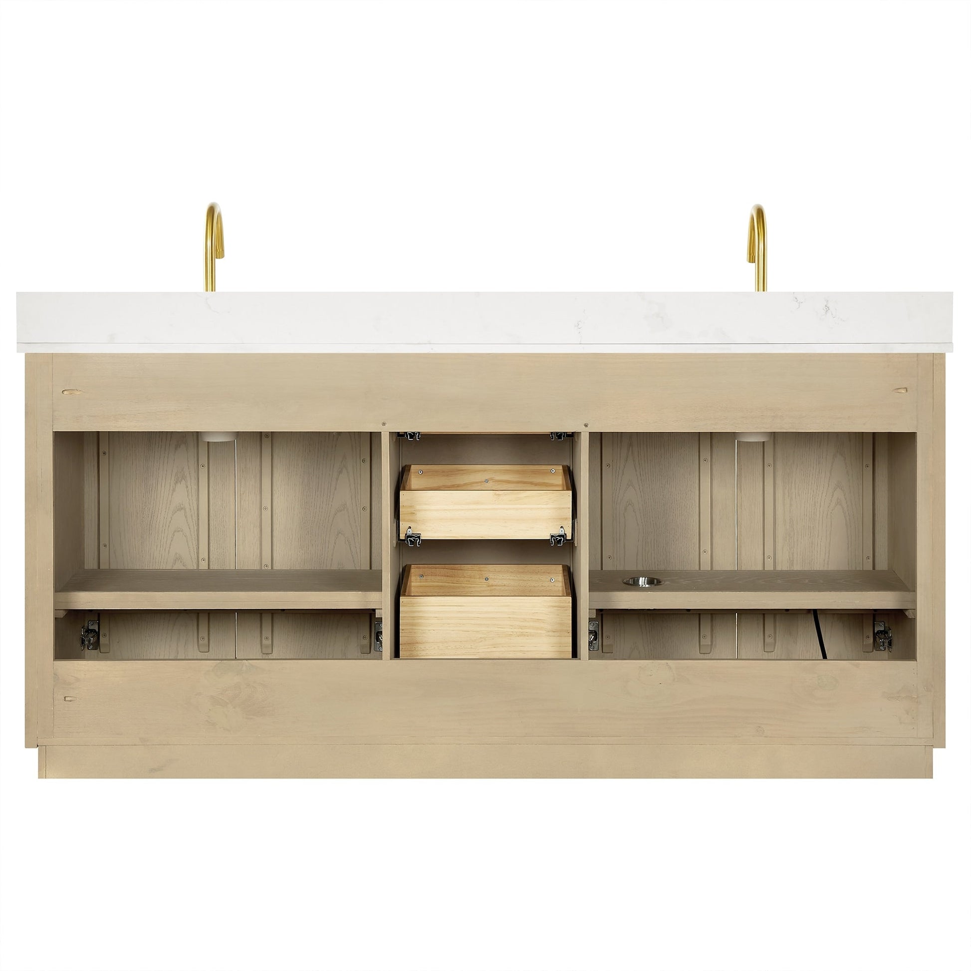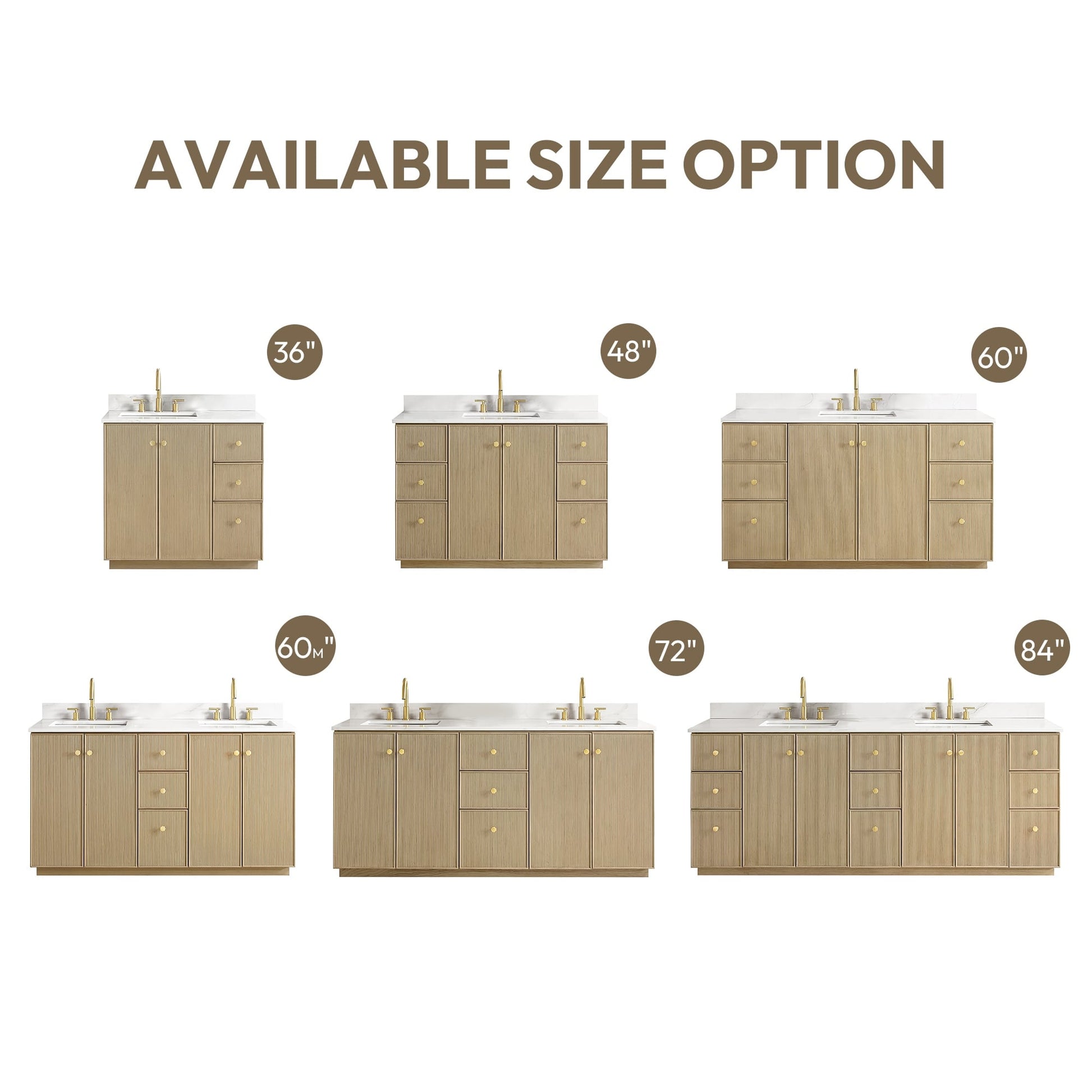 60 inch(Double sink) - 4 soft-closing doors and 3 sturdy, soft-closing dovetail drawers.