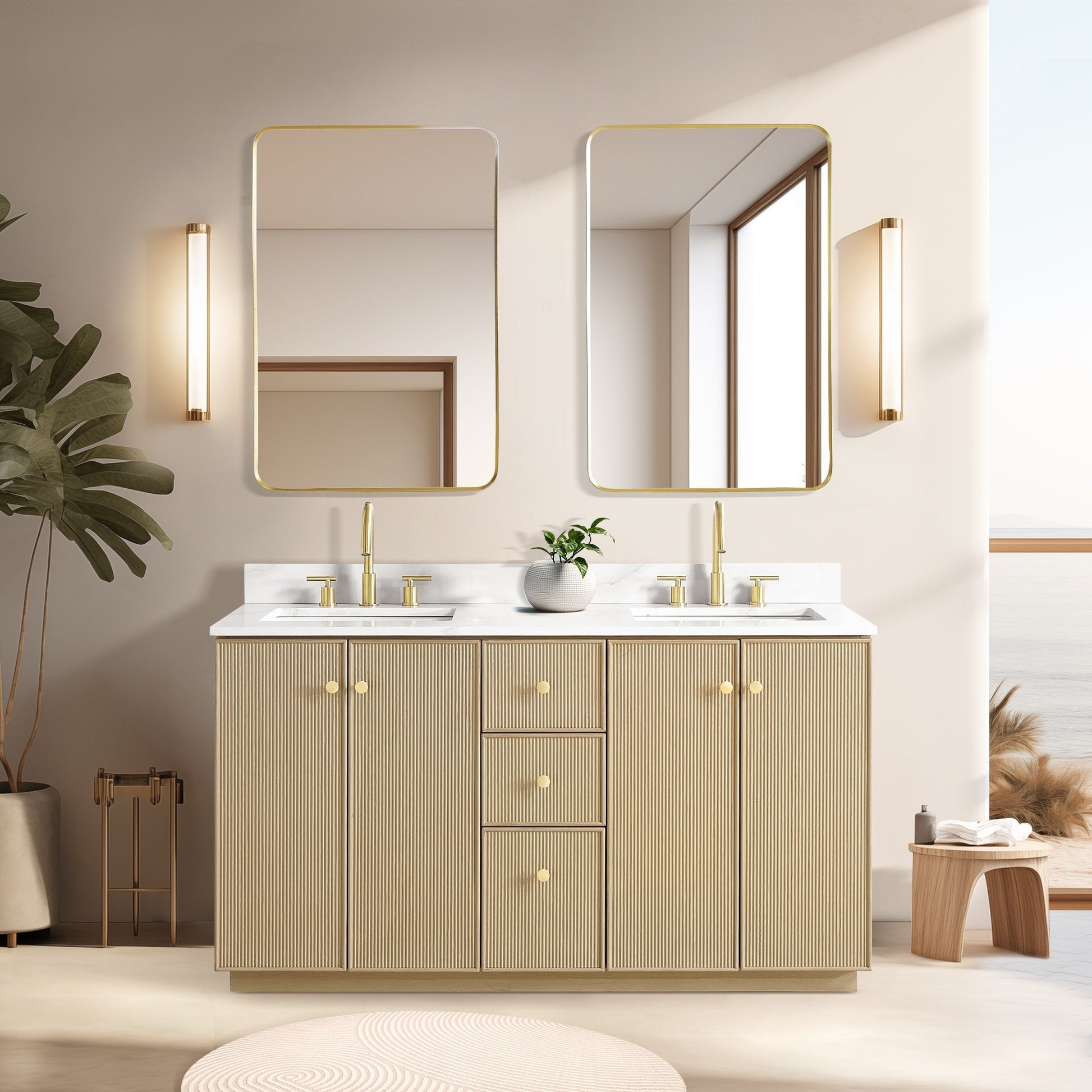 Meticulously designed, our Oza Series Vanity adds a layer of intrigue and artistry to your bathroom, creating a visual centerpiece that sparks compliments and conversation. It boasts a distinctive textured facade contrasted with a crisp, contemporary quartz countertop. Solid wood construction ensures your investment not only looks stunning, but also stands the test of time, gaining more character and charm as the years go by.