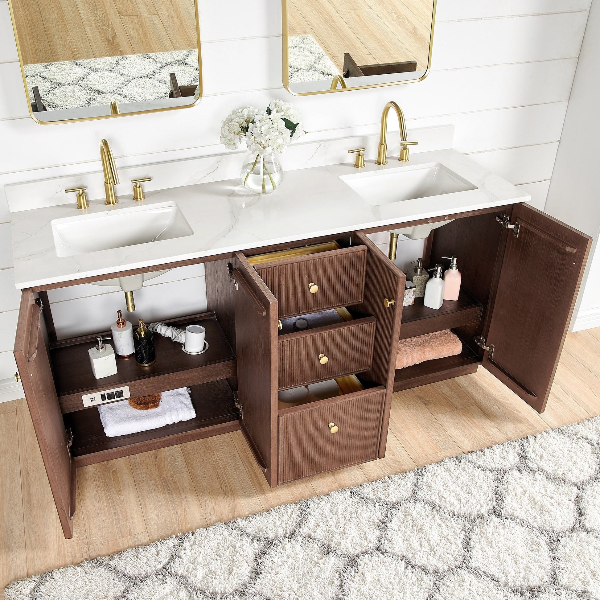 · Practical Functionality: Built-in UL-listed power and USB outlets.Includes convenient hair dryer organizer.