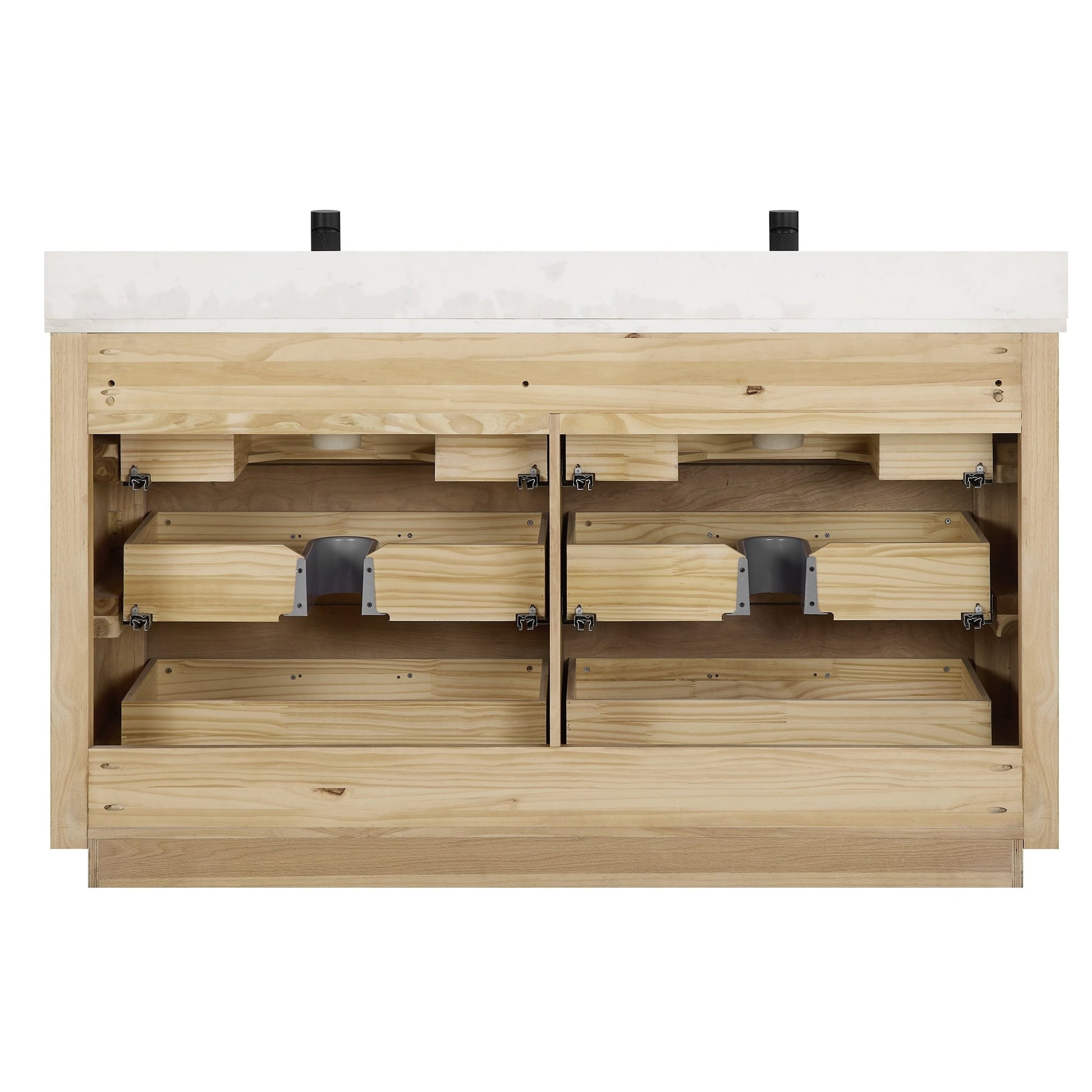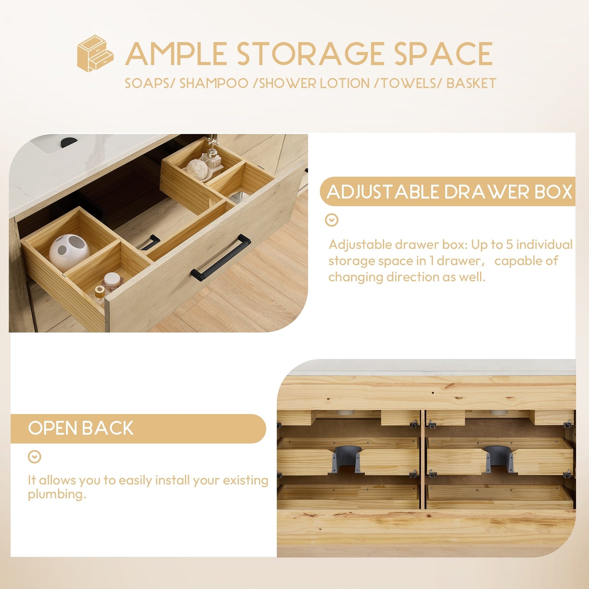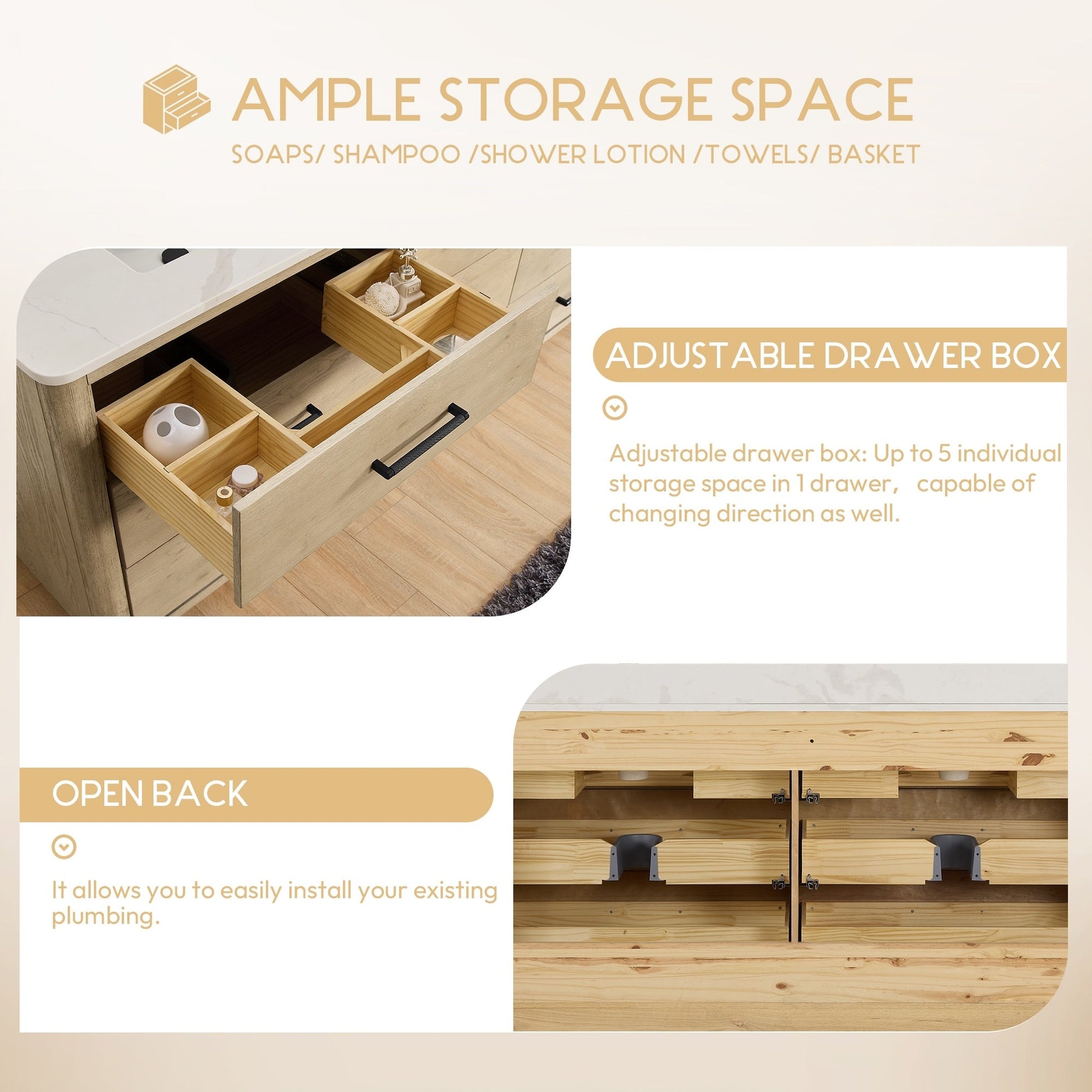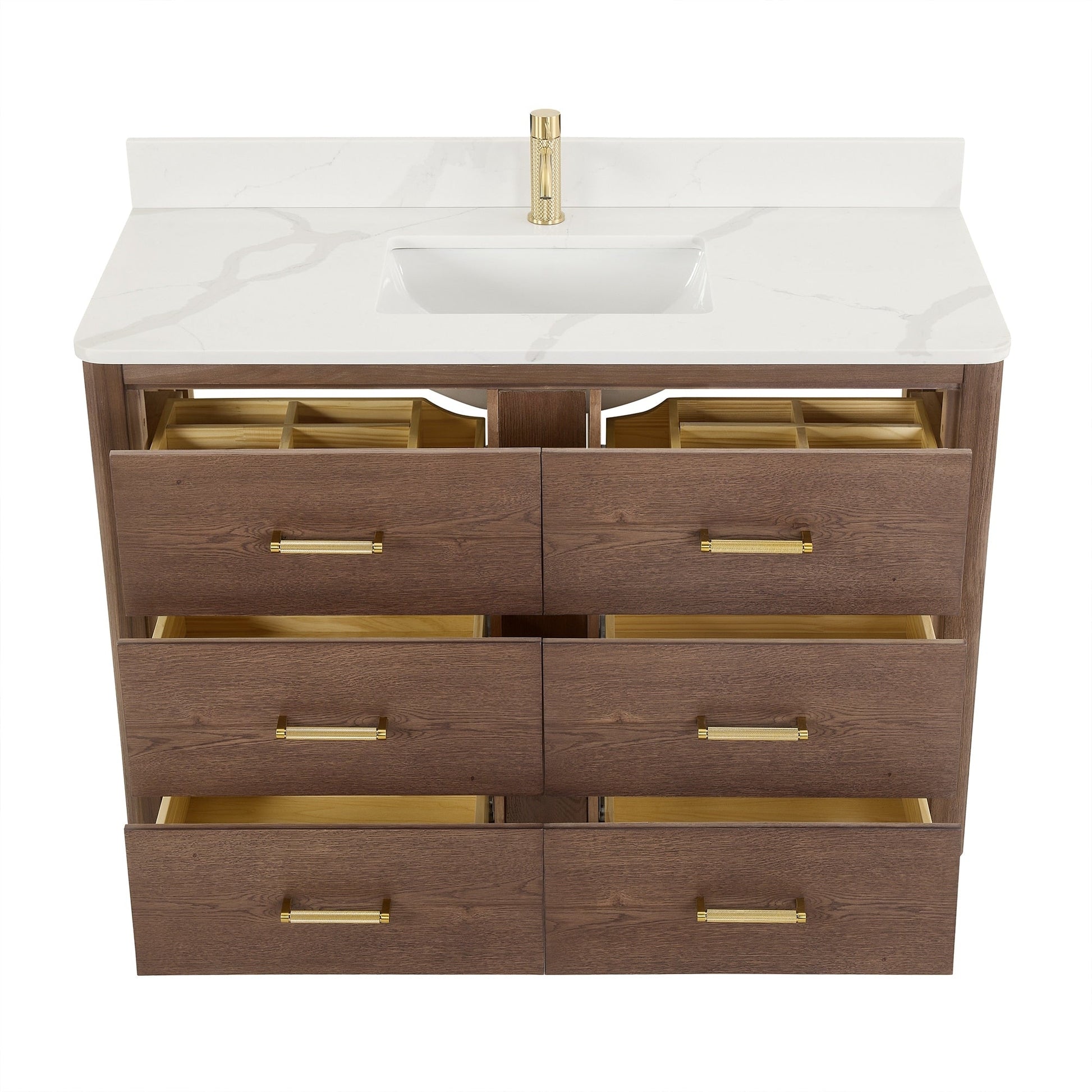 Transform your bathroom into a haven of style and sophistication with our Porto Series Freestanding Bathroom Vanity—a piece that embodies fine craftsmanship and everyday practicality. This exquisite vanity combines the textured warmth and elegance of solid oak with pristine white quartz, resulting in a look that's both inviting and visually captivating. Deep dovetail drawers with partitions allow you to keep your essentials concealed and organized.