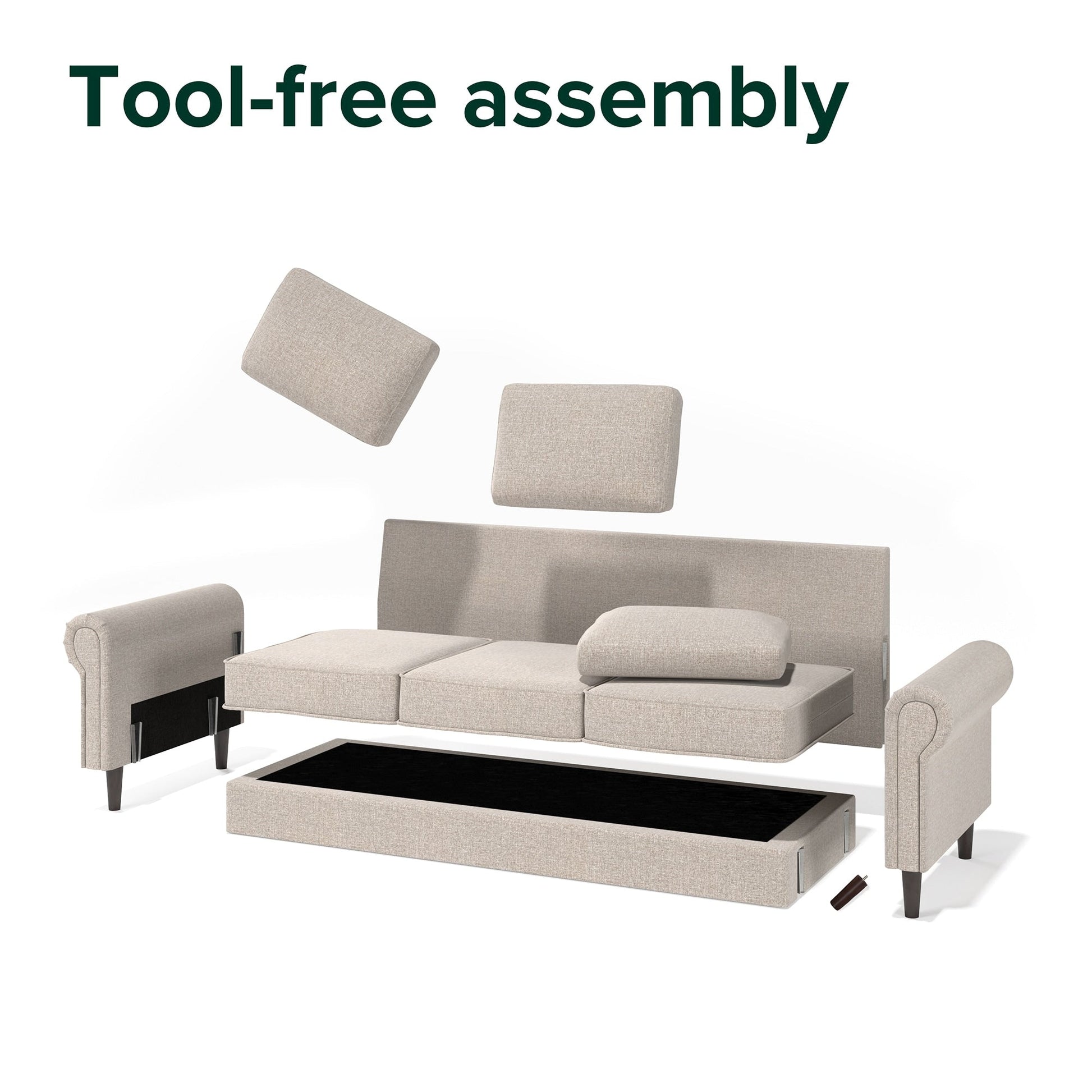 Designed to make your home feel all the more welcoming, the Madison Sofa will become a staple in any space needing a dose of comfort and chic, polished style. This rolled arm couch features a soft silhouette, decorative stitching, tapered legs, and oatmeal beige upholstery made to pair beautifully with your existing interior. At 80' wide, you can easily seat 3 people on its supportive foam cushions with added soft padding made for hours of comfortable lounging. And the best part? We expertly pack this sofa into one shipping box that arrives at your doorstep. In just a few simple steps, you'll be able to put it together in minutes without tools. With the Madison Sofa, you get extra comfy seating for the family in a sophisticated silhouette that'll never go out of style.