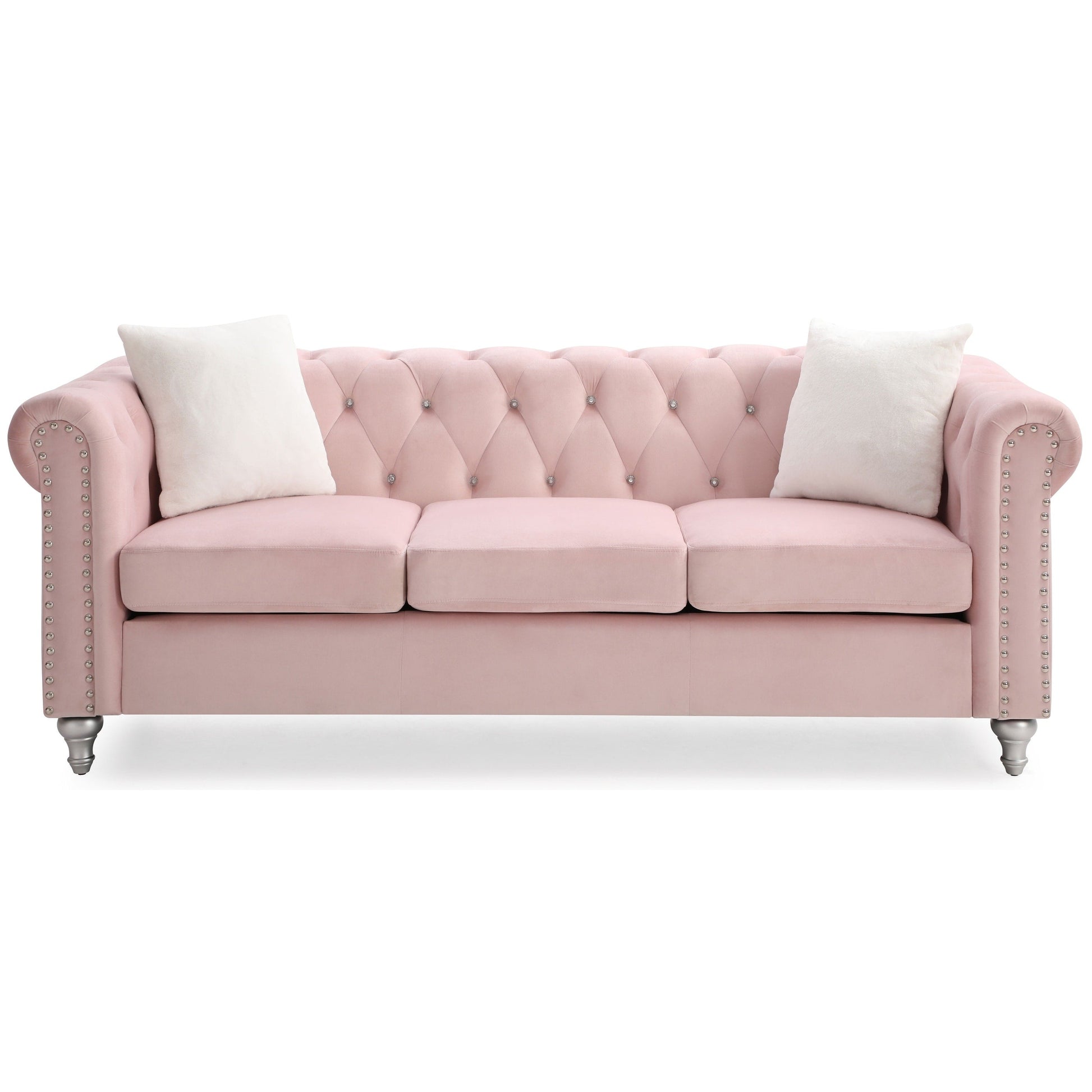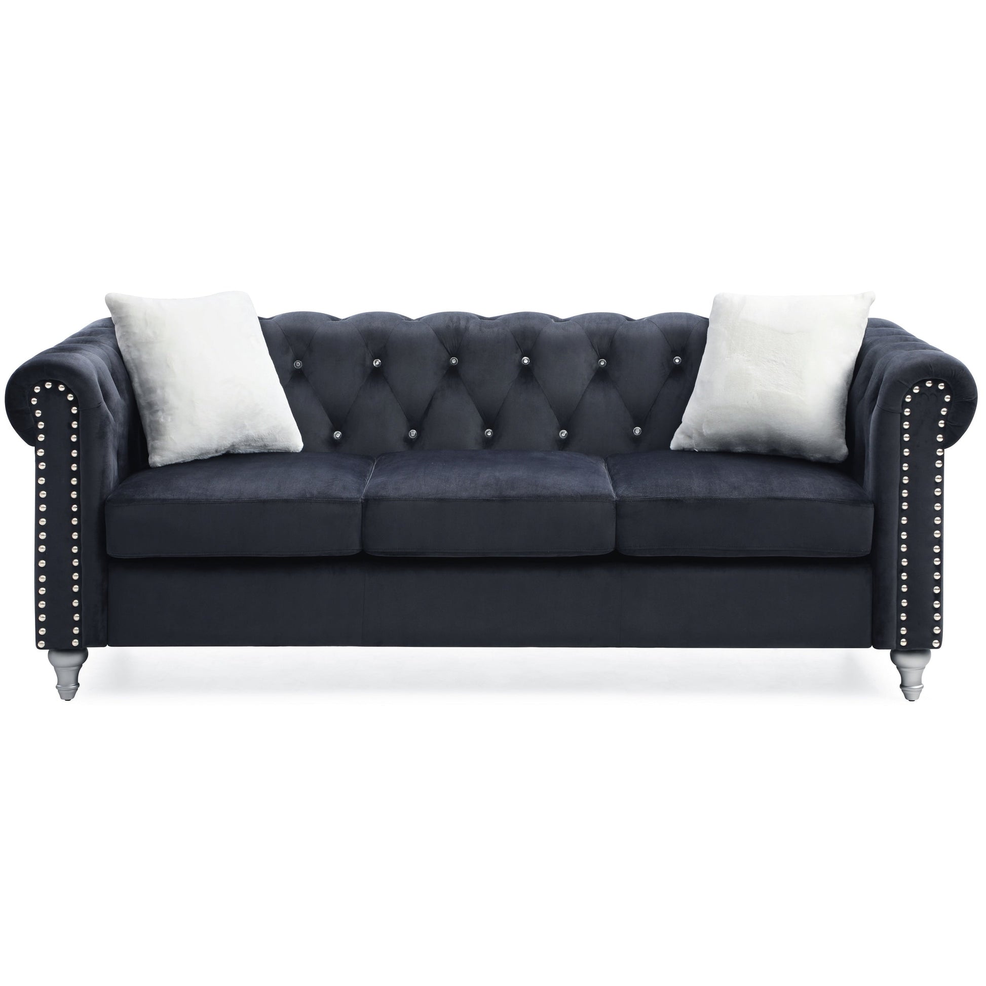 The Raisa Microsuede Velvet Tufted Sofa by Glory Furniture is sure to bring the perfect touch of style of your living room. The sofa boasts jewel accent nailheads in a modern and contemporary style. The beautiful finish and design details make this piece the perfect addition to your home. The high-quality craftsmanship of this sofa is sure to be enjoyed for seasons to come. Create your perfect space with this sofa.
