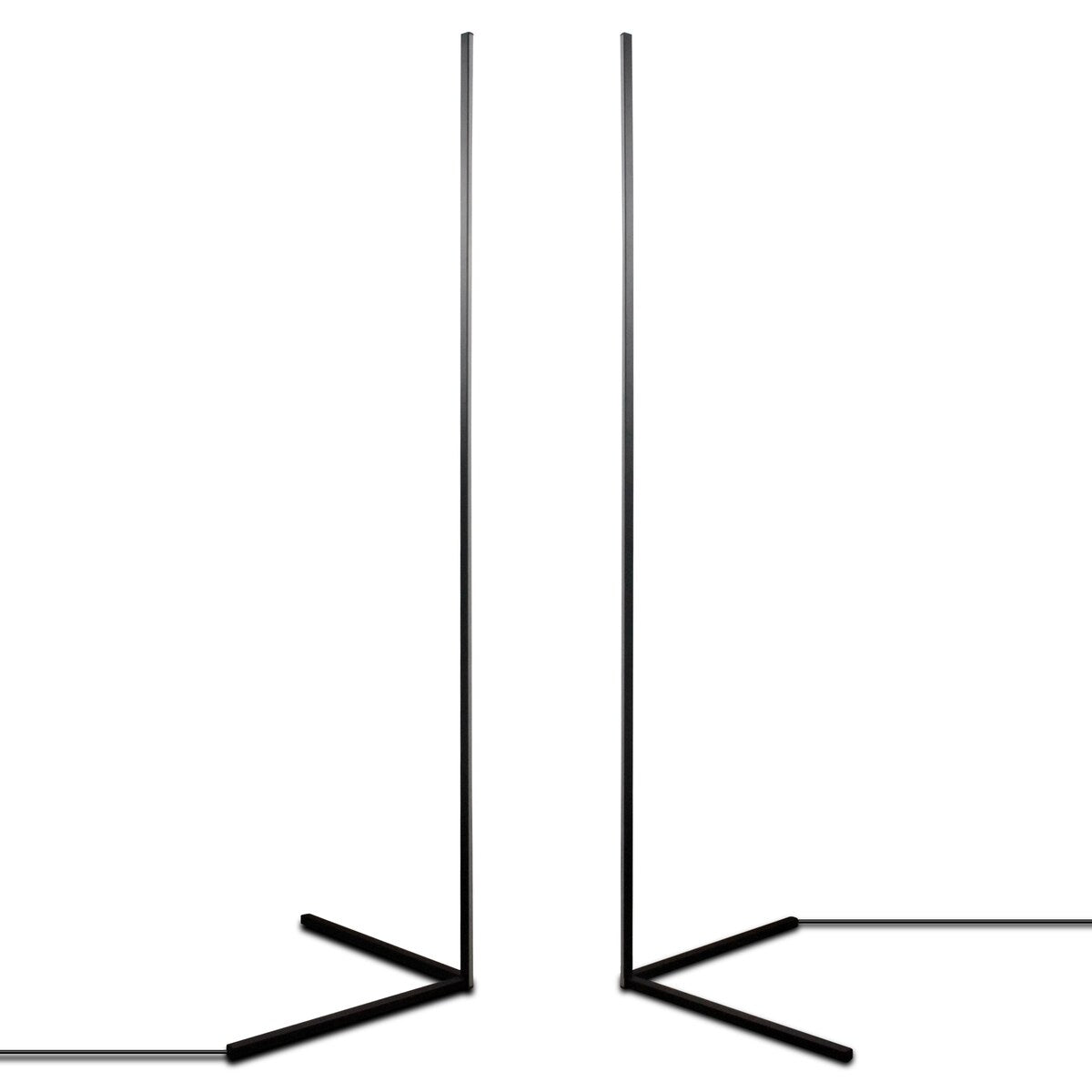 When a room calls for understated modernism, this floor lamps answers with just the right balance of minimalism and statement-making design. The RGBCW LED light strip offers a combination of reading white light and RGB dynamic disco light effects, catering to a wide range of versatile lighting requirements. Built-in LEDs cast a dimmable glow from the slimline bars. The metal bases ensure stability and a space-conscious footprint. The slender silhouette measures 56' tall, and it comes with a foot switch on the cord for easy turning off or on.