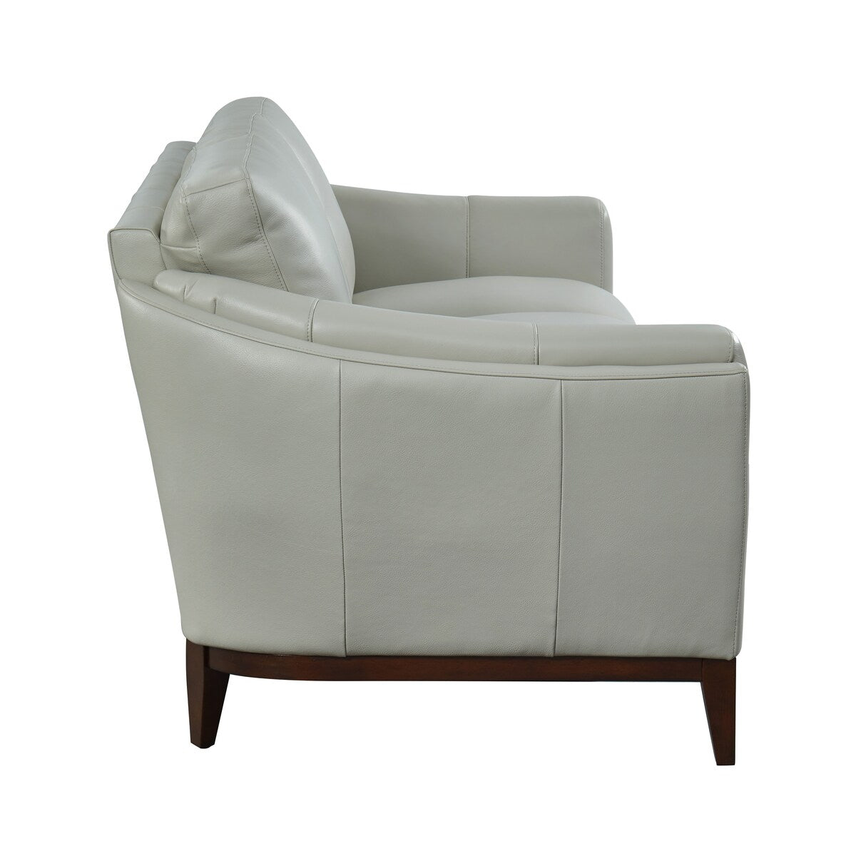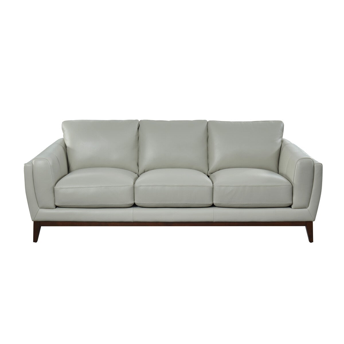 Update your living room with the luxurious Rio Top Grain Leather Sofa. Made of 100% cowhide leather, this sofa brings glamour and comfort to any space. The high-density foam cushions ensure durability and comfort, while the sturdy hardwood and hardwood laminate frame and sinuous wire spring suspension provide long-lasting support. The sofa sits on a full wooden base with a dark finish, adding to its elegance.