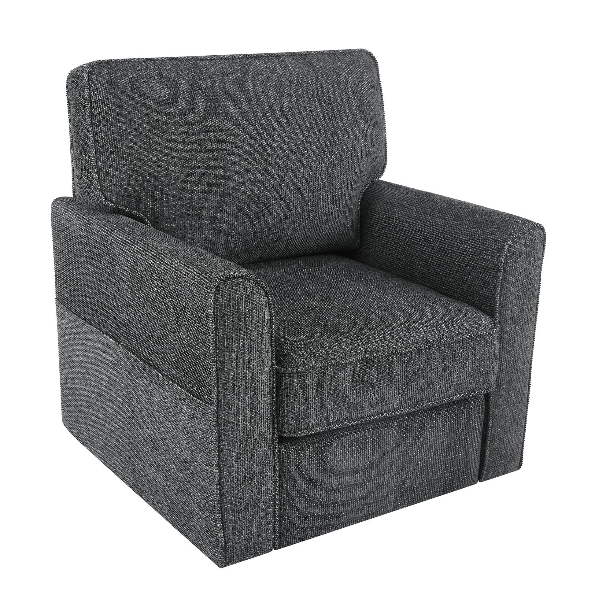 - Full 360ç°?swivel base offers seamless movement in any direction?î¯erfect for multitasking, reading, or chatting without ever needing to reposition the chair.