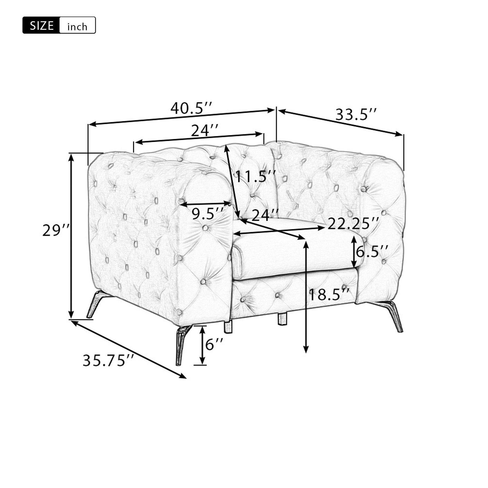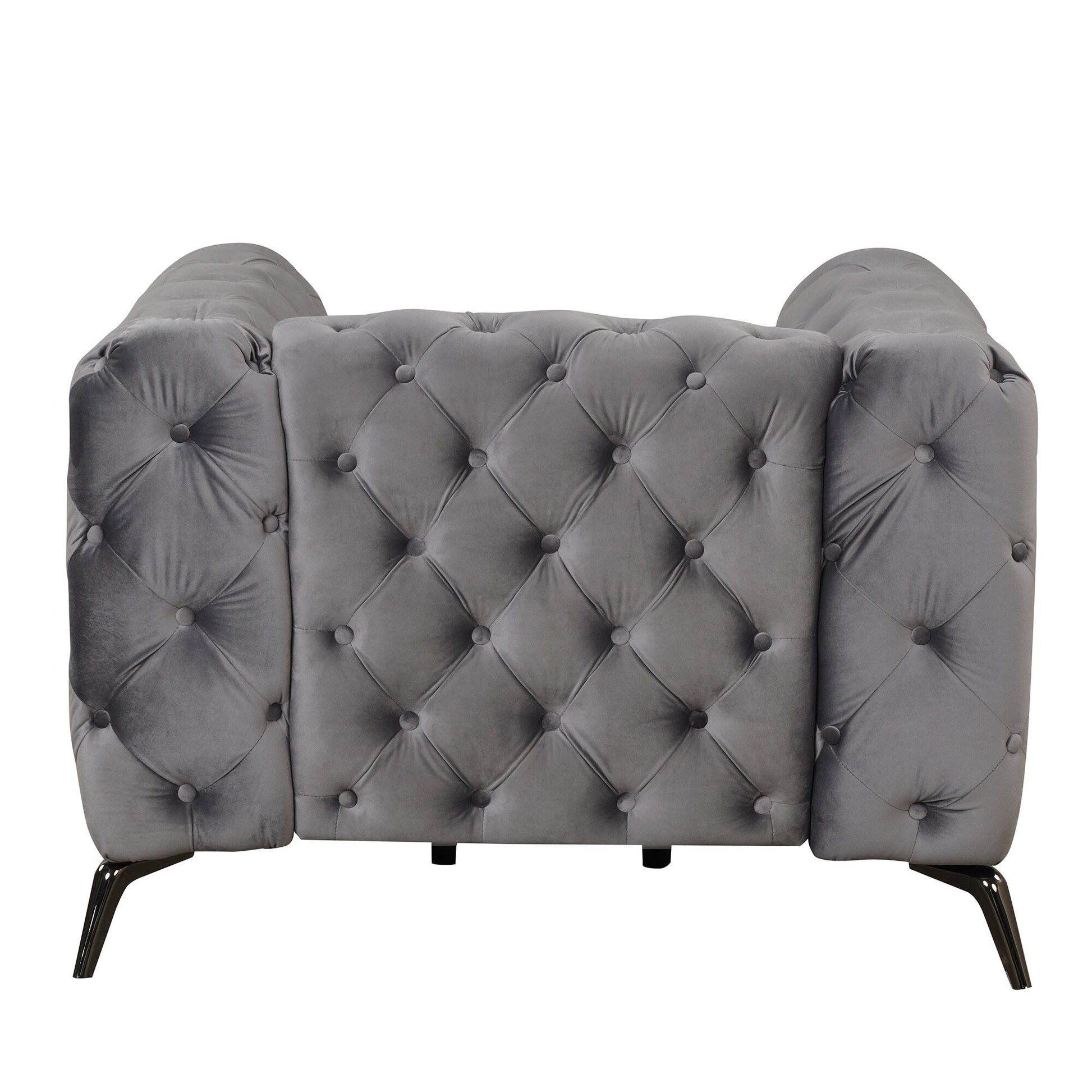 Roomfitters Velvet Upholstered Accent Sofa, Single Chair with Button Tufted Back for Living Room, Bedroom