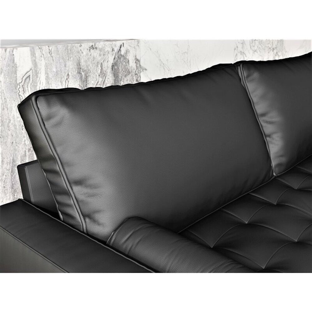 Unveil opulent comfort in style with our Tufted Faux Leather Sofa. Embracing mid-century design, it boasts striking square arms, wood legs for stability, and an irresistible tufted faux leather upholstery. Complete with two chic bolster pillows, this sofa exudes elegance while offering extra support. Whether as a centerpiece or a cozy lounging spot, it's a timeless fusion of sophistication and comfort, redefining your space with its iconic design and inviting allure.