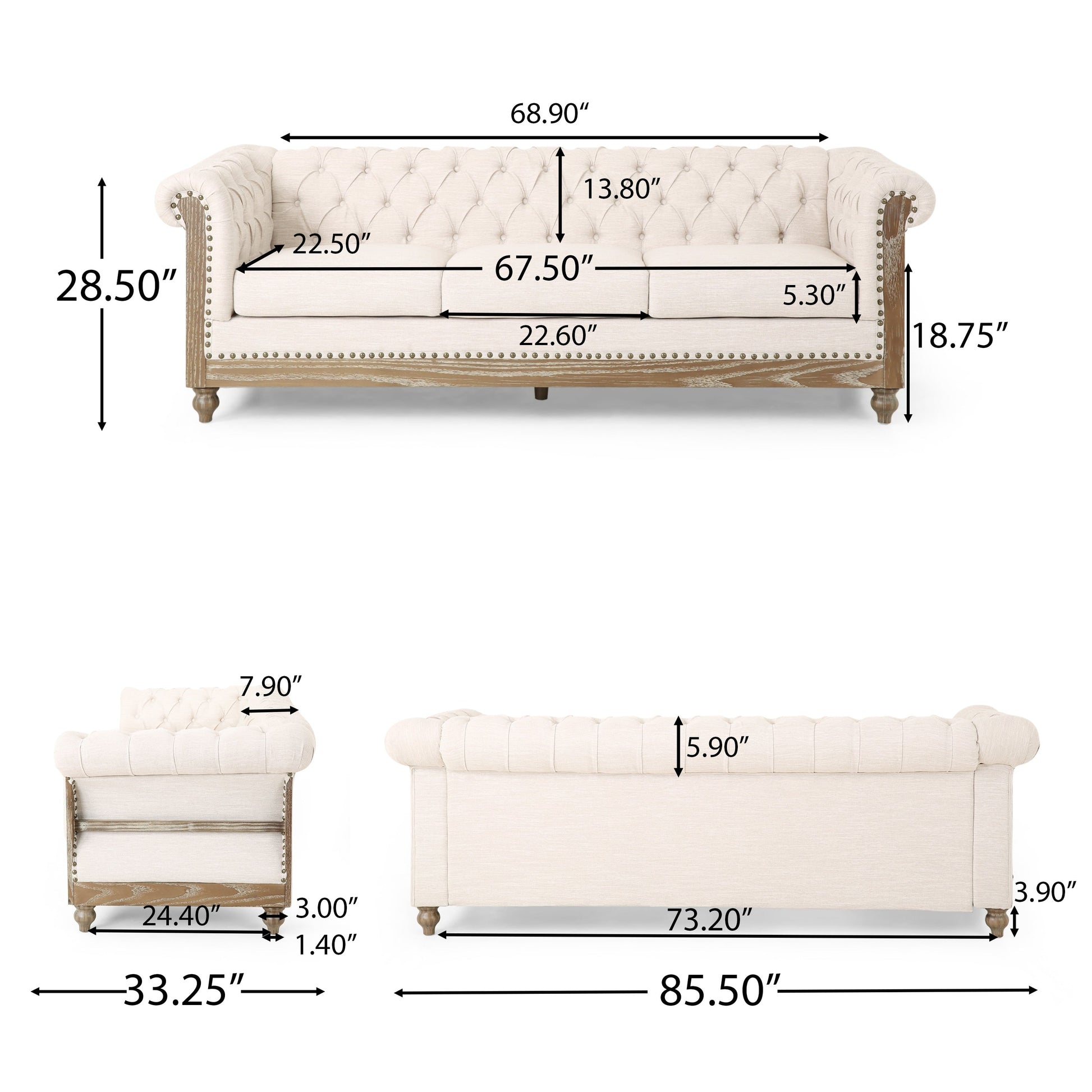 Saragus Chesterfield Sofa with Nailhead Trim by Christopher Knight Home - 85.50 L x 33.25 W x 28.50 H