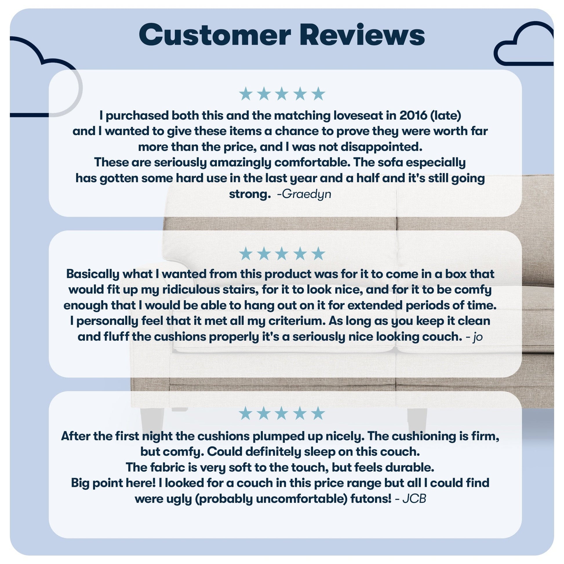 - Sit Back &Relax: The loose pillow backs are generously filled with soft fibers and supported by structured webbing within the backrest for comfort and support. The pocket coil seat cushions filled with high-density foam provide a semi-plush sit and have removable covers for effortless cleaning.