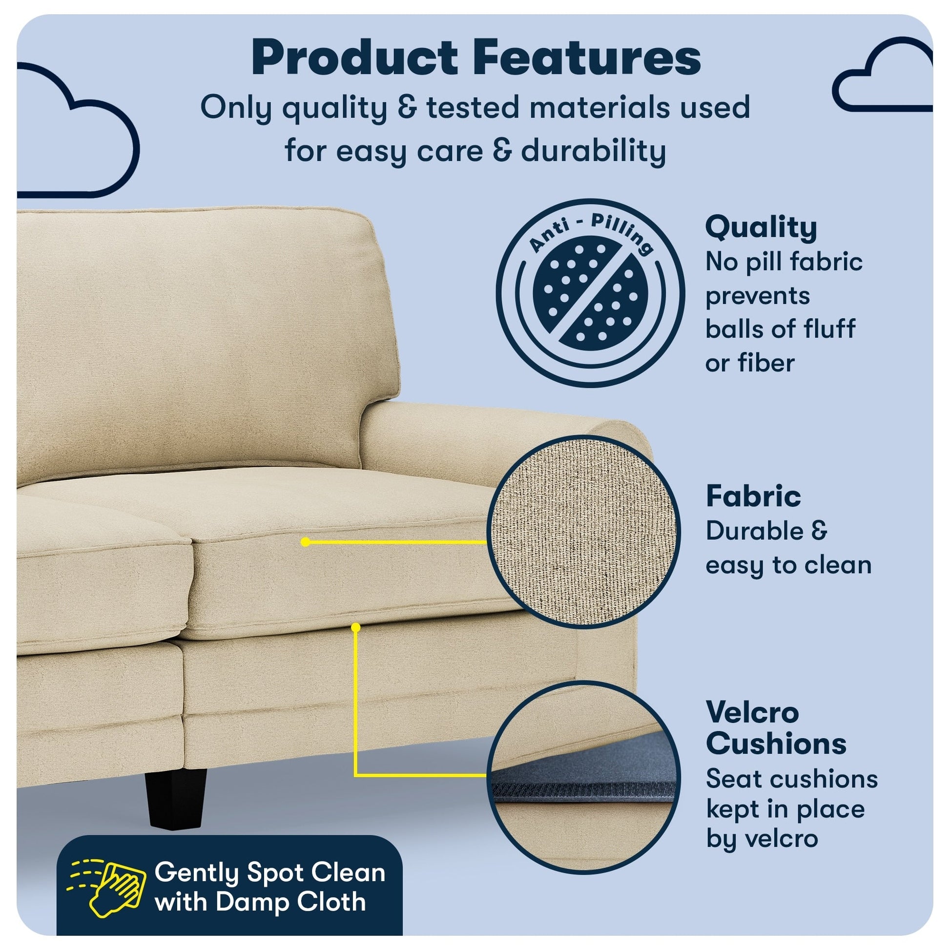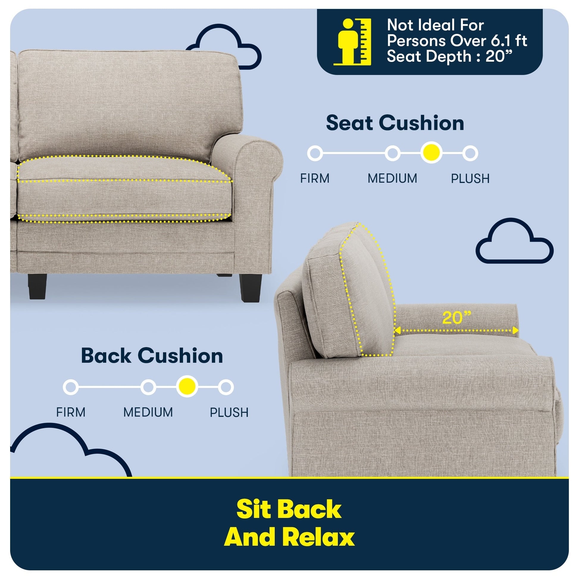 Serta Copenhagen 73 Rolled Arm Sofa, Easy Care Polyester, Soft Pillow Back, Pocket Coil Seat Cushions