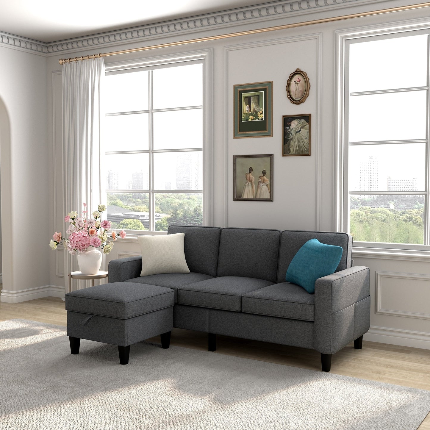 REVERSIBLE OTTOMAN: This sofa turns modular with an independent matching ottoman that can conveniently be placed on either side for a versatile chaise lounger designMULTIPURPOSE DESIGN: An attractive, multipurpose design makes it perfect for various spaces such as your living room, college dorm, home office, and moreï·QUALITY CONSTRUCTION: Crafted with super soft fabric and a sturdy wood frame, helping ensure a sofa that keeps you and guests comfortable for years to comeROOM FOR 3: Designed for compact areas such as an apartment or bonus room, with a space-saving yet heavy-duty design that allows for up to 3 people and 680 pounds