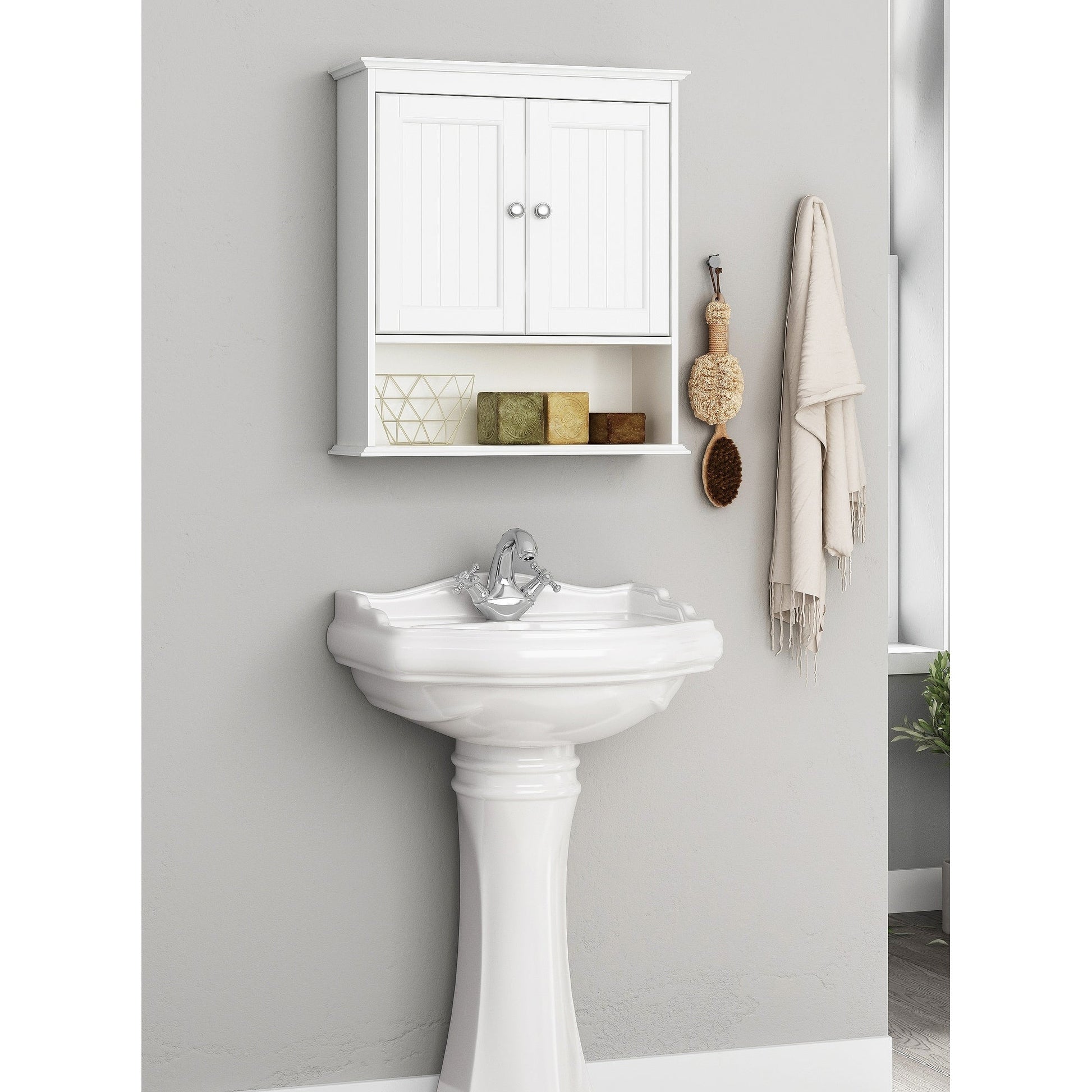 - ElEGANT WALL CABINET: The Classic White Finish and Construction Brings a Modern and Elegant Look to Any Home. Coordinates with Matching Bathroom Space Saver, Bathroom two-door floor cabinet, and Storage Tall cabinet. (Sold separately)