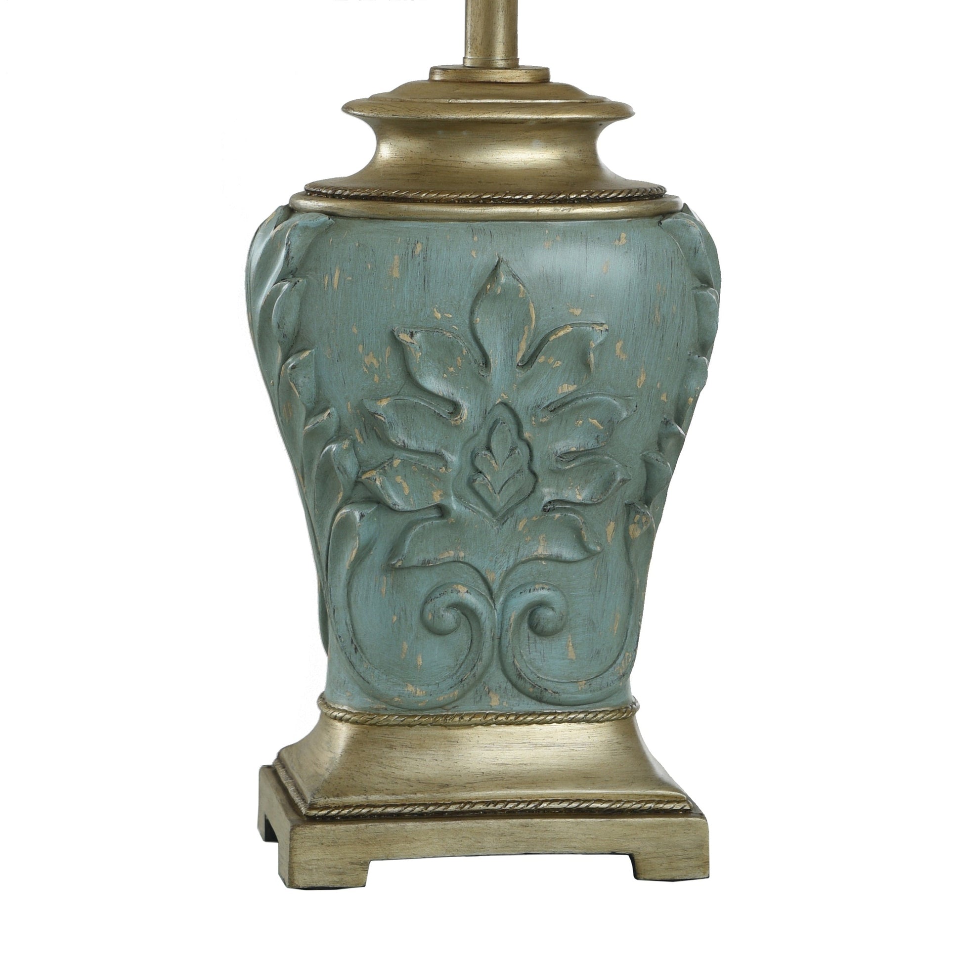 - Traditionally styled table lamp with unique embellished design on the body of the base