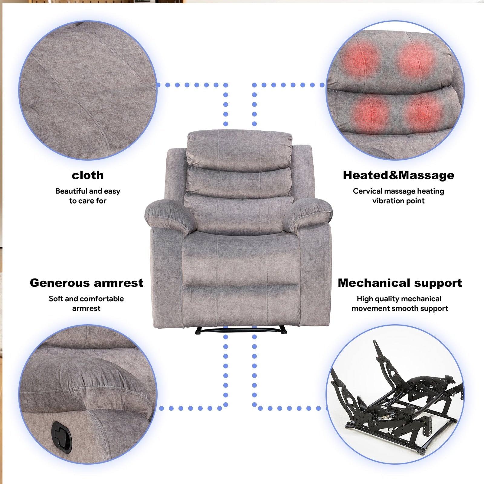 Super Soft Manual Heated and Massage Recliner Chair