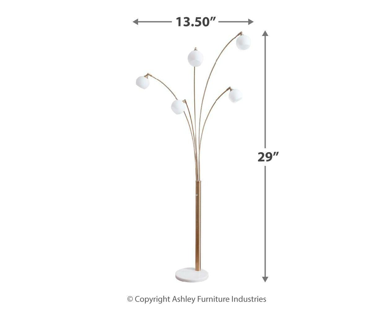 Why settle for ordinary? Feel free to bend the rules with this metal arc floor lamp. Equally sculptural and functional, this striking floor lamp wows with its champagne-colored metal and sturdy white marble construction. Five staggered-height lights with glass globe shades illuminate every which way.