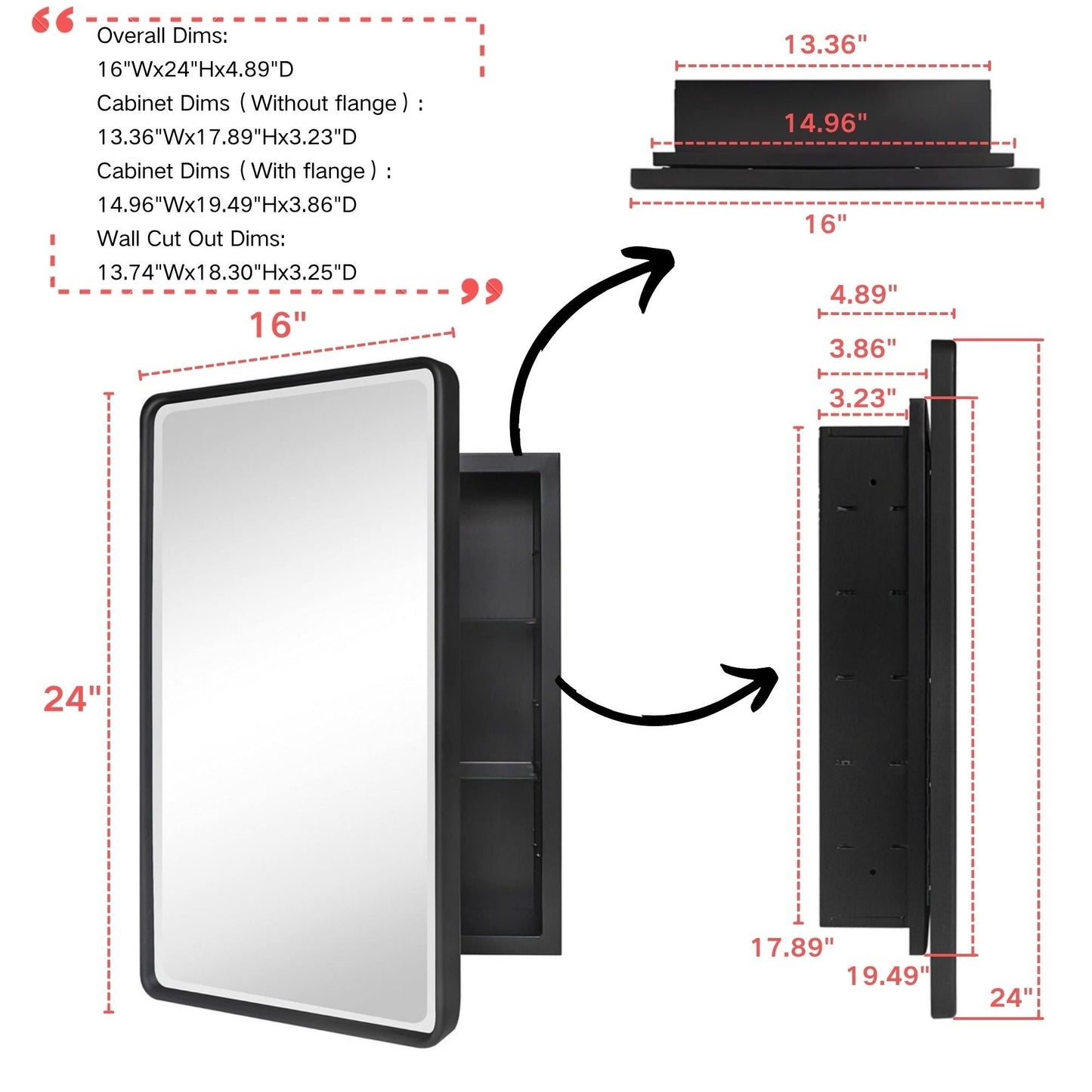 - Almost No Assembly Required: This bathroom medicine cabinet comes 95% assembled, customers only need to set the 2-4 glass shelves into the cabinet.