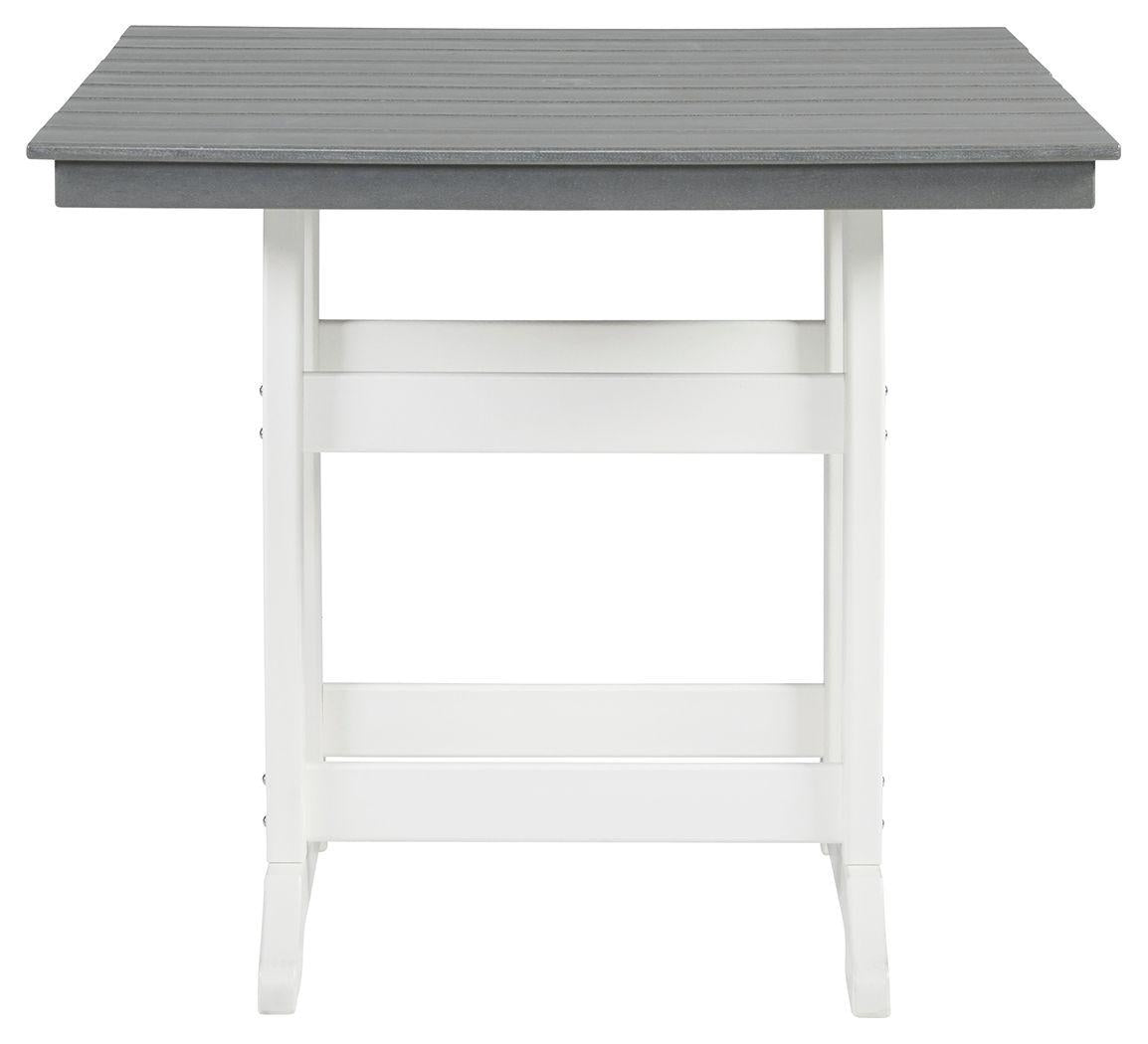 Raise the bar on outdoor living with this 42' dining table. Crafted for style, comfort and MEGA TUFF™ durability, it caters with a standout two-tone look that pairs gorgeous gray and crisp white for twice the interest. The table's counter height design elevates the aesthetic. An umbrella hole lets you throw some shade on your outdoor living space.