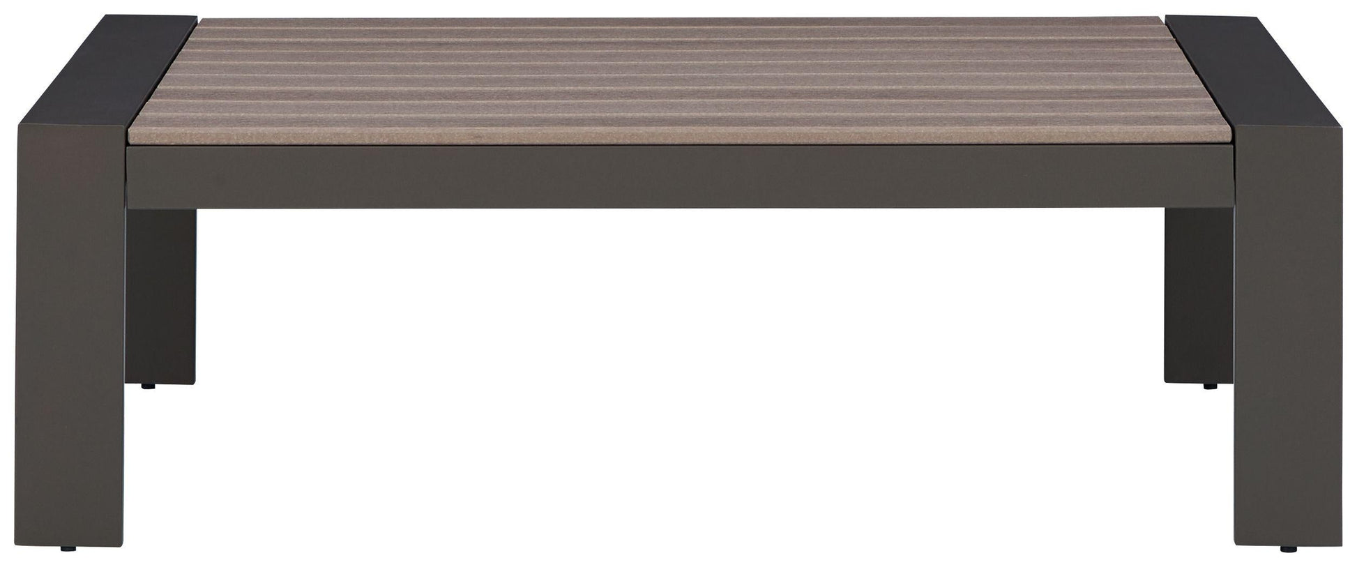 Natural neutrals are all the rage these days. Embrace the style trend with this outdoor coffee table. Crafted with a mix of aluminum and an HDPE material for exceptional durability and weather resistance, this table takes outdoor living to a whole new level.