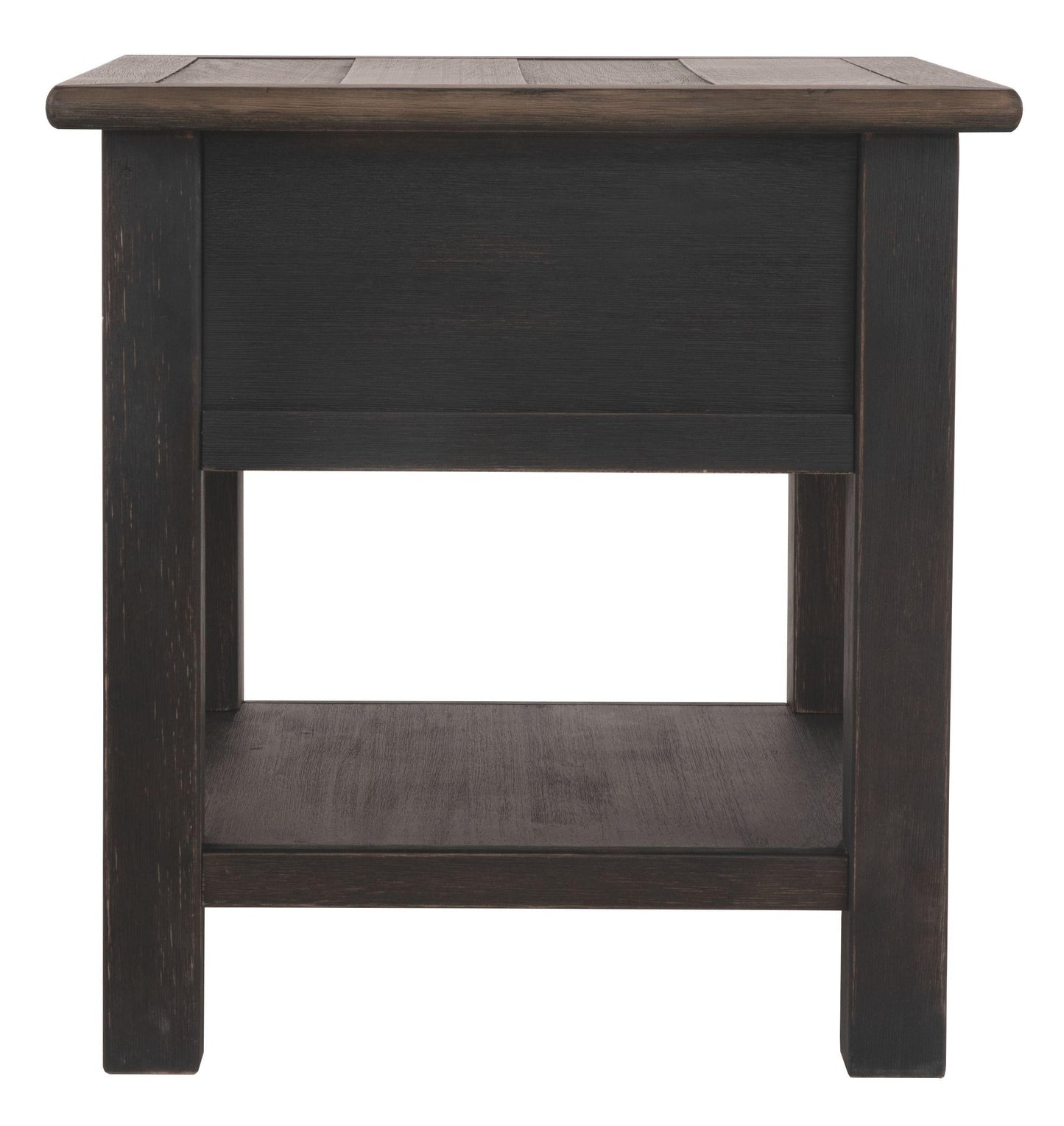 Shabby chic with a hint of down home country. This rectangular end table with textured black finish is all the talk of today’s design world. Wood grain shows through the weathered gray-brown top in all of its earthy pleasure. Framed drawer is adorned with lovely traditional hardware.