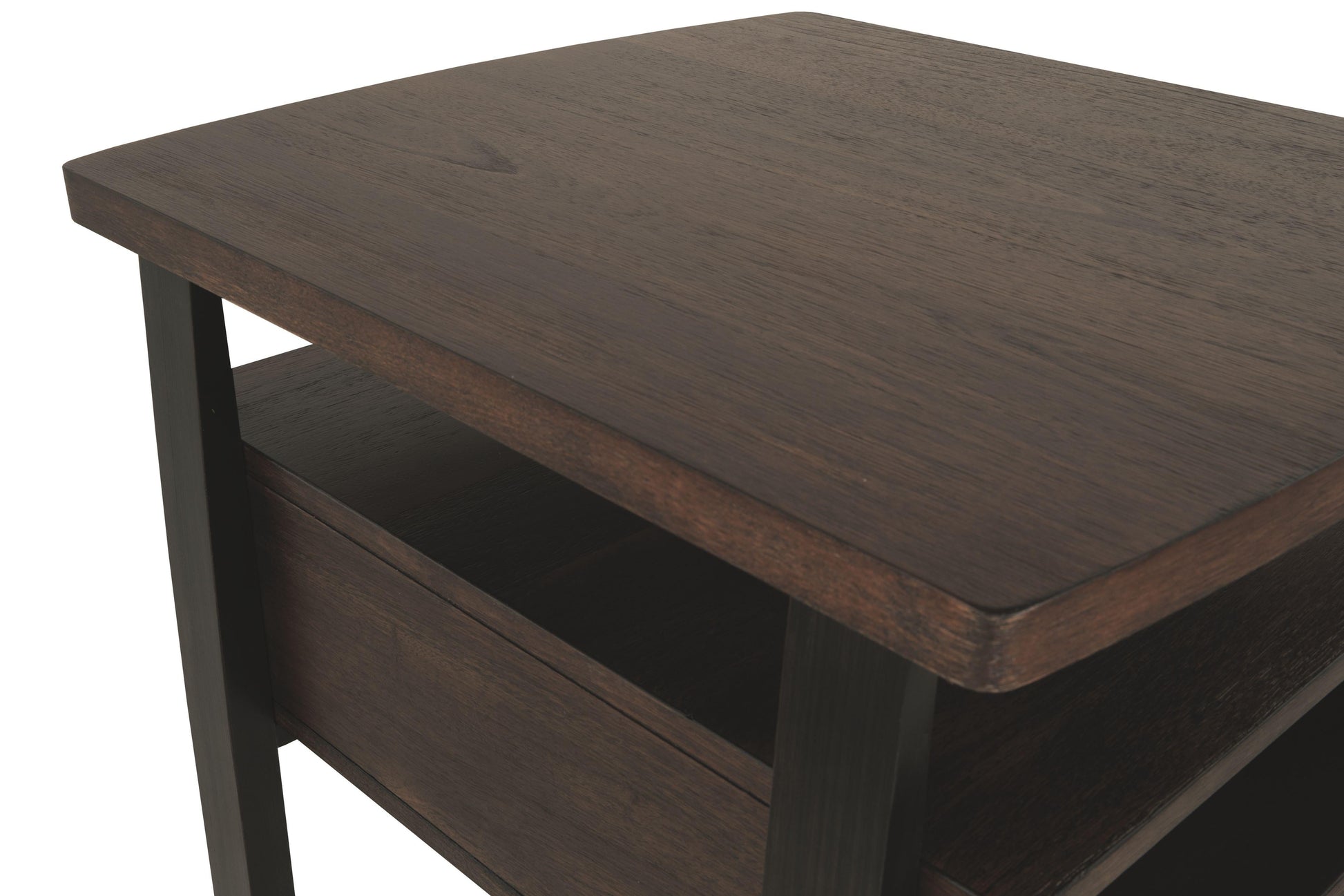 This end table opens our eyes to the beauty of contemporary style with a rustic attitude. Its clean-lined, open-concept design is dressed to impress with a two-tone finish that blends a grayish brown wire-brushed effect with a contrasting faux metal color.