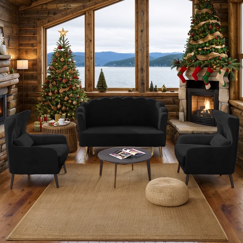 Velvet Tuft Thick Cushion Metal Legs Loveseat Two Accent Chairs