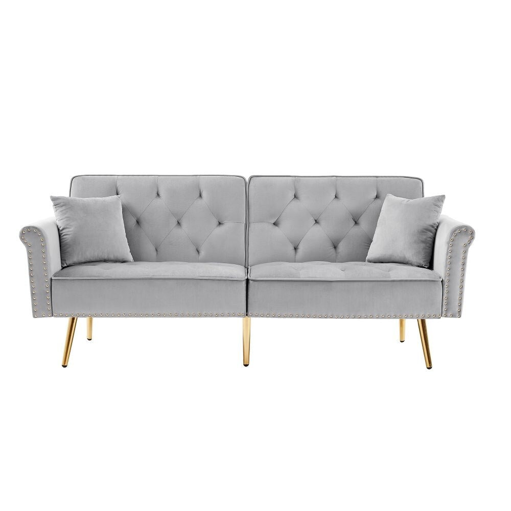 Velvet Tufted Sofa Couch with 2 Pillows and Nailhead Trim