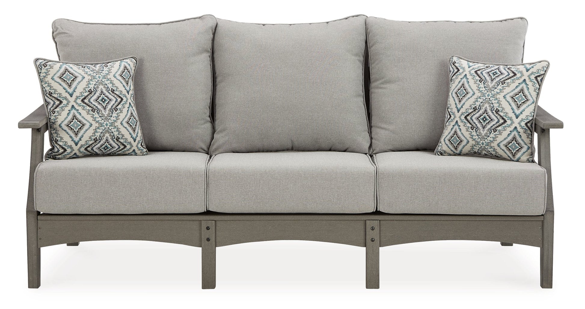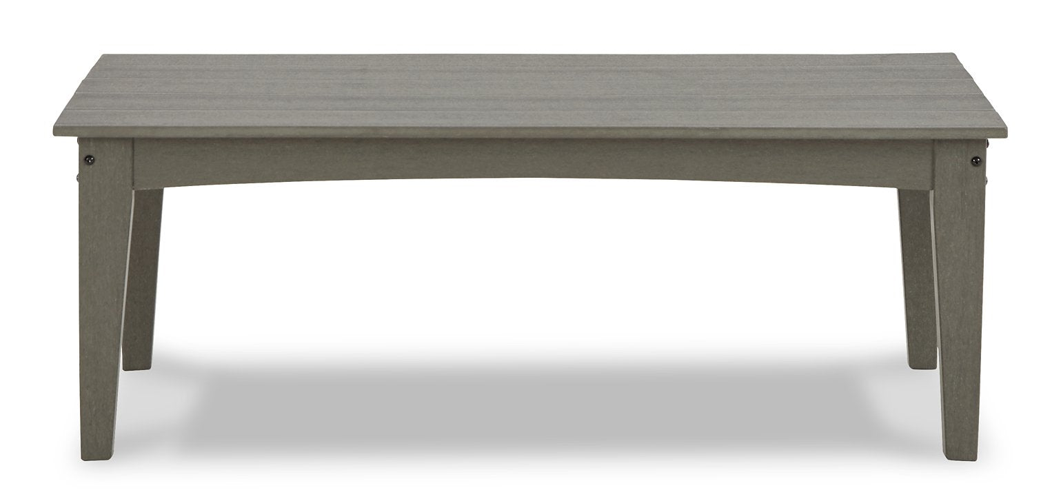 It’s the dawn of a new day for gray. Embrace the style trend with this outdoor set. Each piece is crafted of HDPE material, combining the exceptional durability and weather resistance you need with the “wood look†you love. The coffee table and comfortably cushioned seats take alfresco living to a whole new level. A slatted table top infuses a plank-style, farmhouse-inspired touch and naturally sheds rainwater. Rest assured, the thick cushions on the sofa and loveseat are wrapped in Nuvella® high-performance fabric that’s fade-resistant, stain-resistant and a breeze to keep clean.