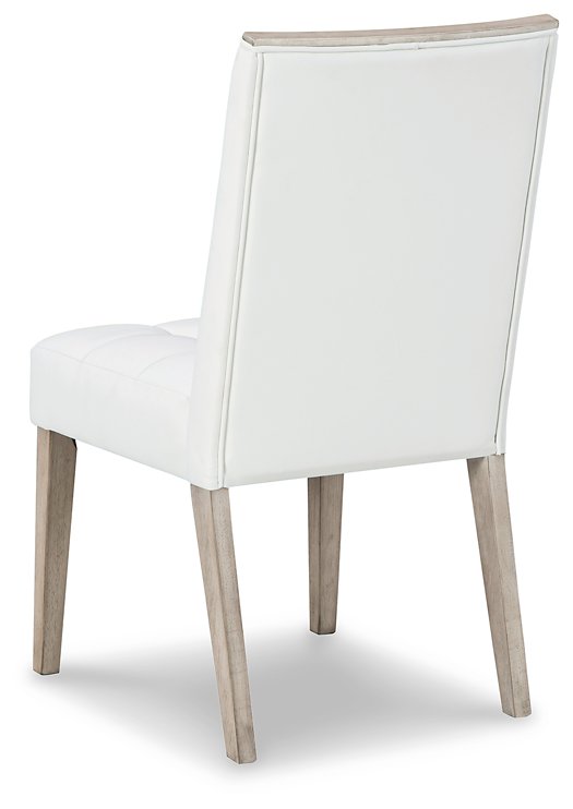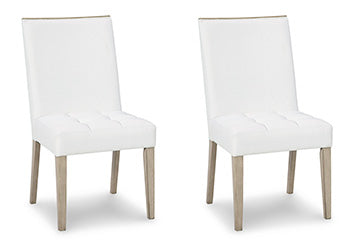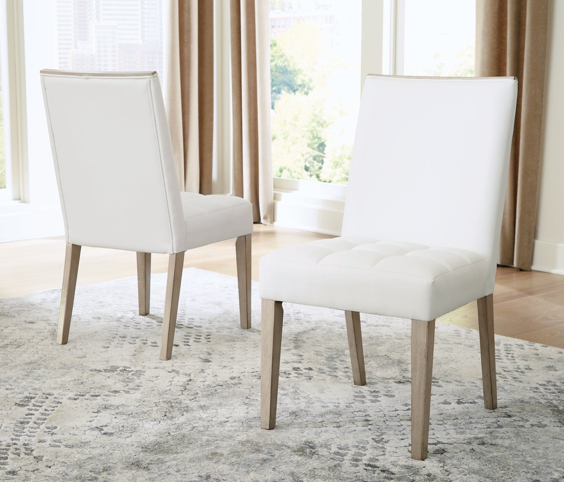 Dress your dining room in exceptional style with this dining side chair. Its light bisque wood finish and faux leather upholstery hit just the right note for a crisp, contemporary look. The chair's modern design and sleek aesthetic make for a lovely ensemble.