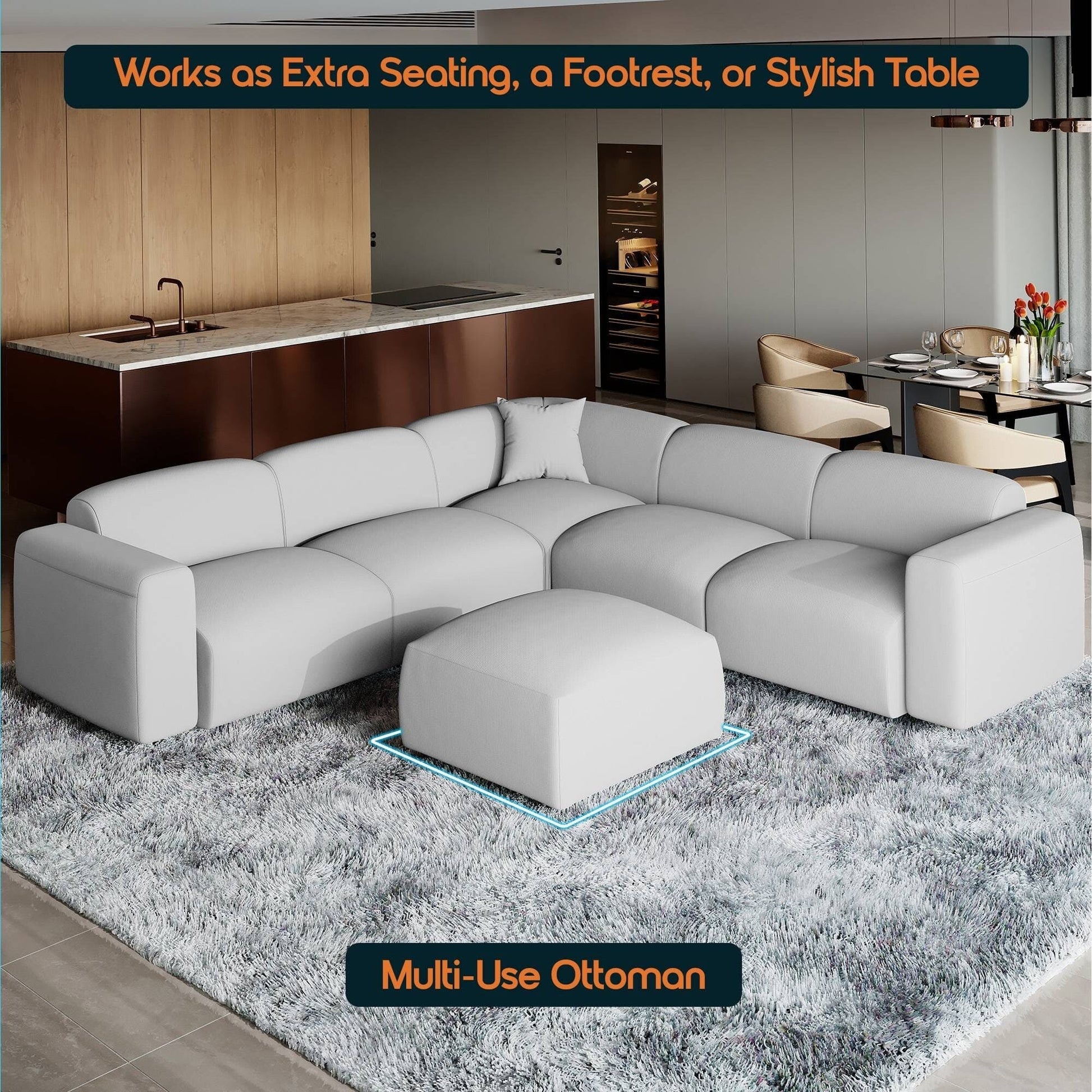- SECTIONAL SET - The sectional includes a spacious sofa, a corner seat, and a versatile ottoman, offering ample seating for living rooms, apartments, or offices.