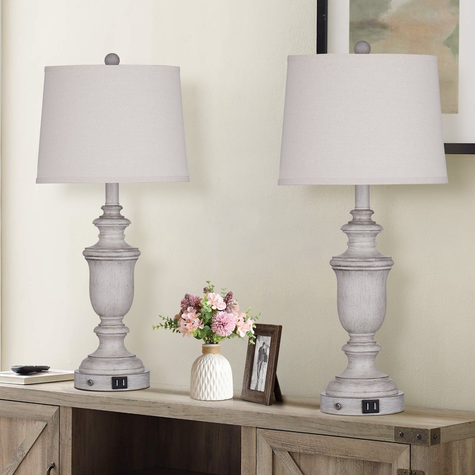 White Resin Table Lamps USB Charging Ports 3-Way Touch Switch (Set of 2) - 12.5'' x 12.5'' x 25.6'' (L x W x H)