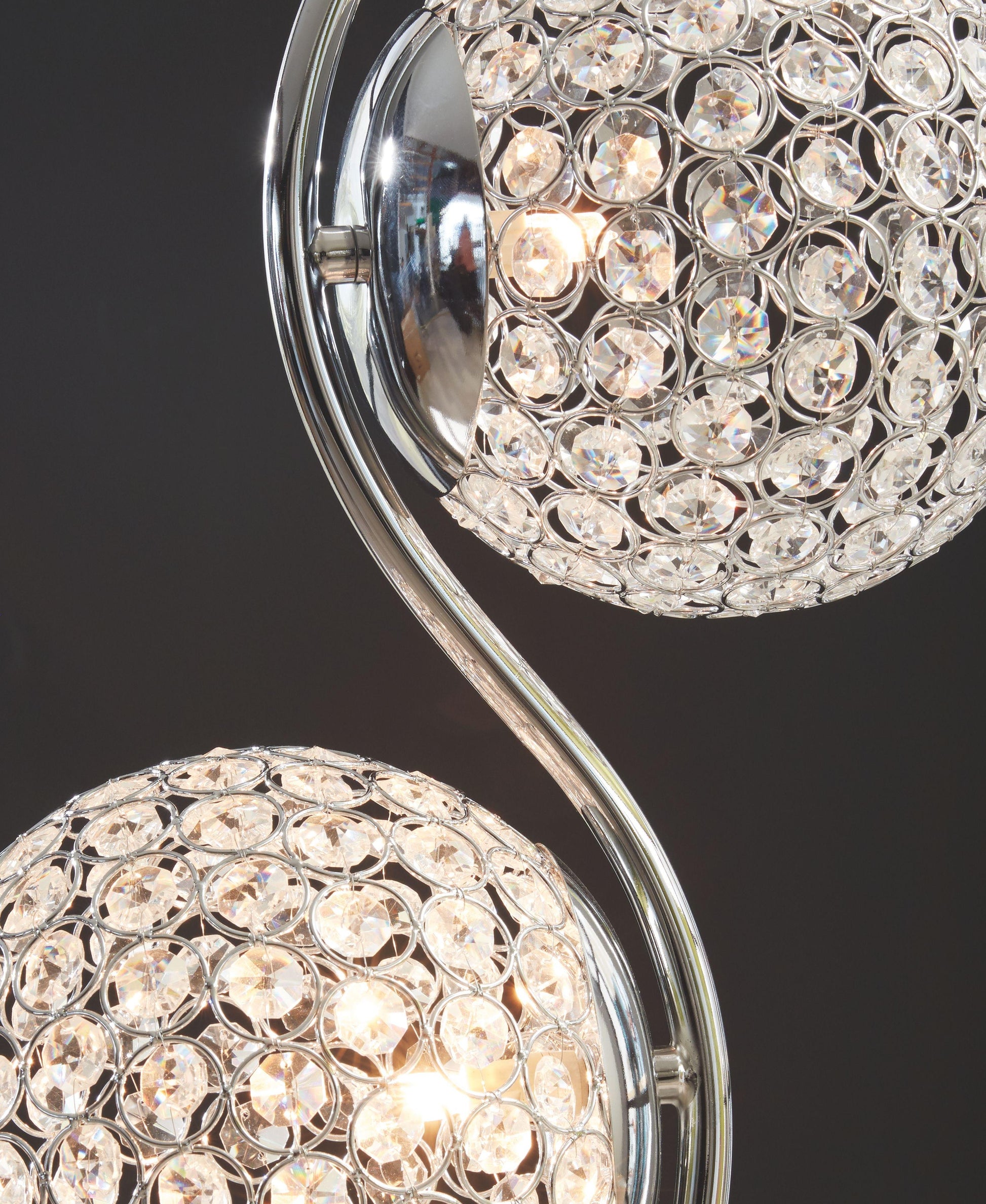 This uniquely striking floor lamp showcases the beauty of transparency. A high-gloss chrome-tone candlestick base is enriched with 2 acrylic bead and metal dome shades giving clean, classic elements a chic upgrade.